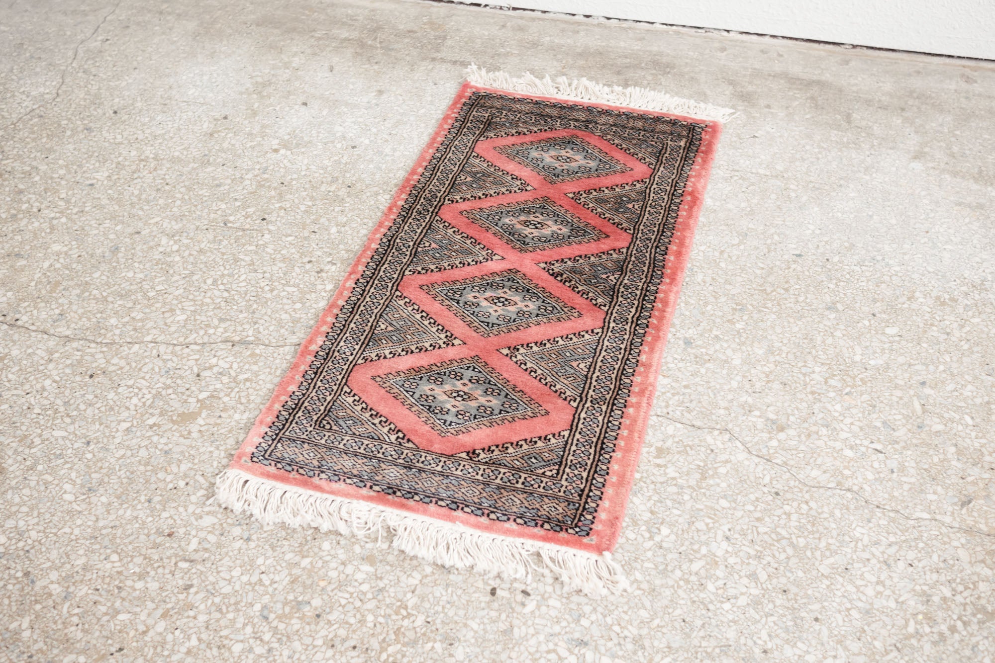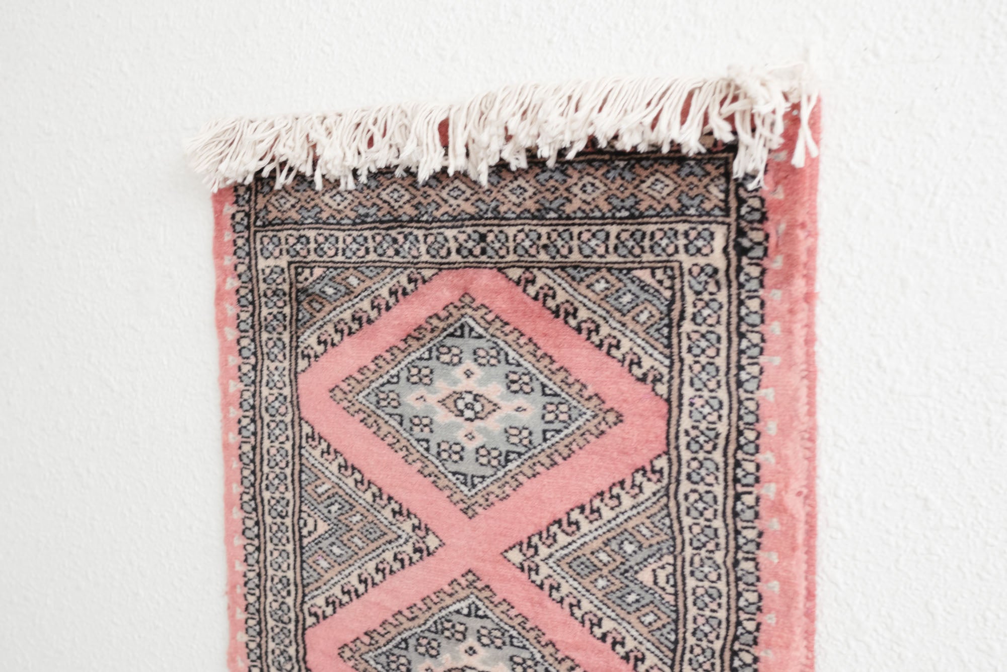 name: Hadir style: hand knotted, Pakistani, Peshawar, Bokhara, rug, carpet material: wool colors:pink, slate, gray, black age: new condition: good, age related wear - see pictures