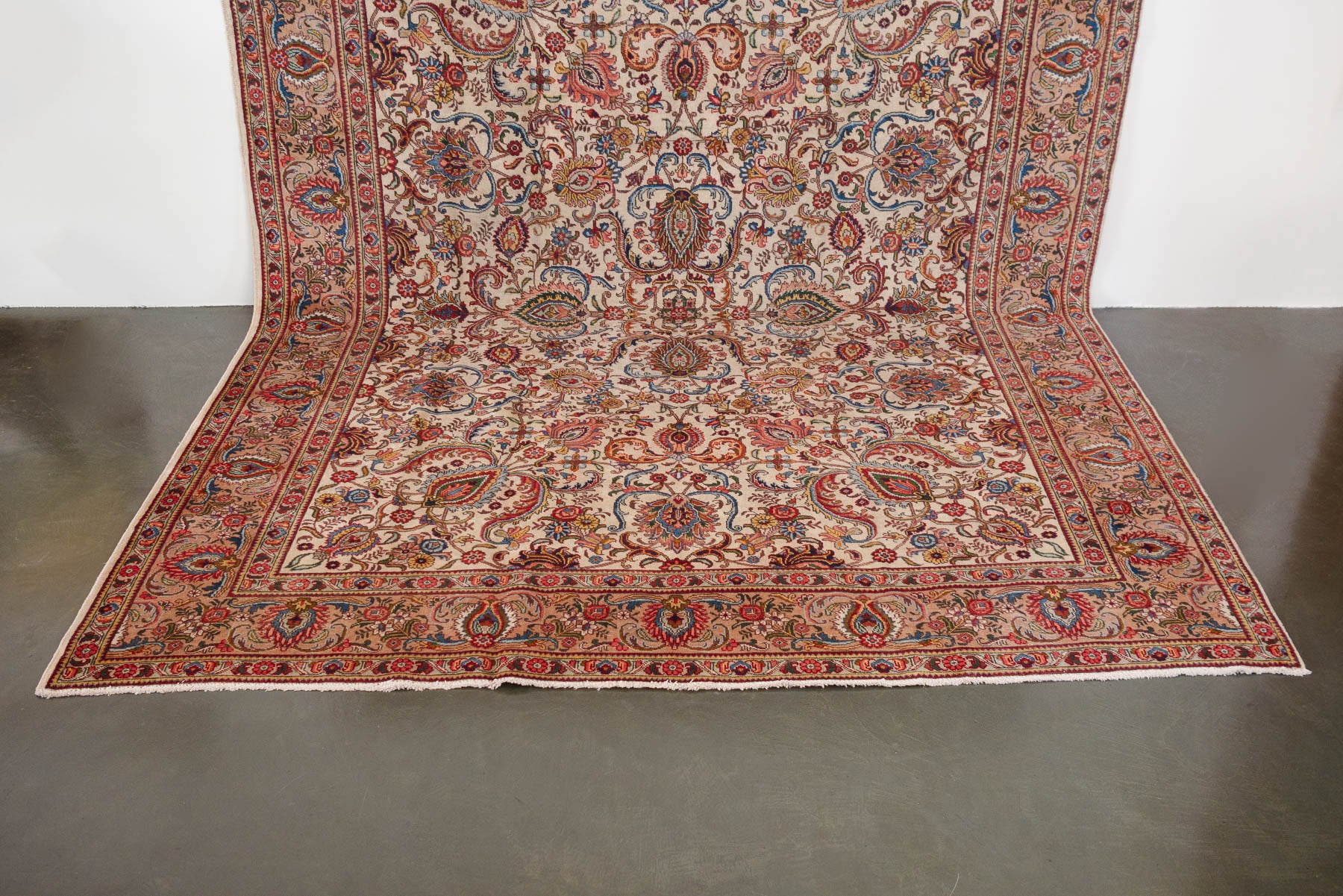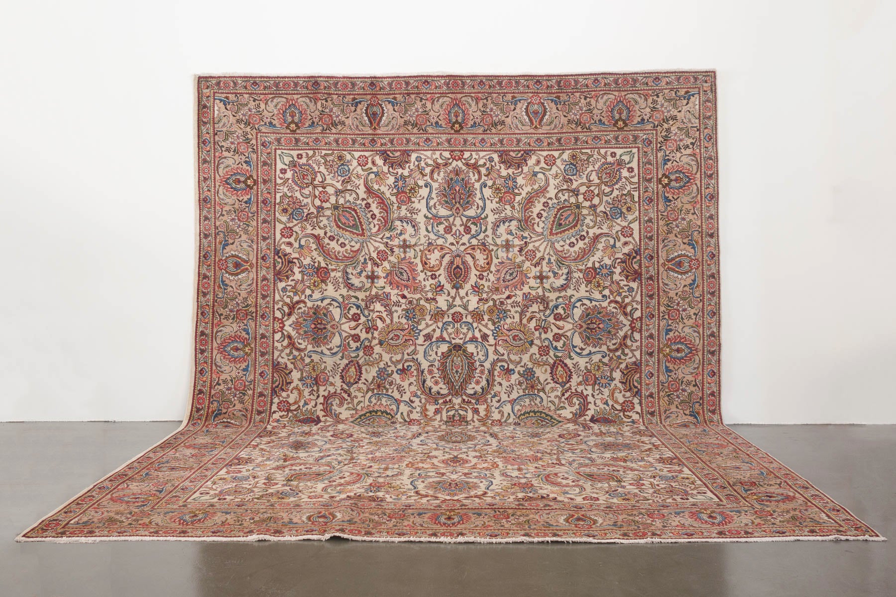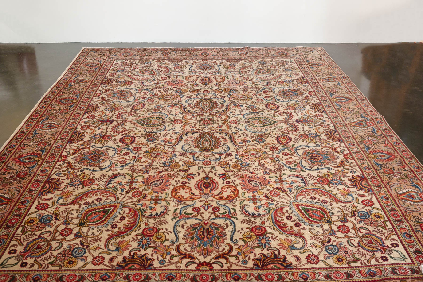 name: Sarvadorigin: Iran (Persian)style: rug, carpetmaterial: hand knotted woolcolors: cream, camel, browns, black, reds, green, yellow, blues, orangeage: vintage condition: good, age related wear - see pictures116" x 154" (closest standard rug size is 10x13)Free domestic shipping on all rugs.Contact us for an international shipping quote.