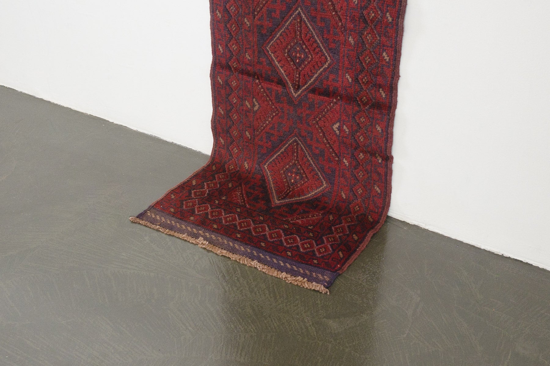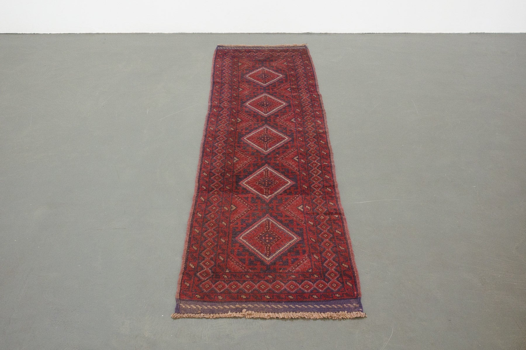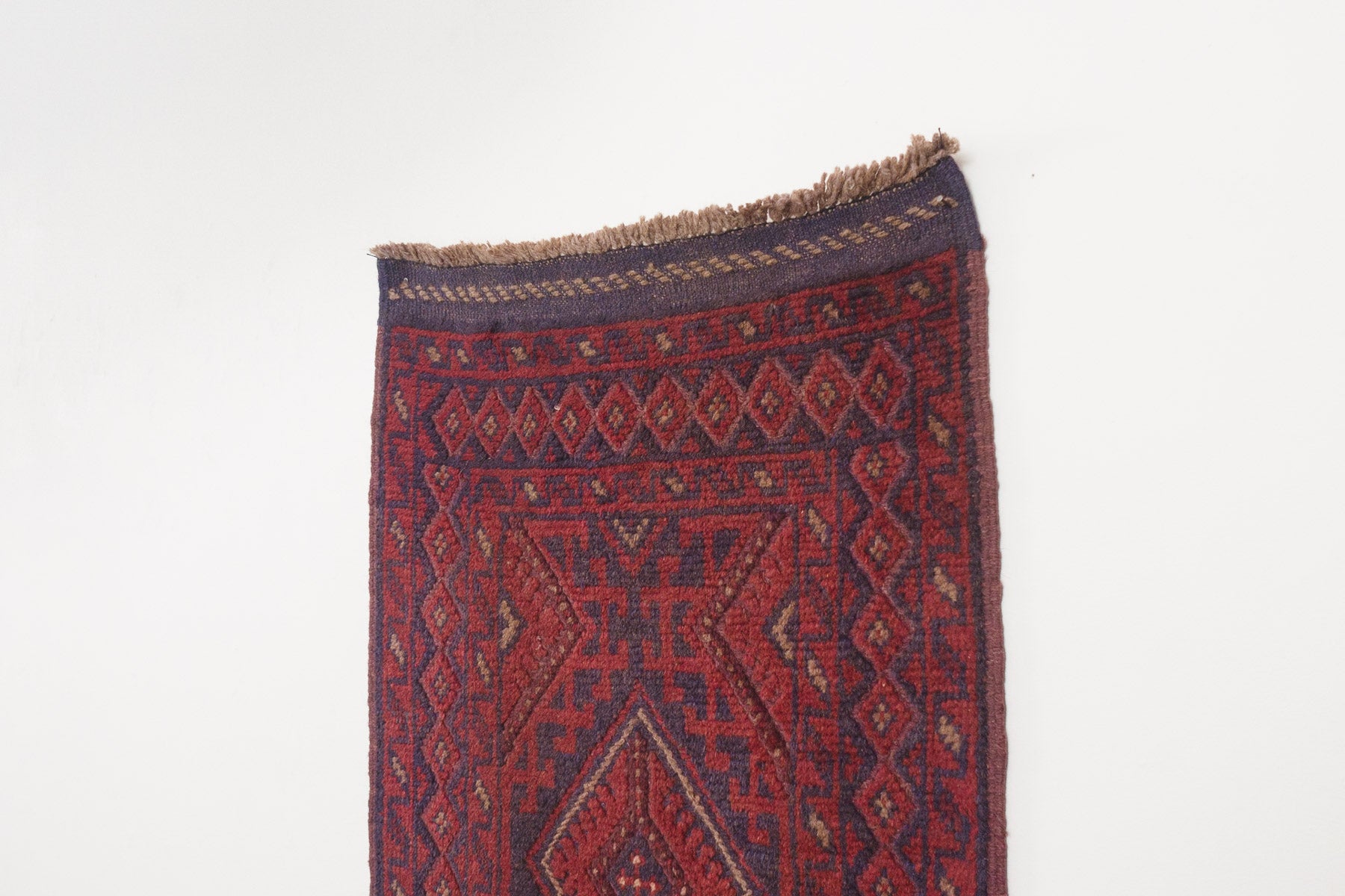 name: Zalaanorigin: Afghanistan, Tajikstyle: rug, runner, carpetmaterial: hand knotted woolcolors: red, navy, camelage: vintagecondition: good, age related wear - see picturesappraised value: $588