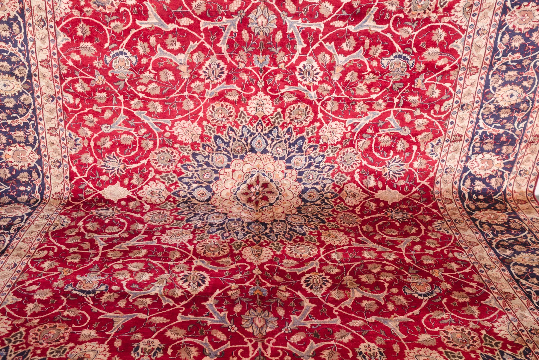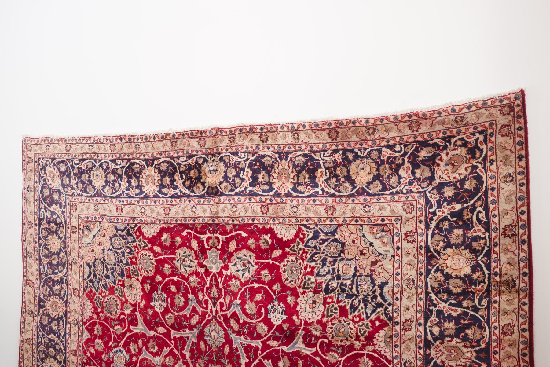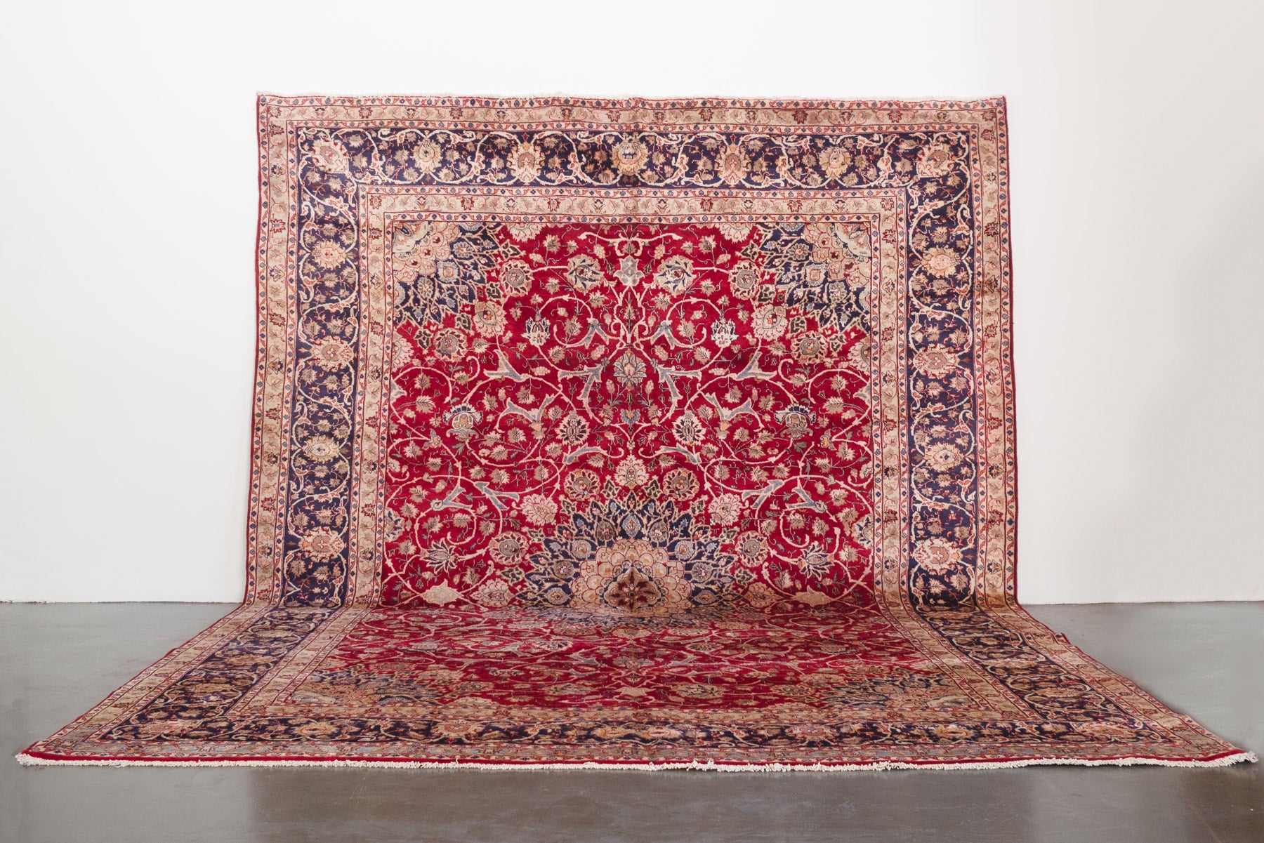 name: Dadvarorigin: Iran (Persian), Mashadstyle: rug, carpetmaterial: hand knotted woolcolors: red, blues, navy, camel, browns, creamage: vintagecondition: good, age related wear - see picturesappraised value: $4000