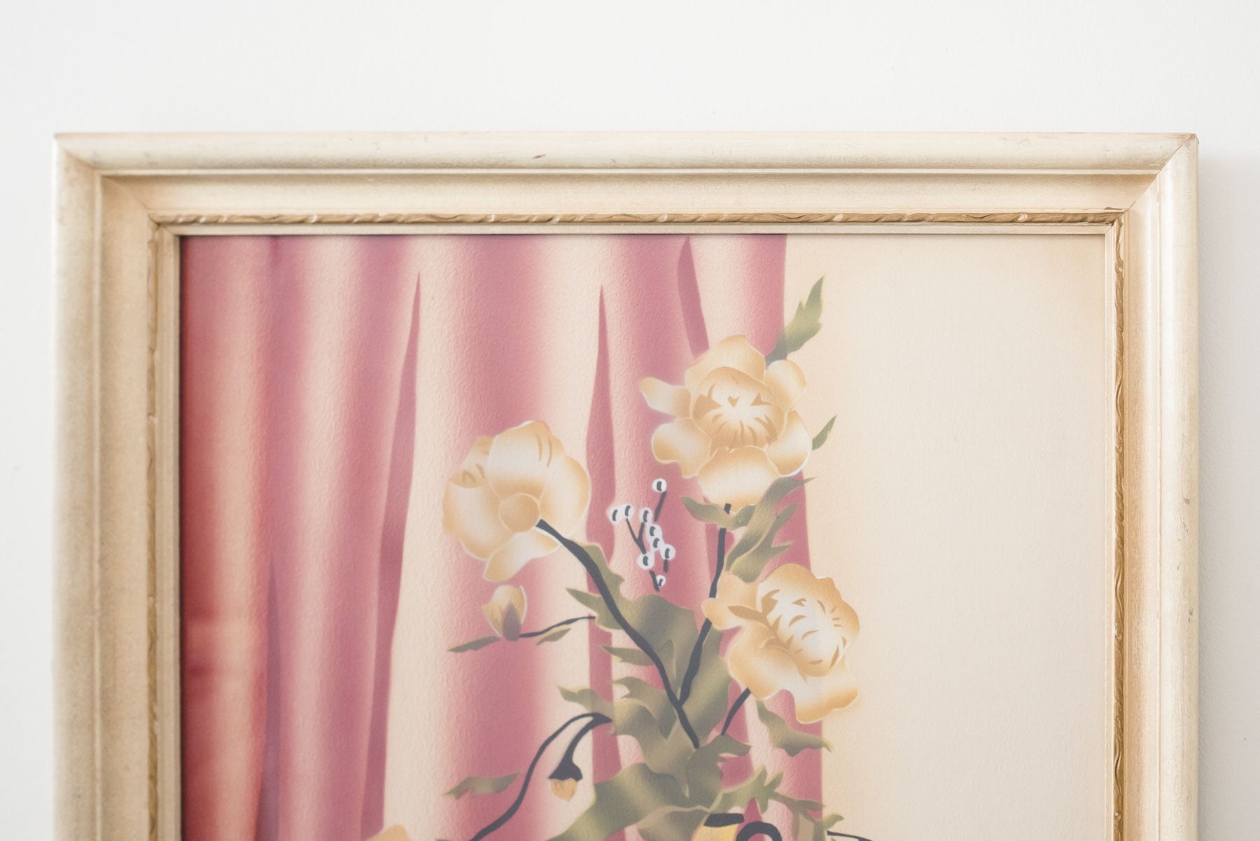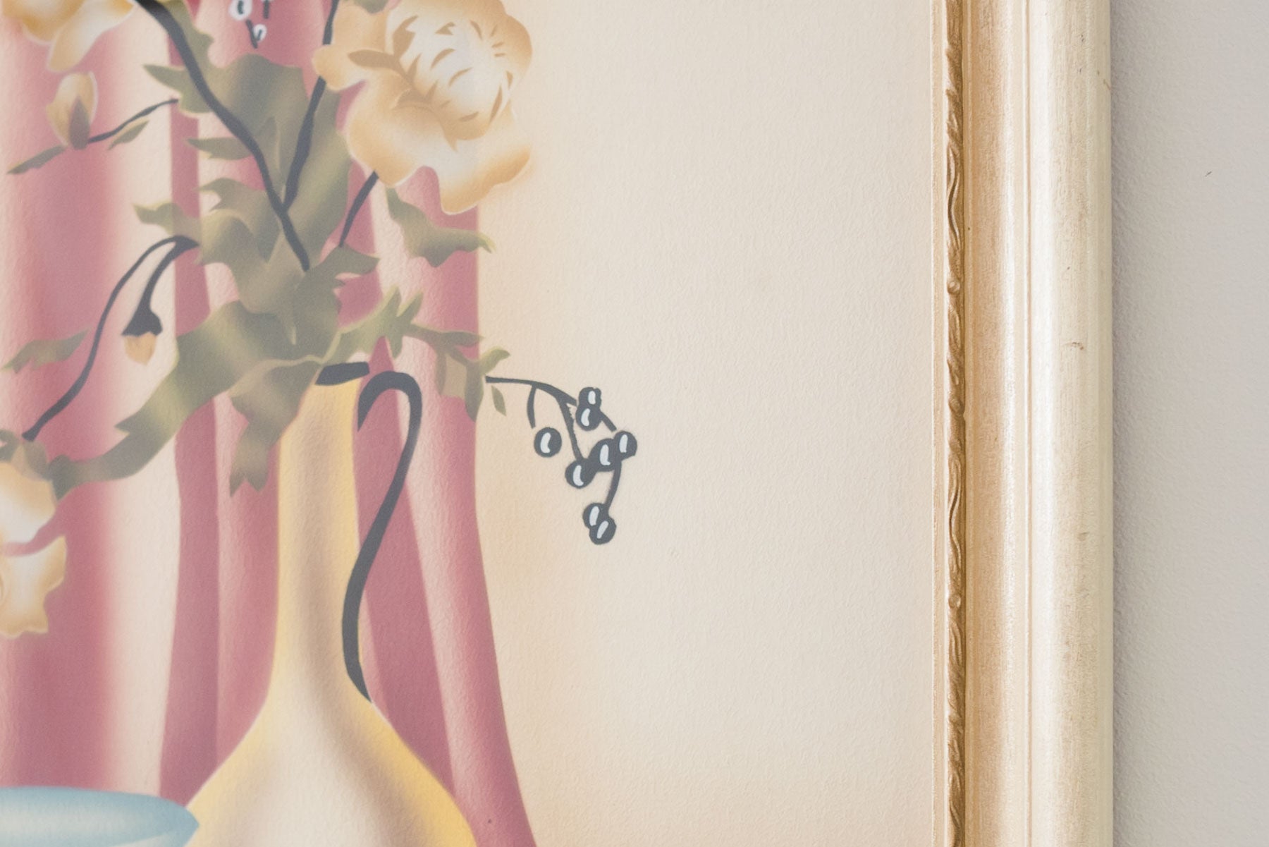 style: original, framed, still life, Parisian, art nouveau, paintingmaterial: wood, glass, paper, airbrush paint age: vintage, 1940scondition: good, age related wear - see pictures