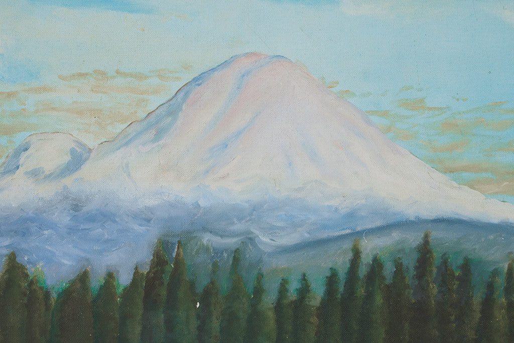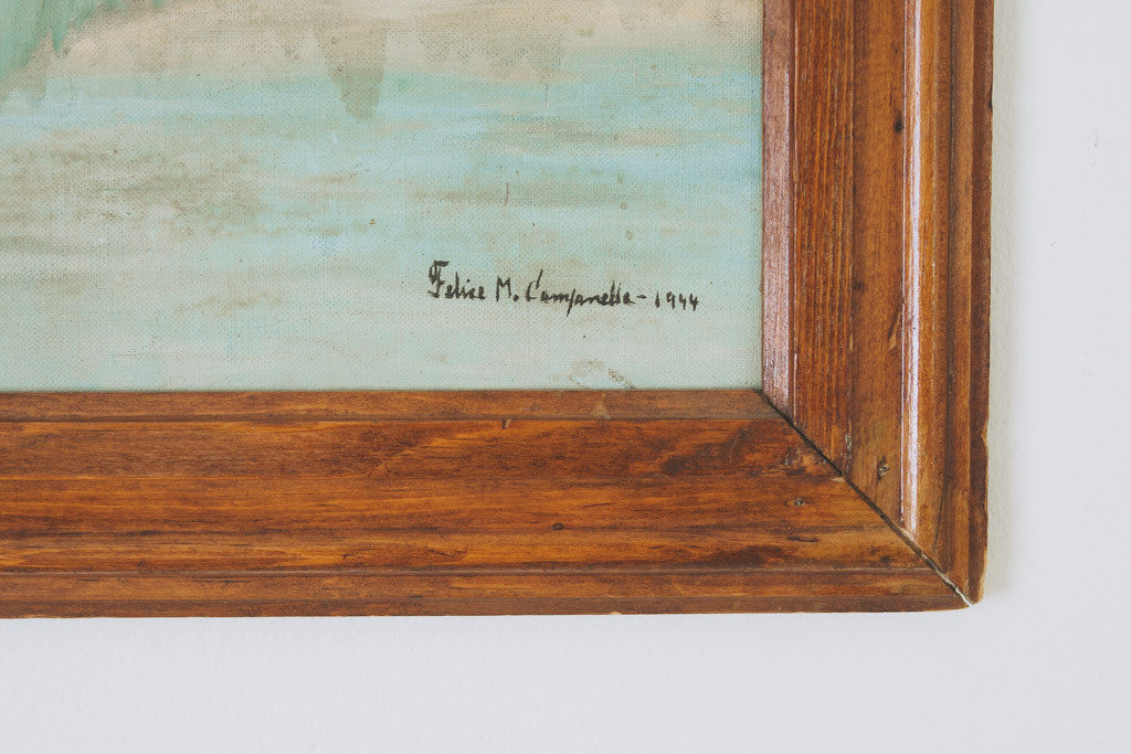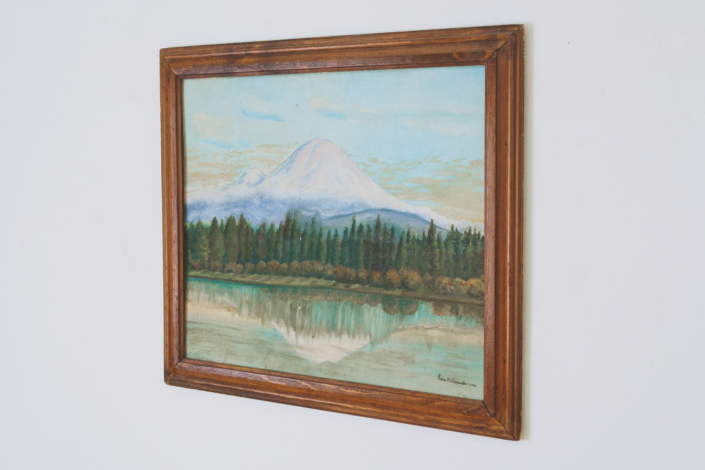 This framed vintage original oil painting of Mt. Rainier is signed "Felice M Campanella 1944". It's in good shape with age related wear including two tiny chips in the paint. See pictures for detailed condition.