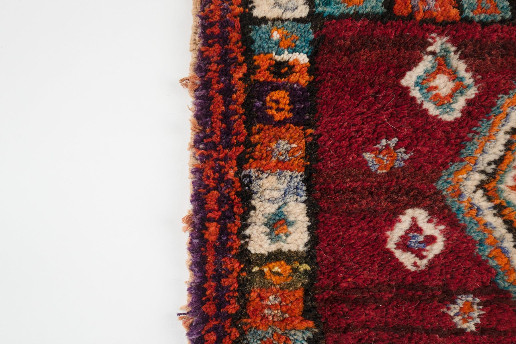name: Azaranorigin: Iran (Persian), Shirazstyle: rug, carpetmaterial: hand knotted woolcolors: red, orange, green, cream, black, brownage: vintagecondition: good, age related wear - see pictures
