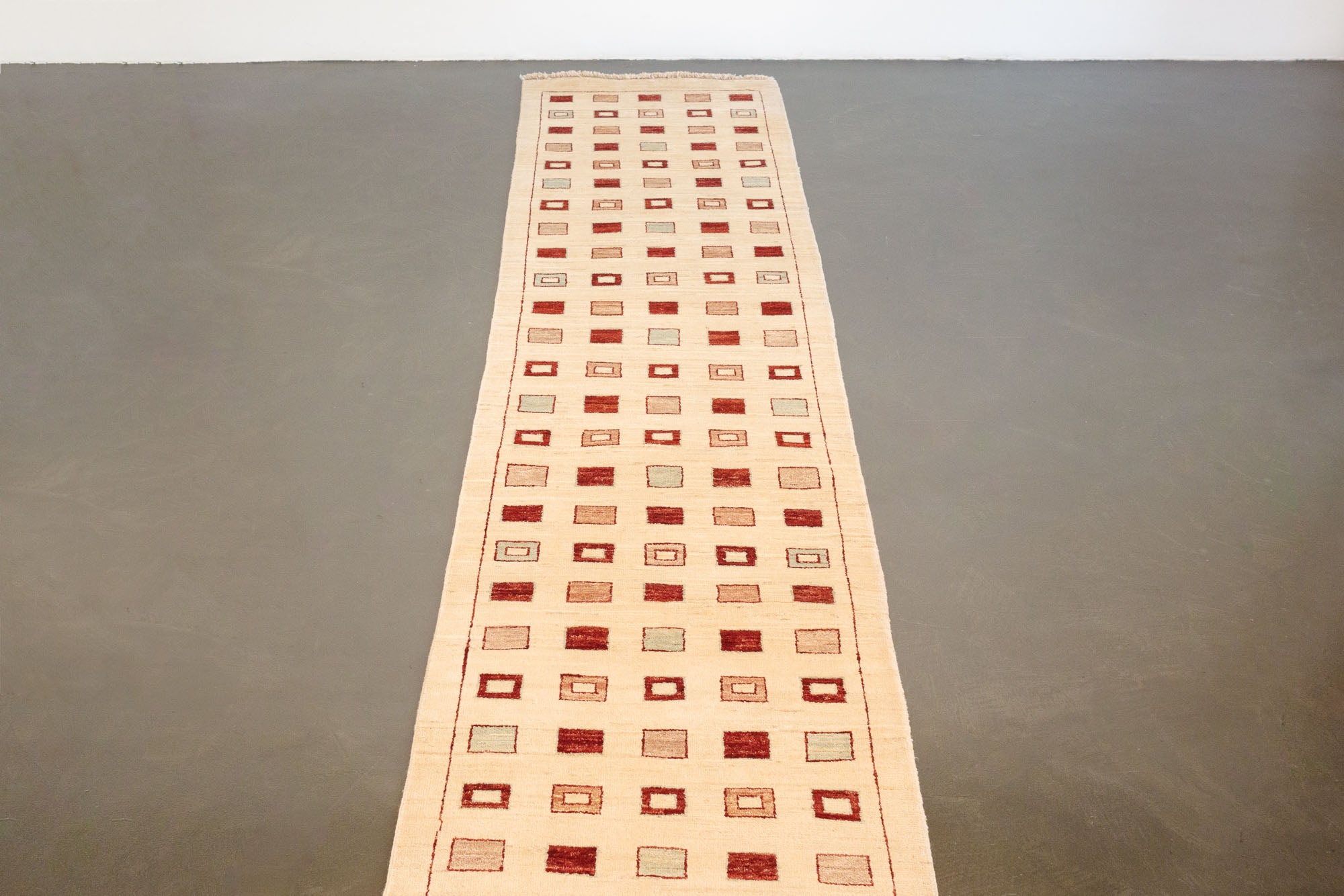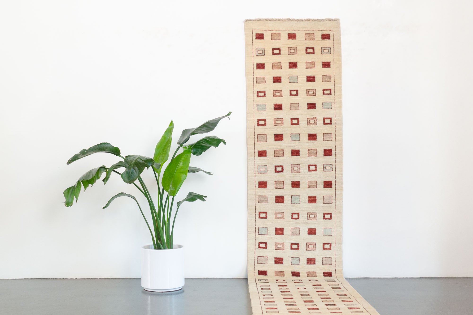 name: Jawanorigin: Afghanistanstyle: ziegler chobi, runner, rug, carpetmaterial: hand knotted woolcolors: cream, tan, brown, red, grayage: vintage, 1940-1970condition: good, age related wear - see picturesappraised value: $1836sku: a-409