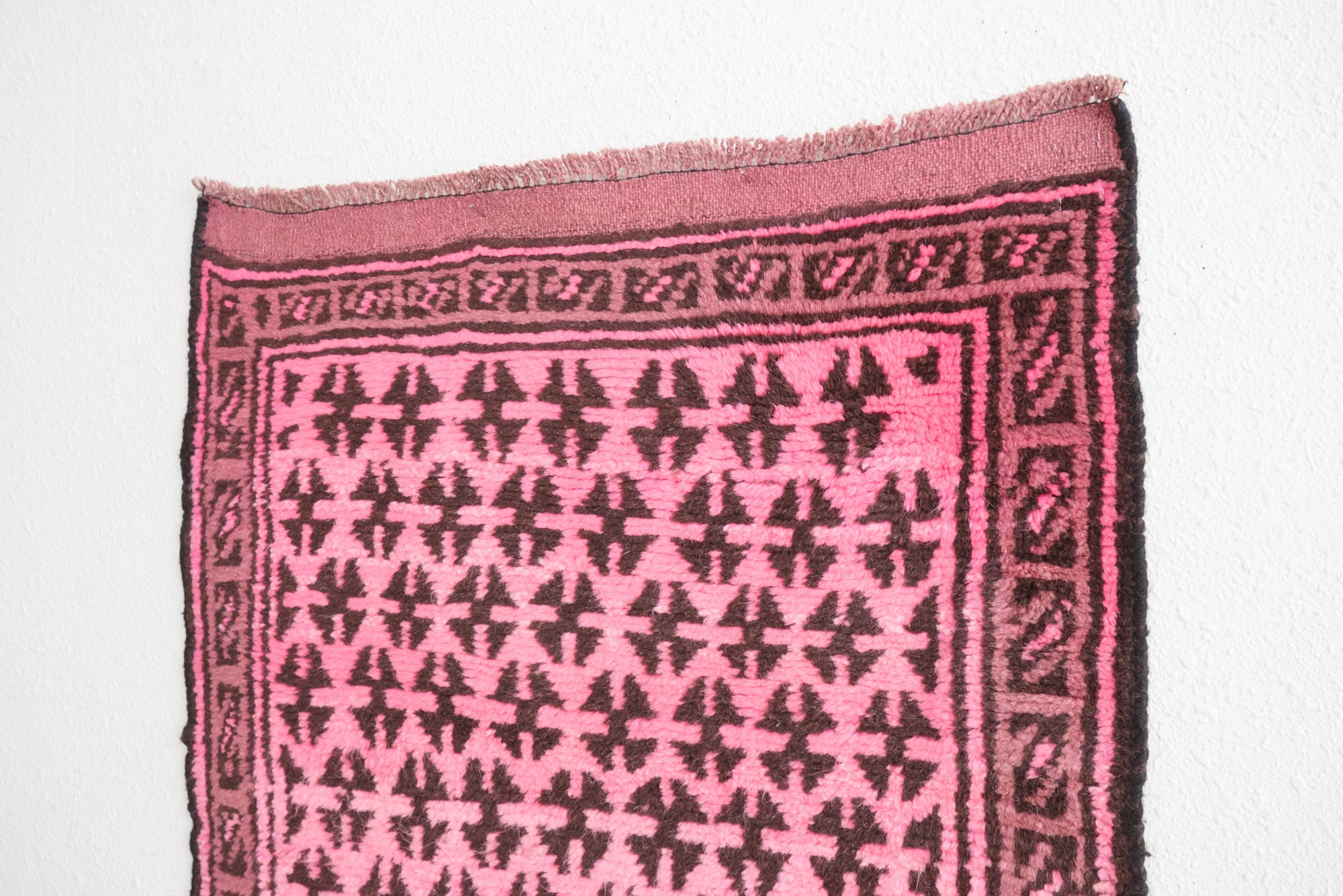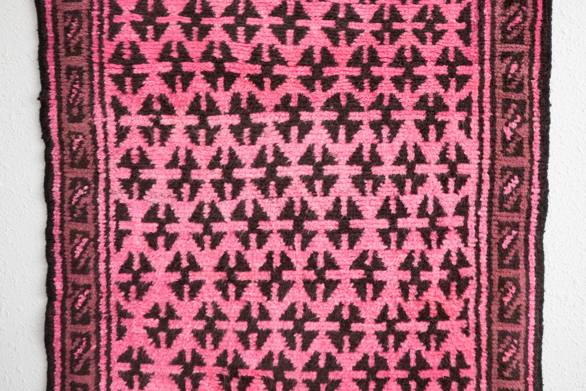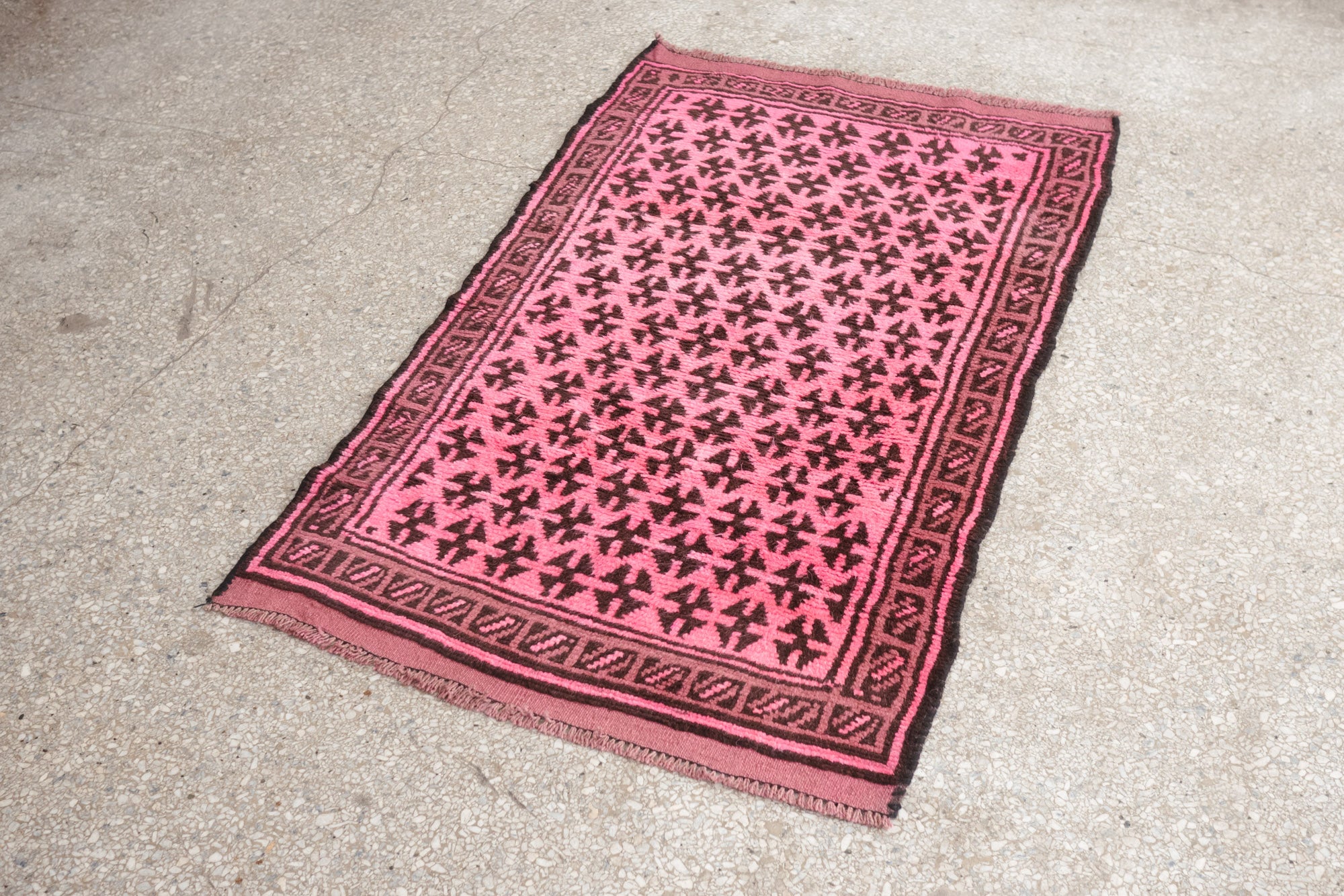 name: Baseerstyle: hand knotted, Afghan, over dyed, rug, carpetmaterial: woolcolors: pink, brown, mauveage: vintage condition: good, age related wear - see pictures