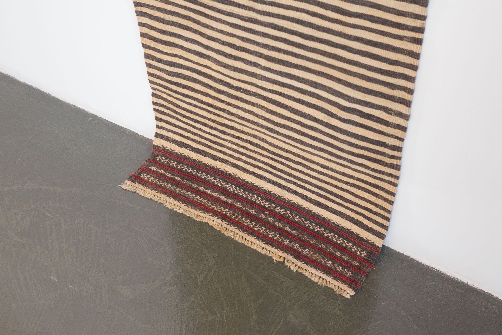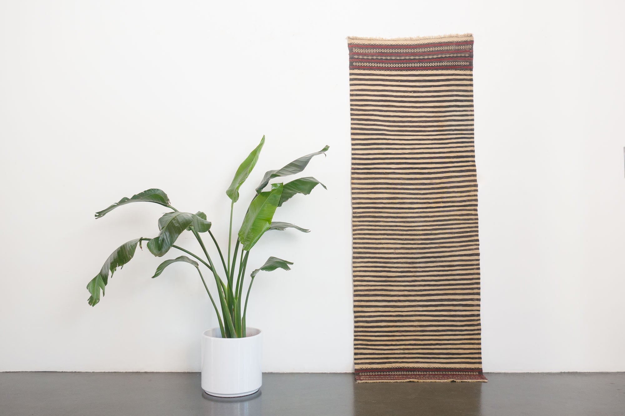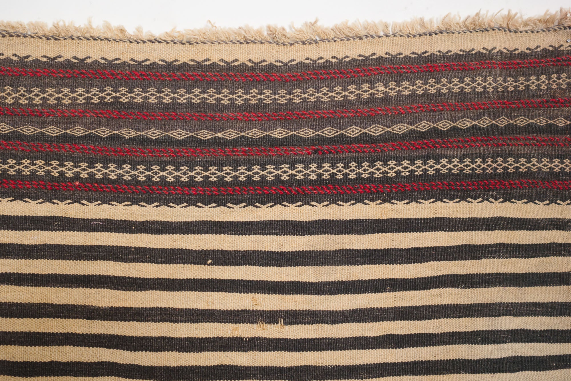 name: Oranosorigin: Afghanistanstyle: kilim, shirvan, rug, carpetmaterial: hand woven woolcolors: black, red, creamage: vintage, 1940-1970condition: good, age related wear - see picturesappraised value: $544sku: a-432
