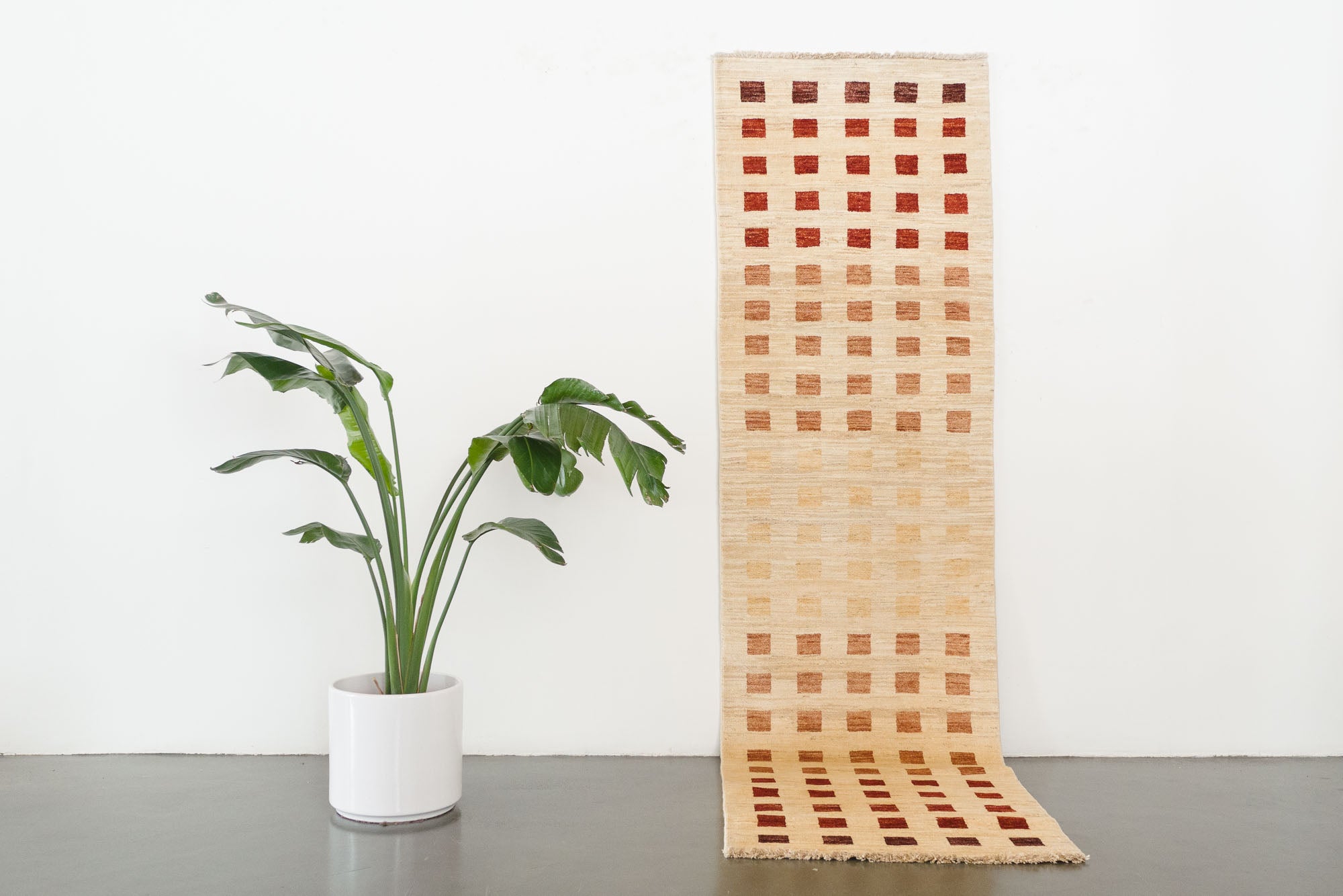 name: Shayanorigin: Afghanistanstyle: ziegler chobi, runner, rug, carpetmaterial: hand knotted woolcolors: cream, tan, brown, redage: vintage, 1940-1970condition: good, age related wear - see picturesappraised value: $1260sku: a-438