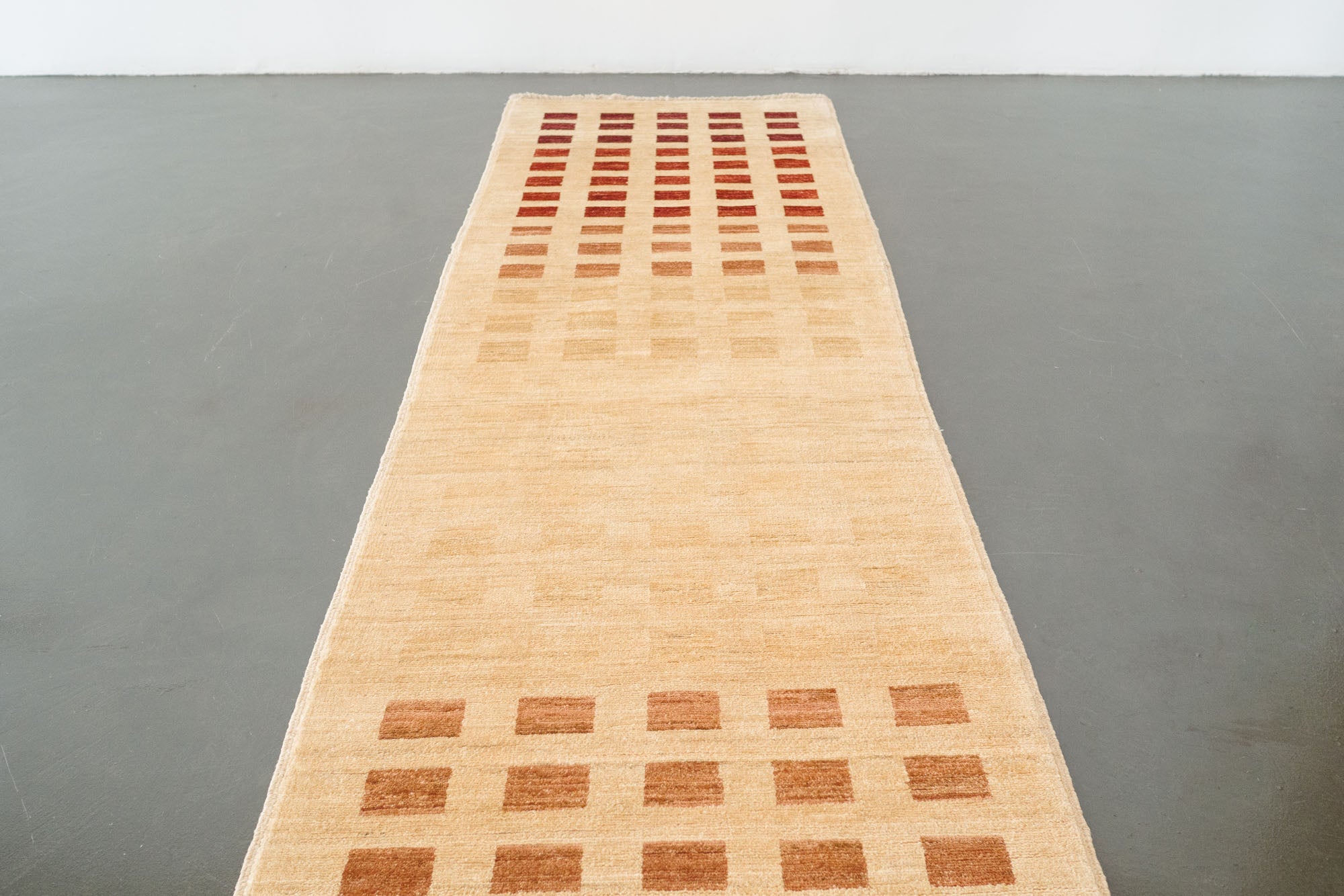 name: Sherorigin: Afghanistanstyle: ziegler chobi, runner, rug, carpetmaterial: hand knotted woolcolors: cream, tan, brown, redage: vintage, 1940-1970condition: good, age related wear - see picturesappraised value: $1252sku: a-437