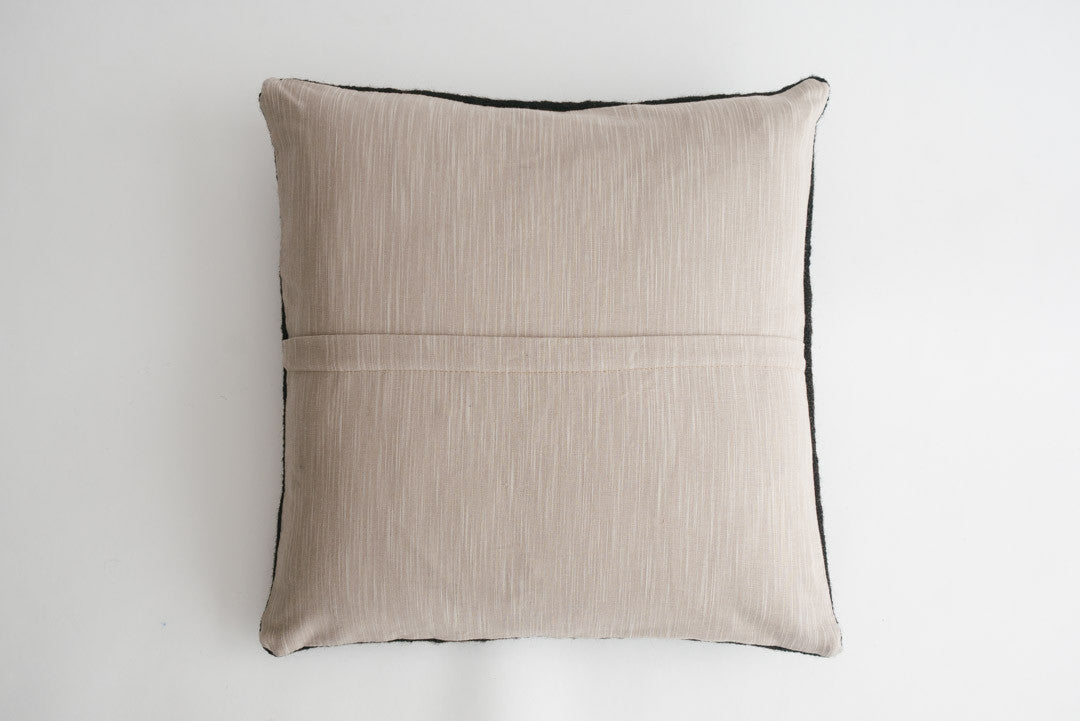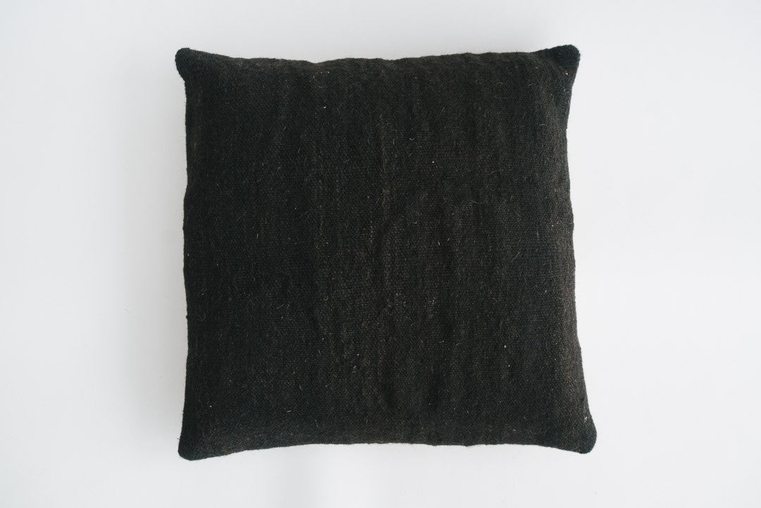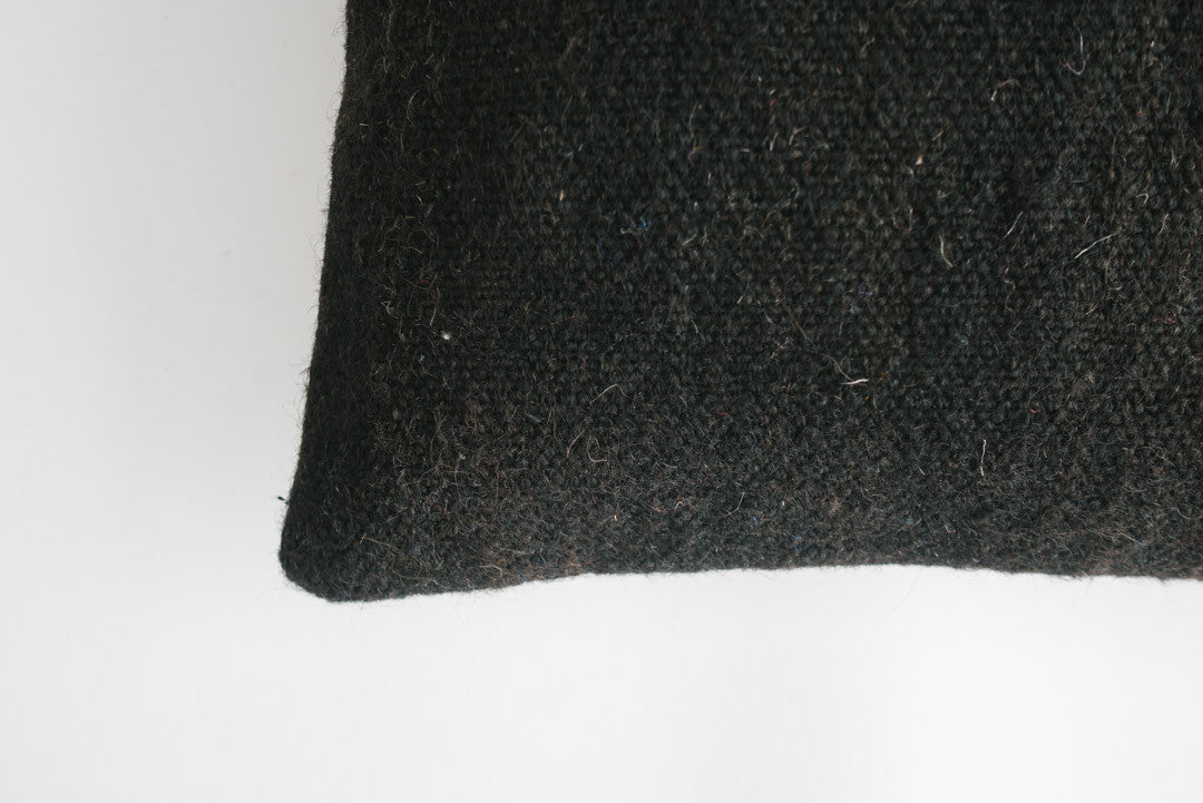 style: Turkish, hand crafted, kilim, pillow material: wool, fabric, metal zipper, feather insert colors: black age: vintage/new condition: good, age related wear - see pictures