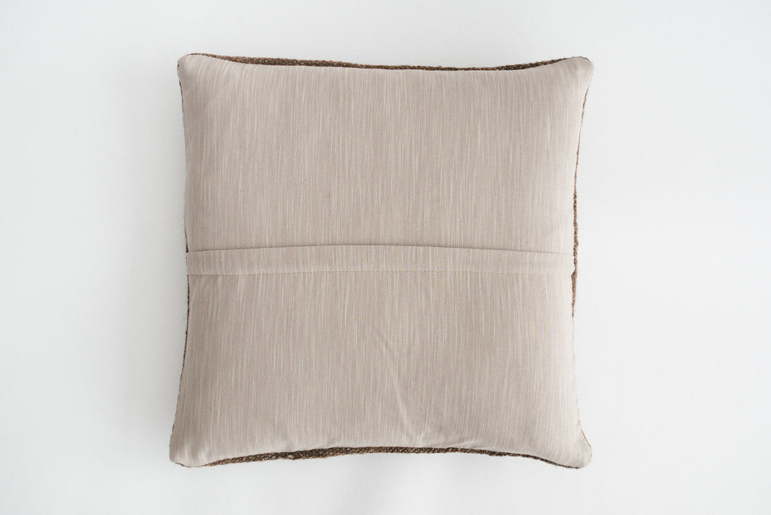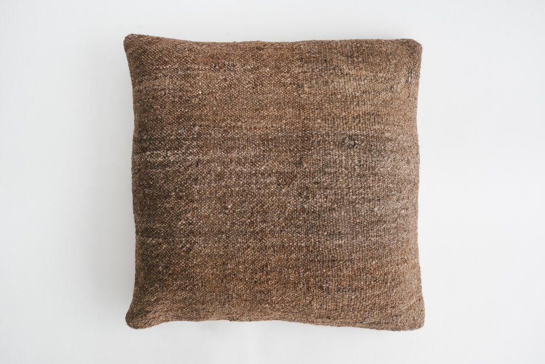 style: Turkish, hand crafted, kilim, pillow material: wool, fabric, metal zipper, feather insert colors: brown age: vintage/new condition: good, age related wear - see pictures