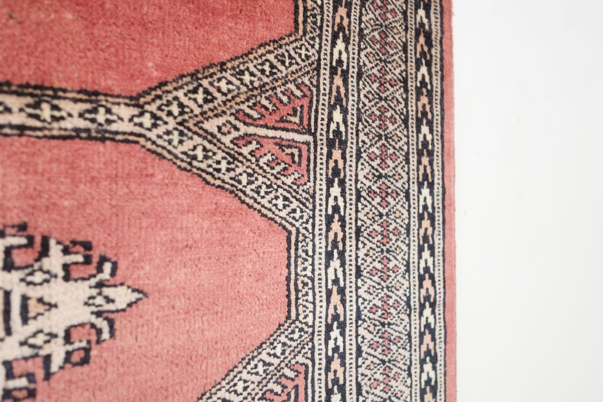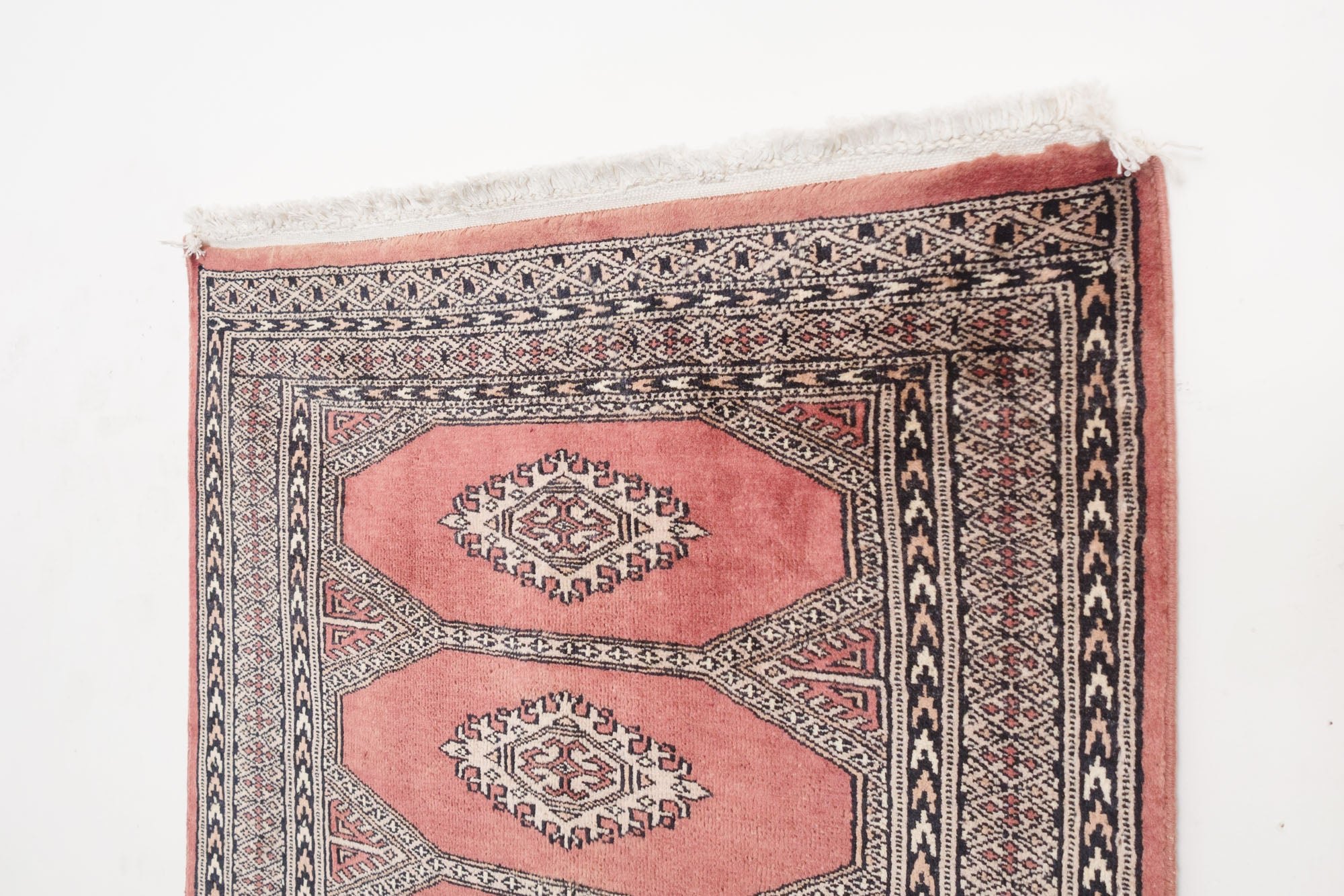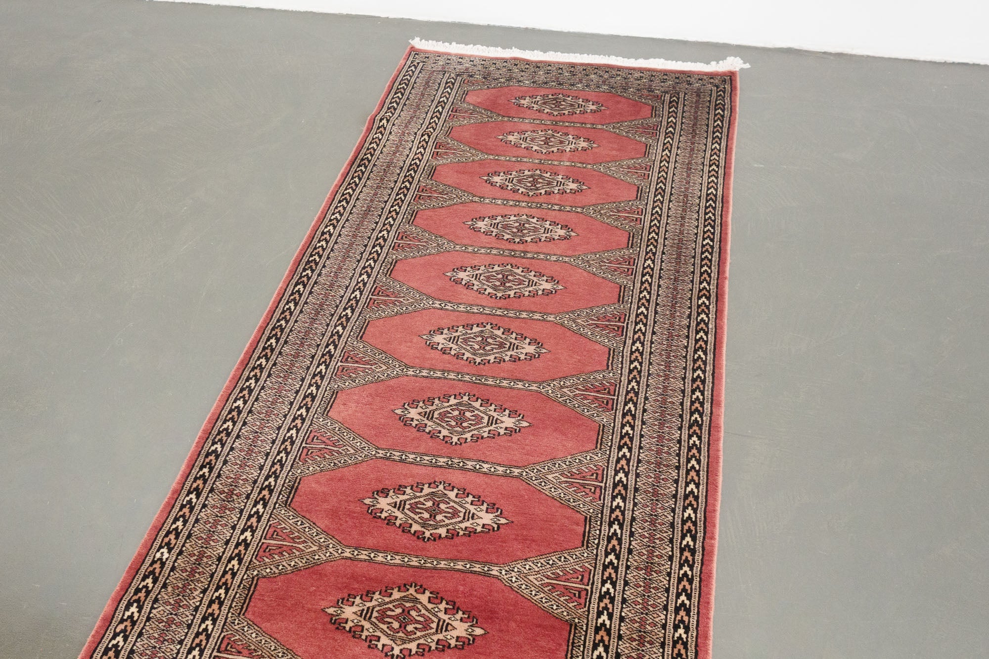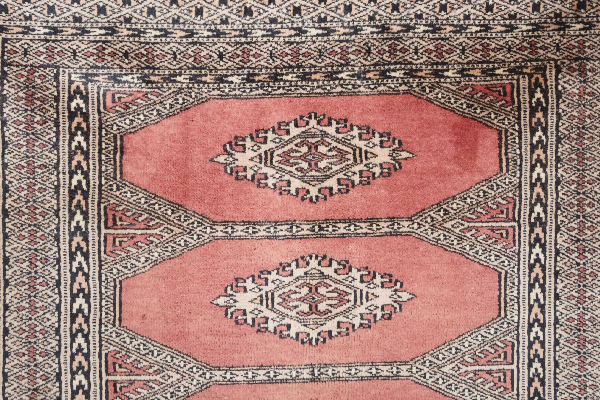 name: Jabezorigin: Pakistan, Peshawar Bokhara style: runner, rug, carpetmaterial: hand knotted woolcolors: red, black, camel, creamage: vintagecondition: good, age related wear - see picturesappraised value: $1,056