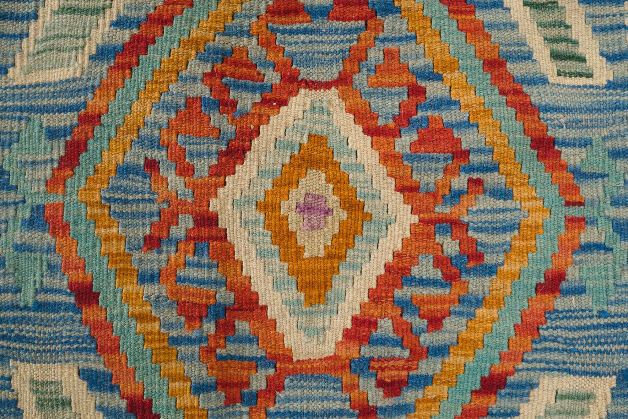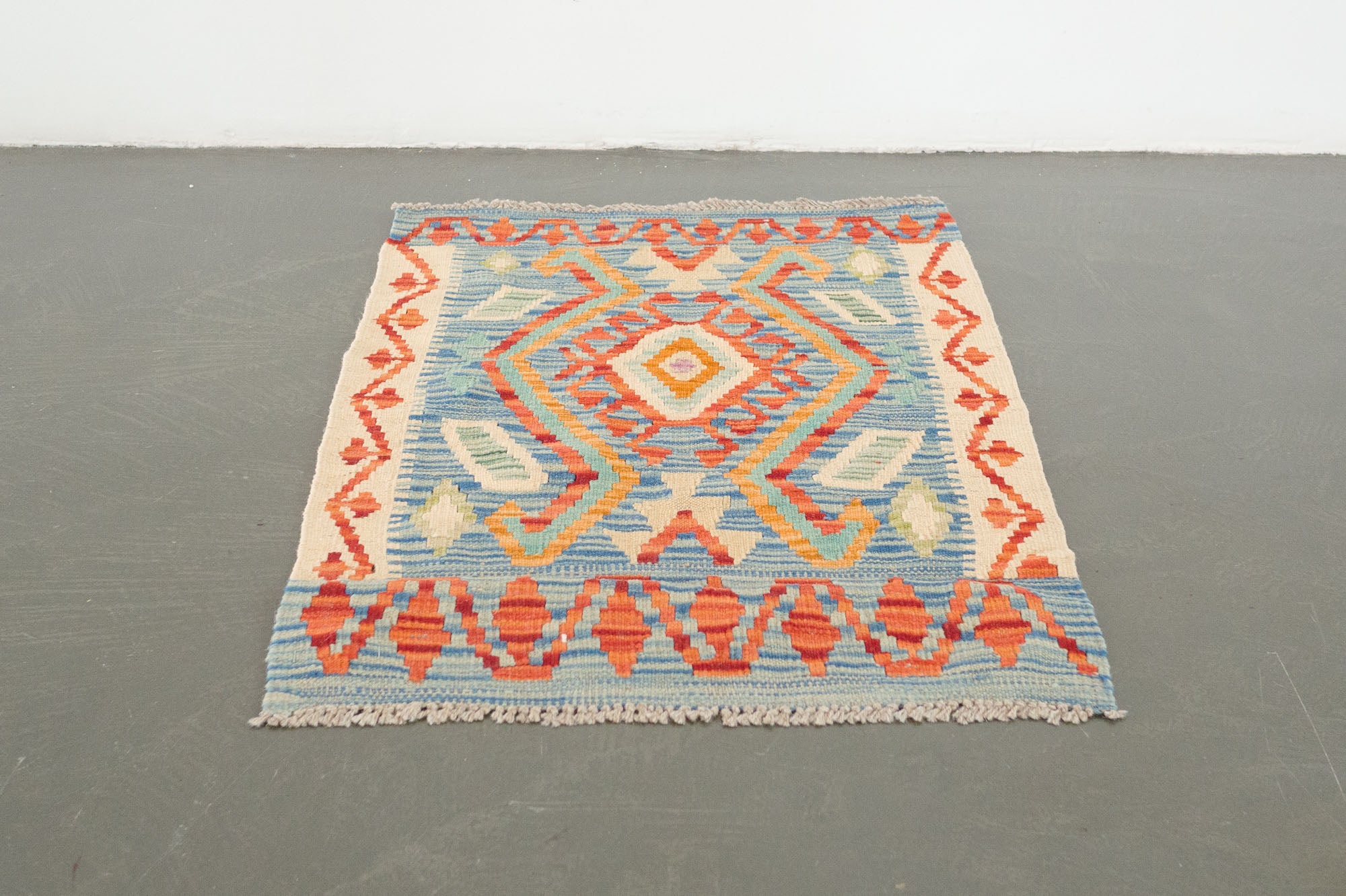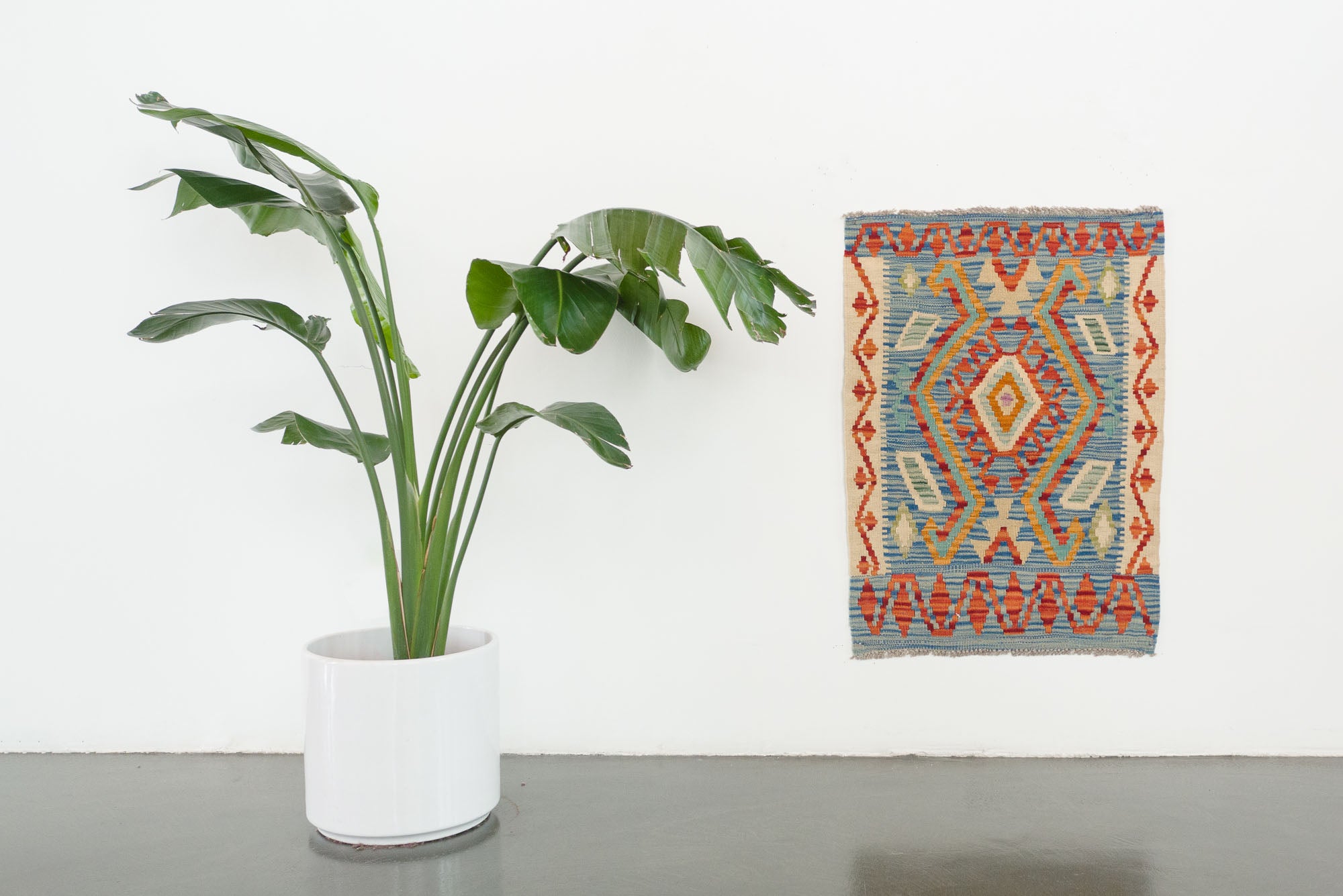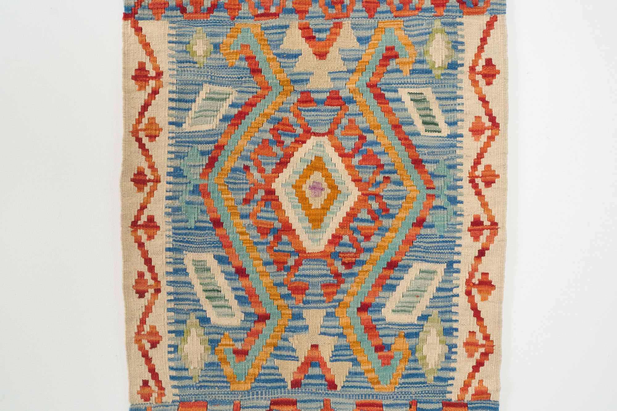 name: Cezmiorigin: Turkeystyle: kilim, rug, carpetmaterial: hand woven woolcolors: red, orange, blue, green, cream, grayage: vintage, 1940-1970condition: good, age related wear - see picturesappraised value: $336sku: t-403