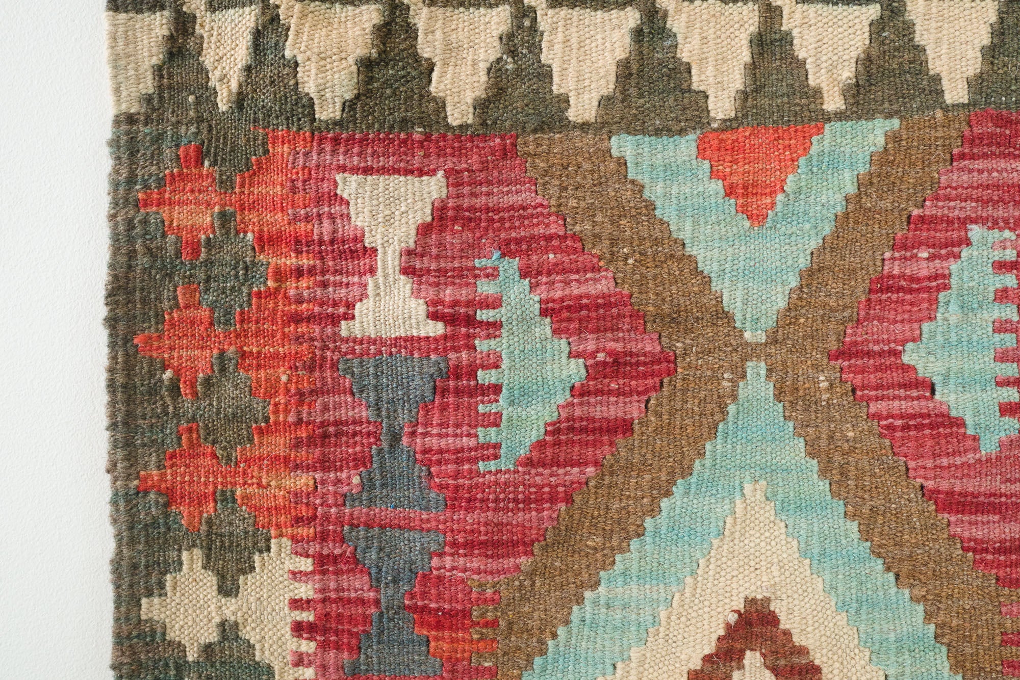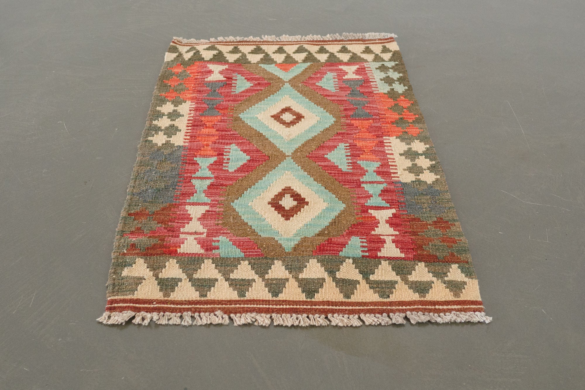 name: Golluorigin: Turkeystyle: kilim, rug, carpetmaterial: hand woven woolcolors: red, blue, green, cream, brown, purple, orangeage: vintage, 1940-1970condition: good, age related wear - see picturesappraised value: $324sku: t-401