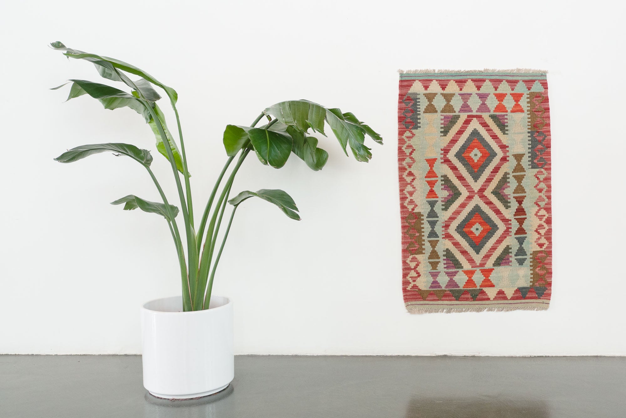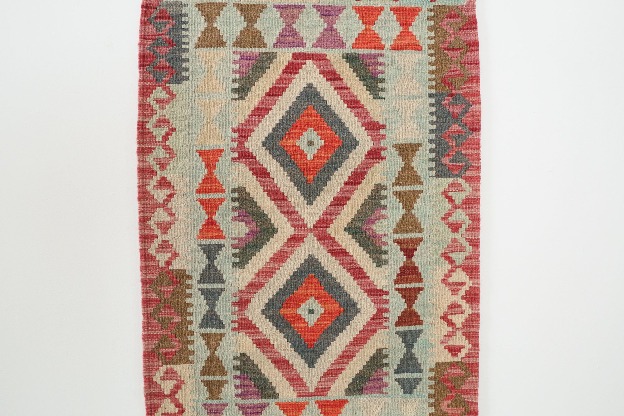name: Zarakoluorigin: Turkeystyle: kilim, rug, carpetmaterial: hand woven woolcolors: red, blue, green, cream, brown, purpleage: vintage, 1940-1970condition: good, age related wear - see picturesappraised value: $328sku: t-400