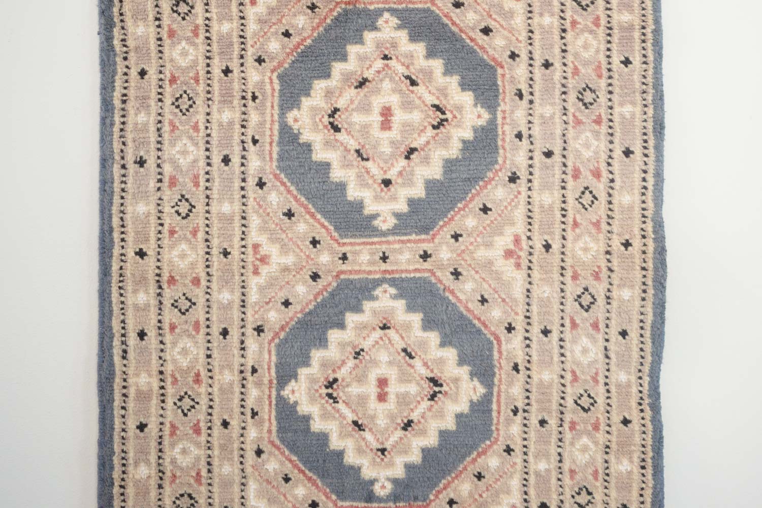 name: Dilafrozstyle: hand knotted, Pakistani, Peshawar, Bokhara, rug, carpetmaterial: woolcolors: red, tan, beige, blueage: vintagecondition: good, age related wear - see pictures