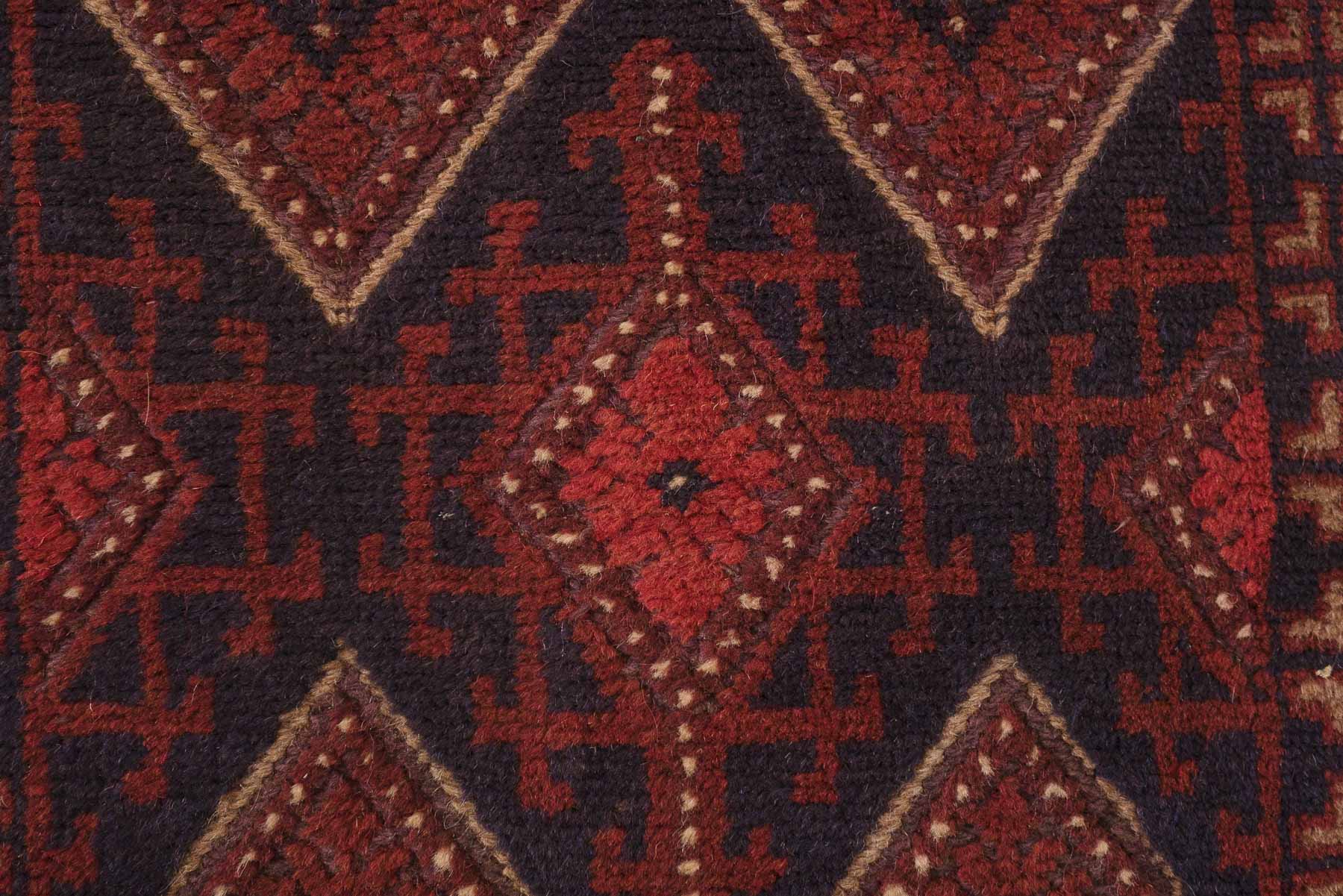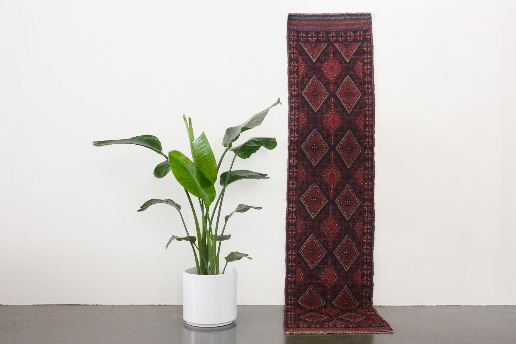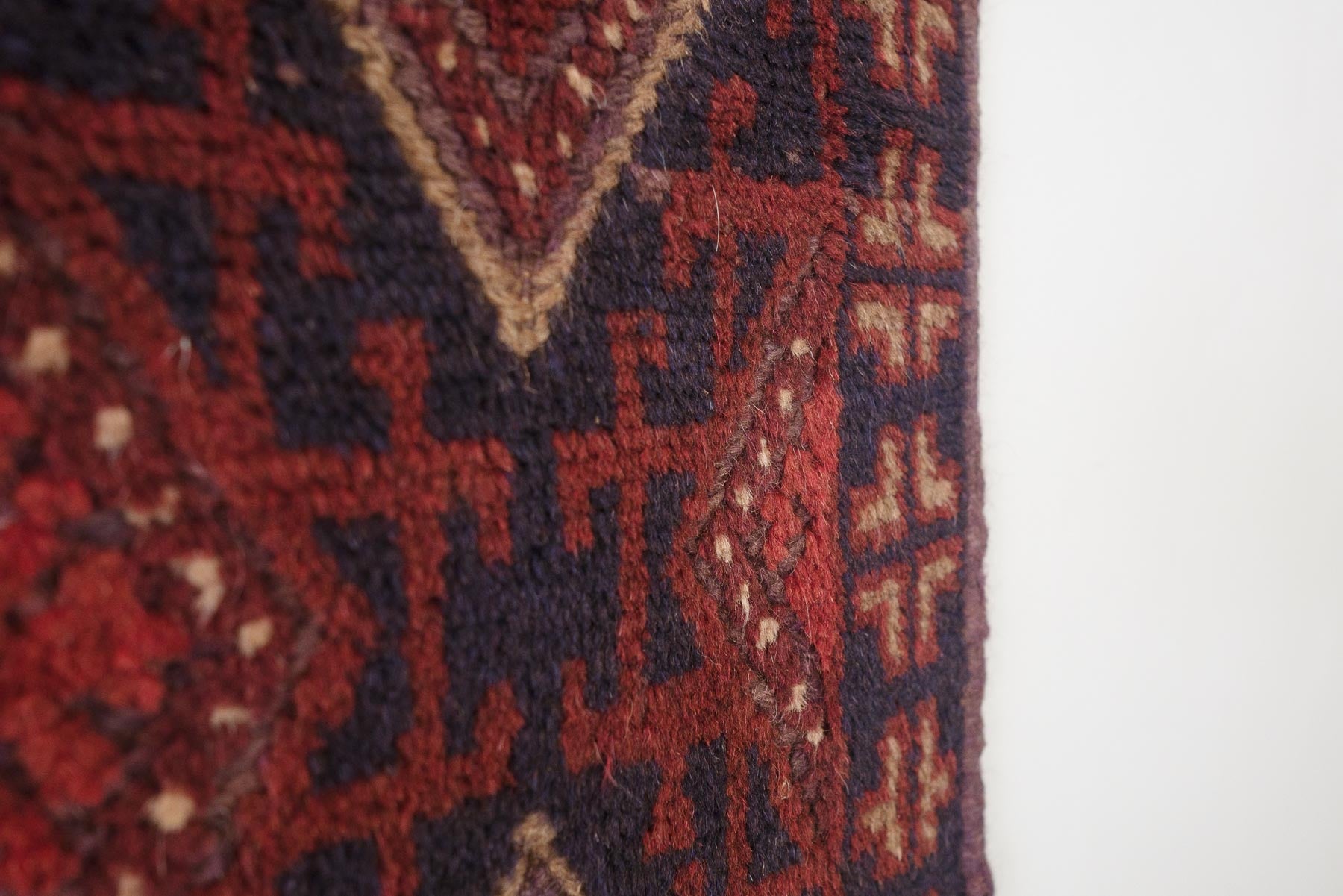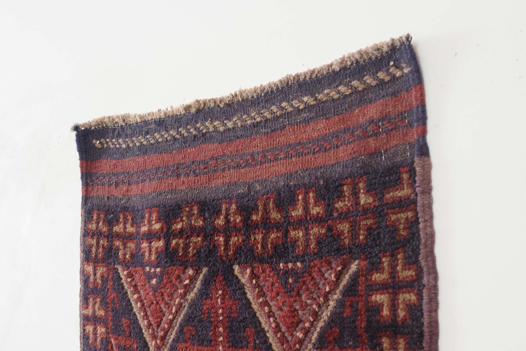 name: Saifurstyle: hand knotted, Afghan, Tajik, rug, runner, carpetmaterial: woolcolors: oxblood, navy, tan age: vintage condition: good, age related wear - see pictures