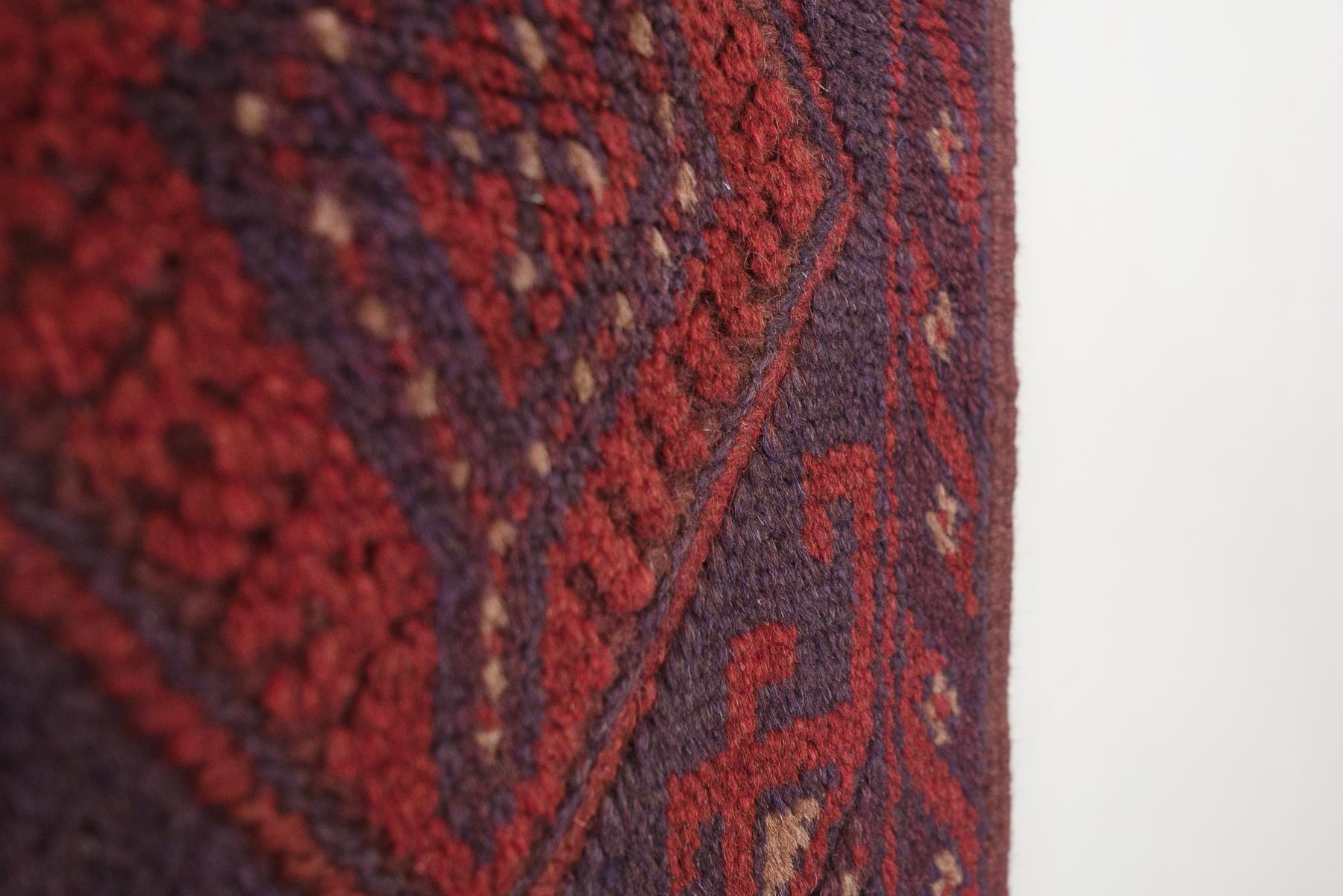 name: Saifurstyle: hand knotted, Afghan, Tajik, rug, runner, carpetmaterial: woolcolors: oxblood, navy, tan age: vintage condition: good, age related wear - see pictures