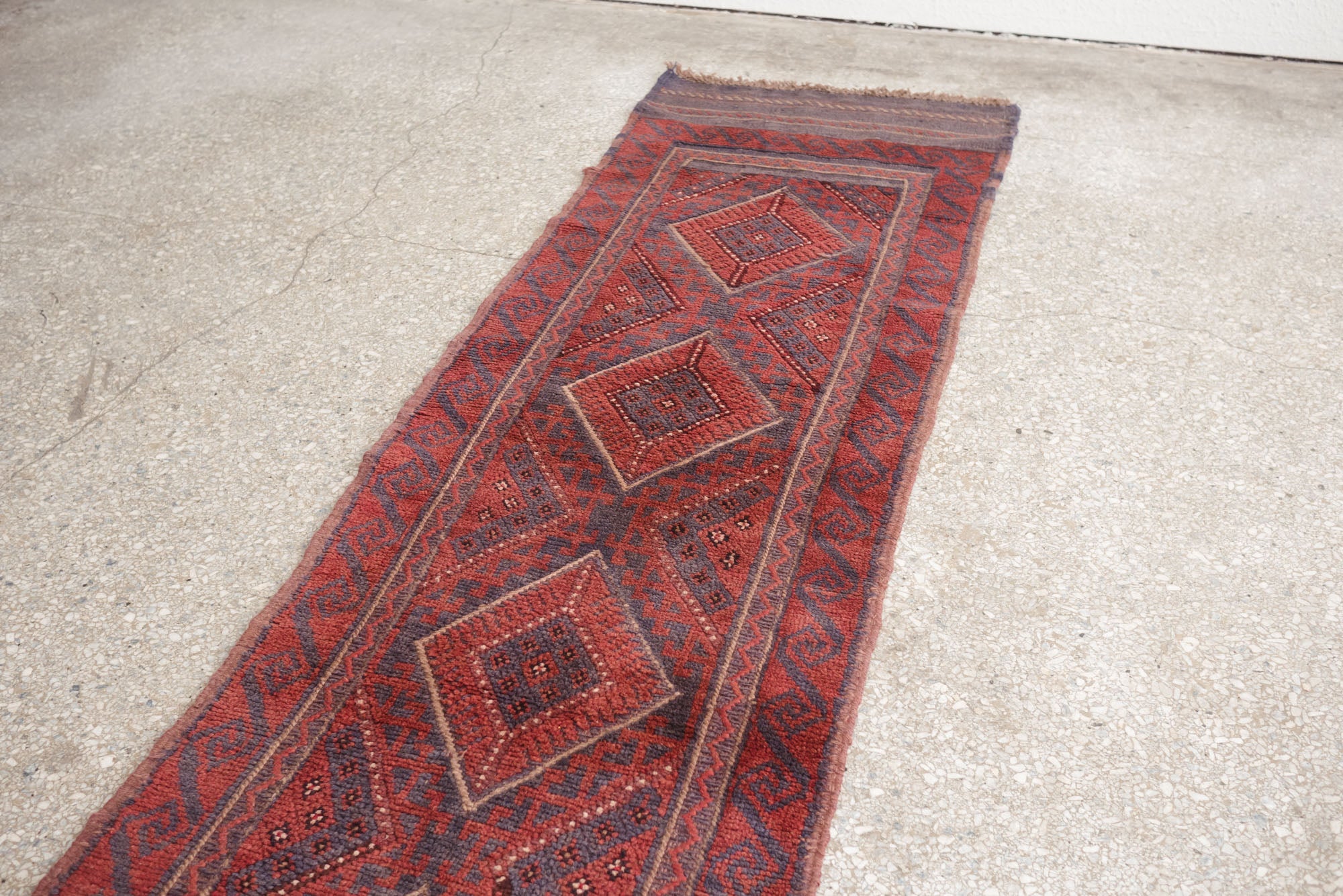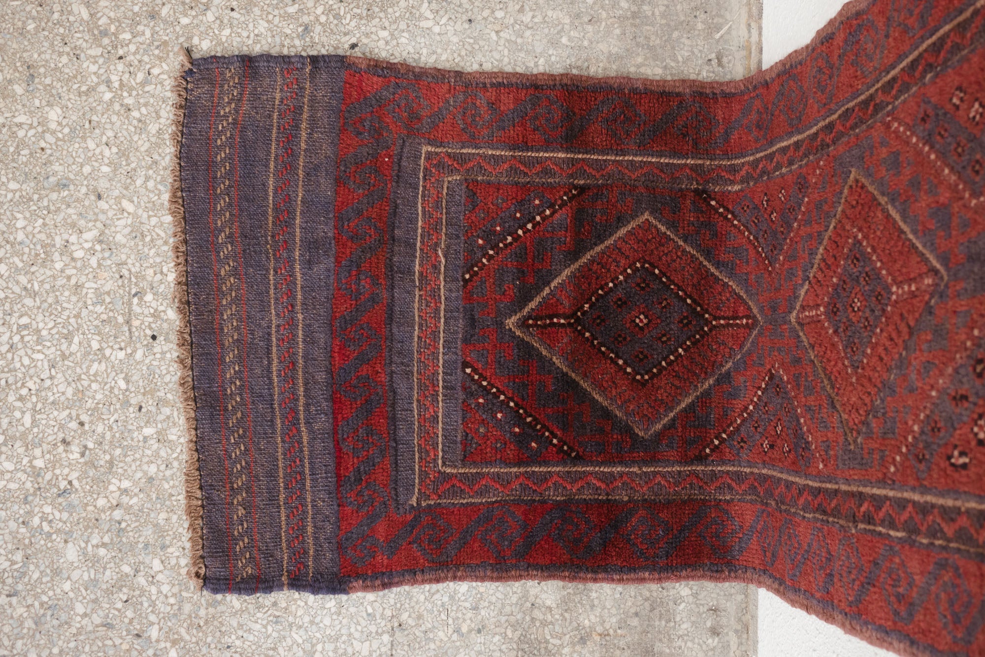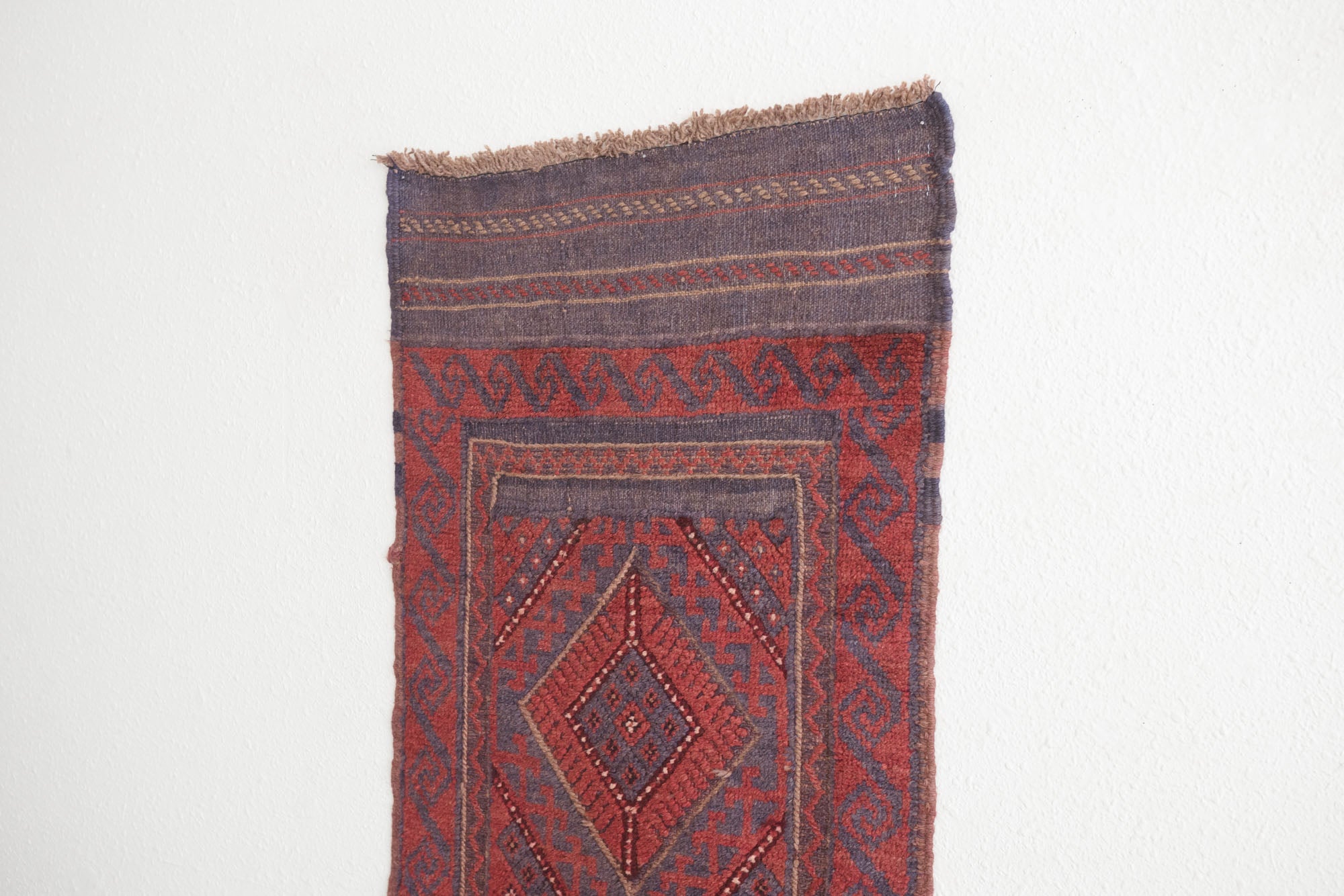 name: Zartajstyle: hand knotted, Afghan, Tajik, rug, runner, carpetmaterial: woolcolors: red, blue, camel, cream, purpleage: vintage condition: good, age related wear - see pictures