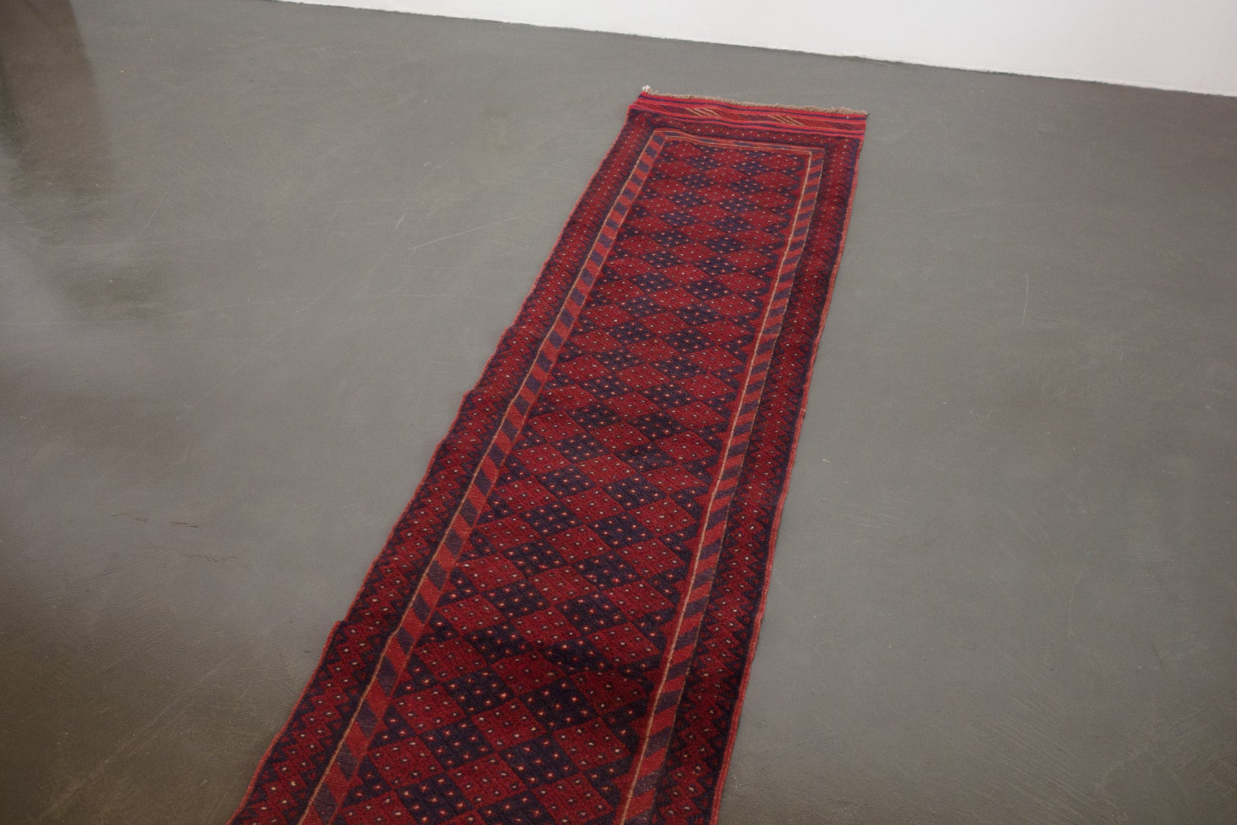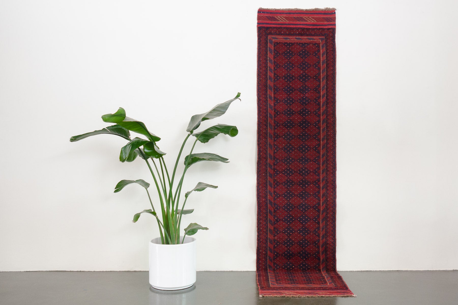 name: Gulrezorigin: Afghanistan, Tajikstyle: rug, runner, carpetmaterial: hand knotted woolcolors: red, navy, camel, creamage: vintagecondition: good, age related wear - see picturesappraised value: $620