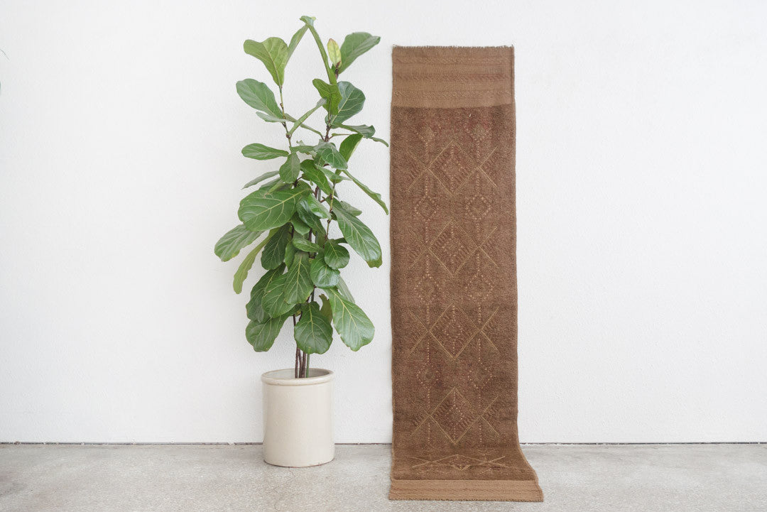 name: Kashmala style: hand knotted, Afghani, Tajik, runner, rug, carpet material: wool colors: cream, camel, dark brown, rust age: vintage condition: good, age related wear, no holes - see pictures