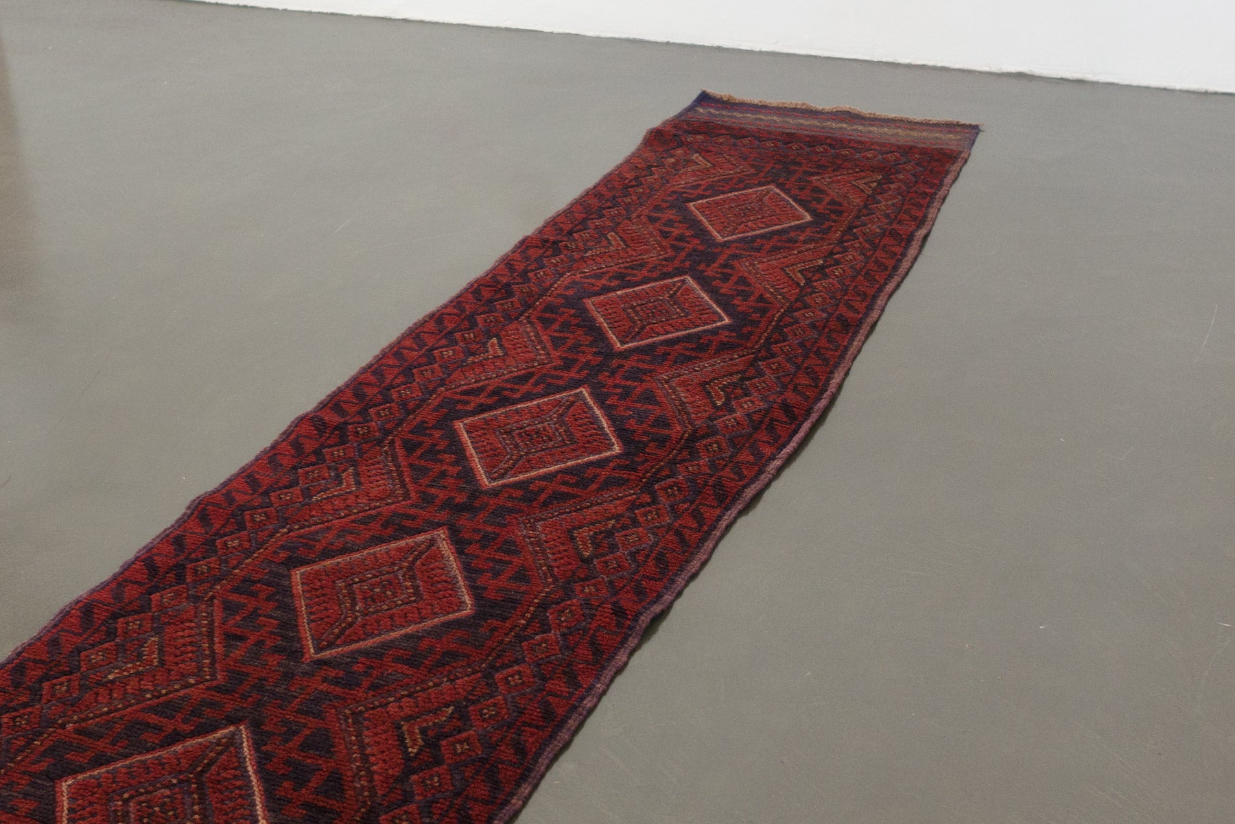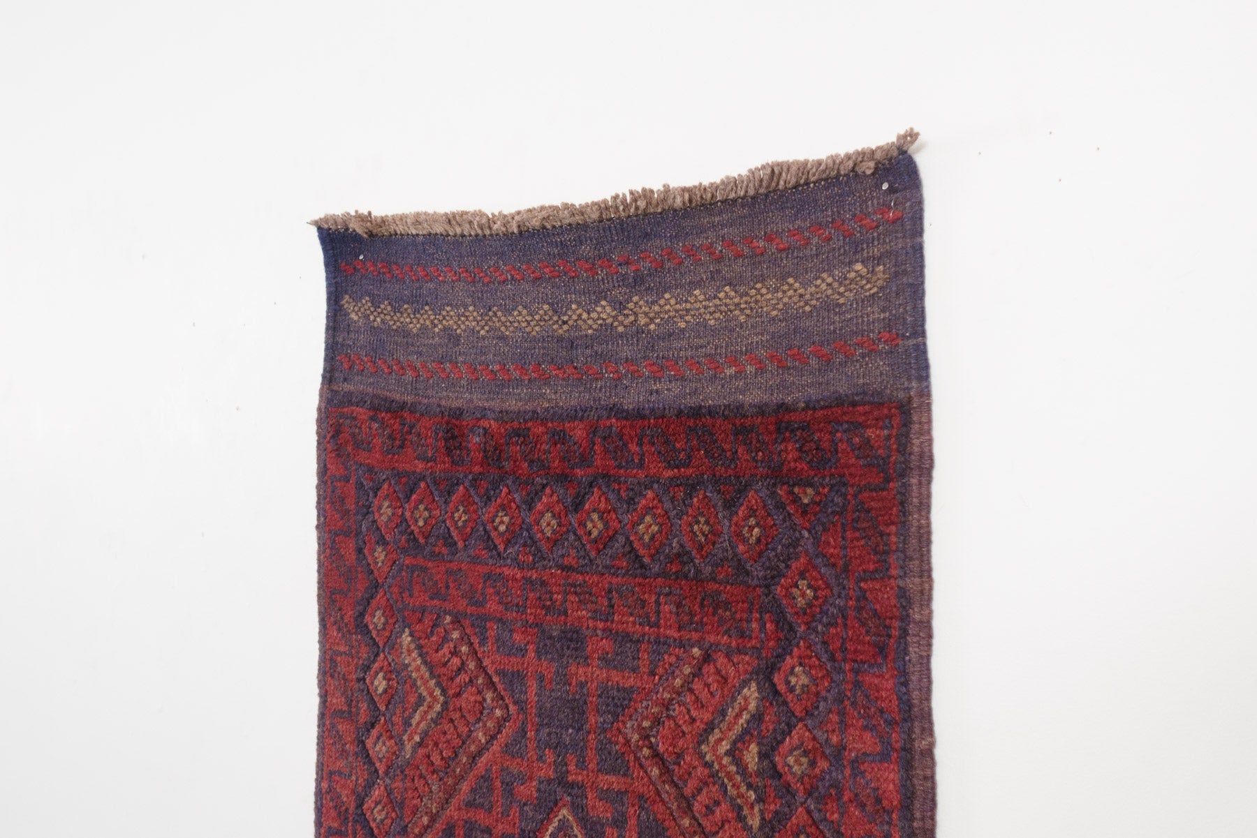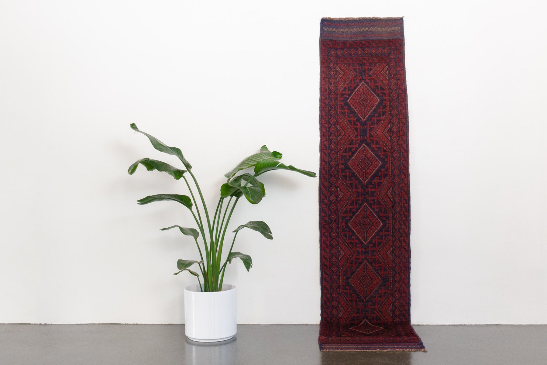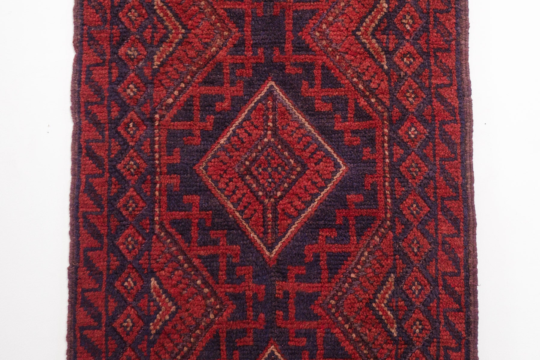 name: Taroonorigin: Afghanistan, Tajikstyle: rug, runner, carpetmaterial: hand knotted woolcolors: red, navy, camelage: vintagecondition: good, age related wear - see picturesappraised value: $644