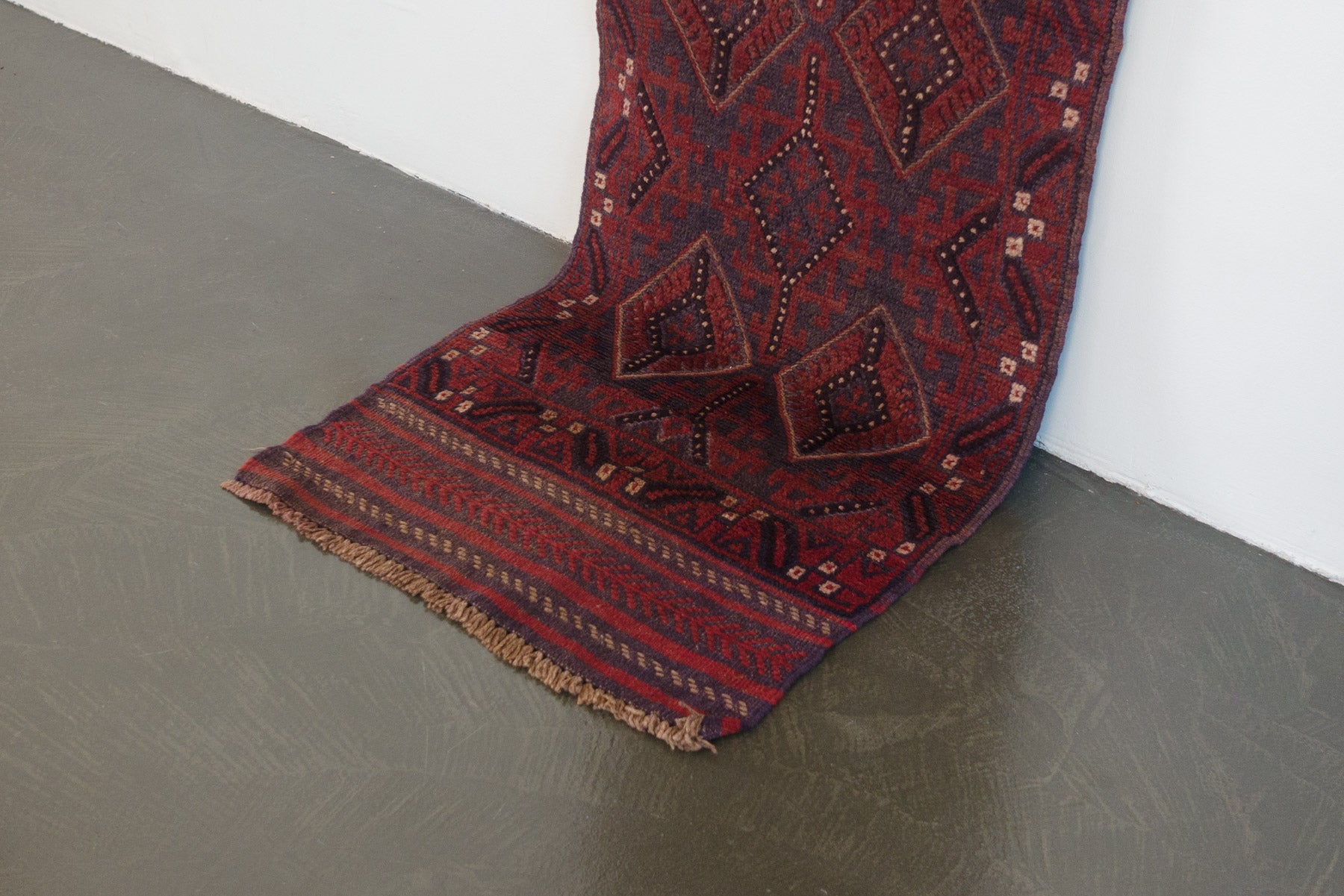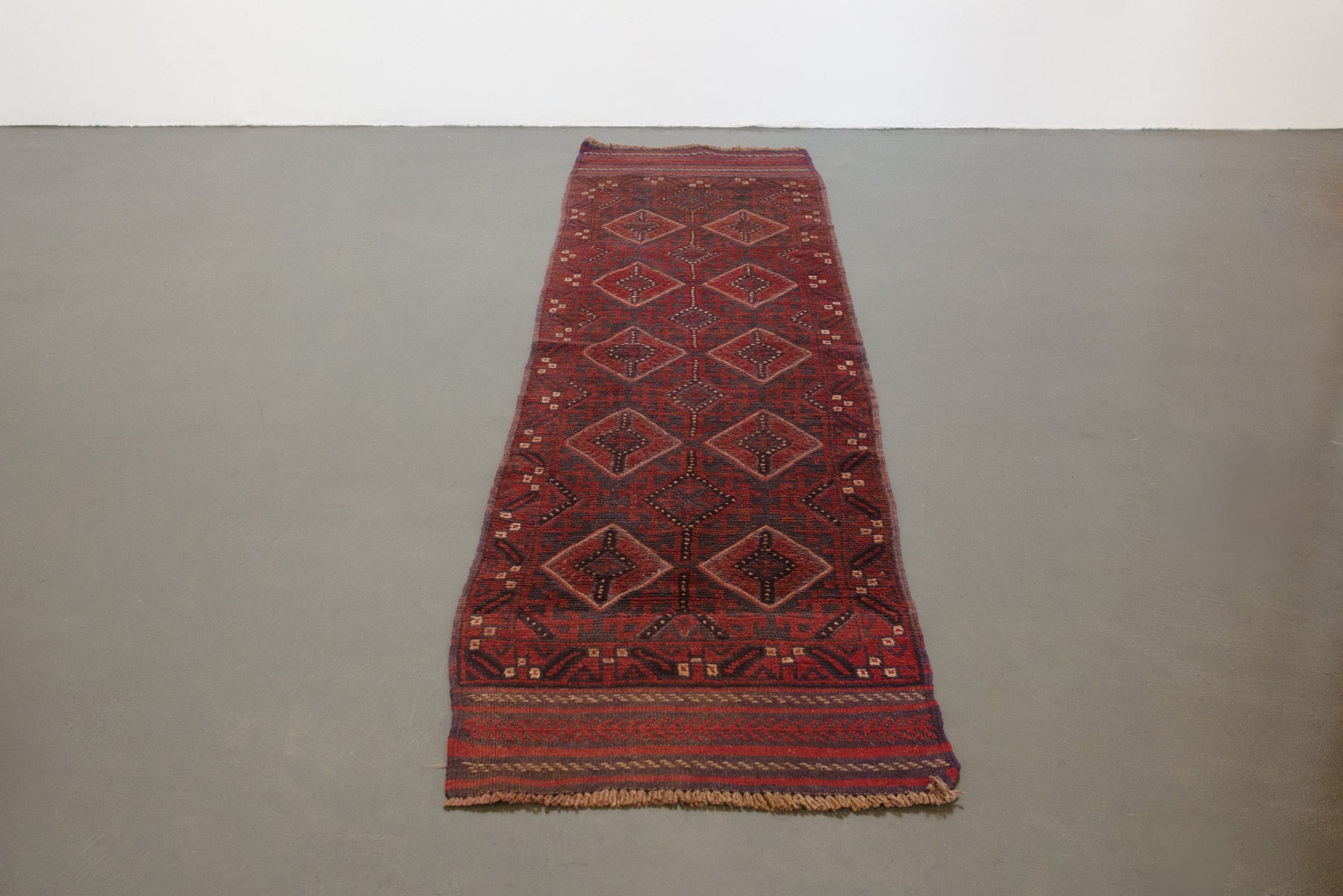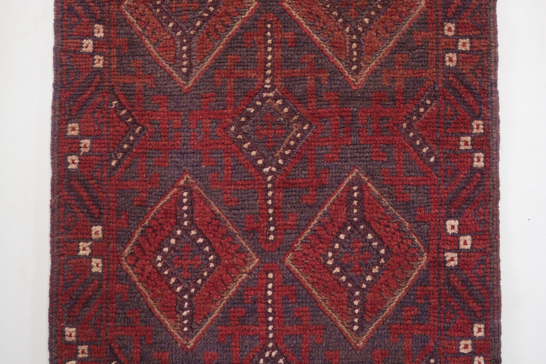 name: Tolwakorigin: Afghanistan, Tajikstyle: rug, runner, carpetmaterial: hand knotted woolcolors: red, navy, camel, purpleage: vintagecondition: good, age related wear - see picturesappraised value: $644