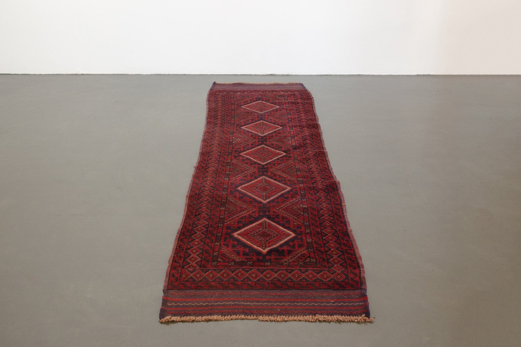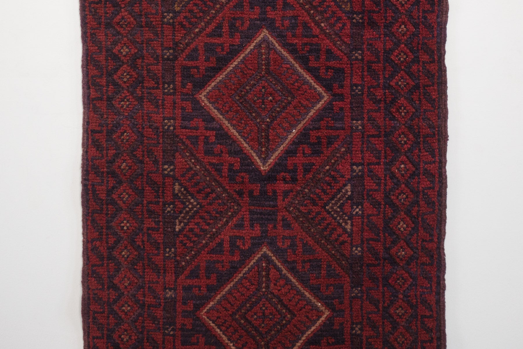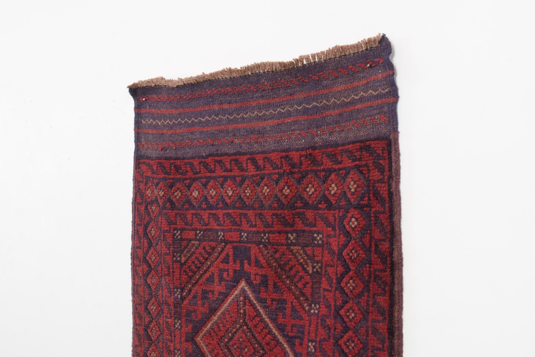 name: Toryalorigin: Afghanistan, Tajikstyle: rug, runner, carpetmaterial: hand knotted woolcolors: red, navy, camel, purpleage: vintagecondition: good, age related wear - see picturesappraised value: $652