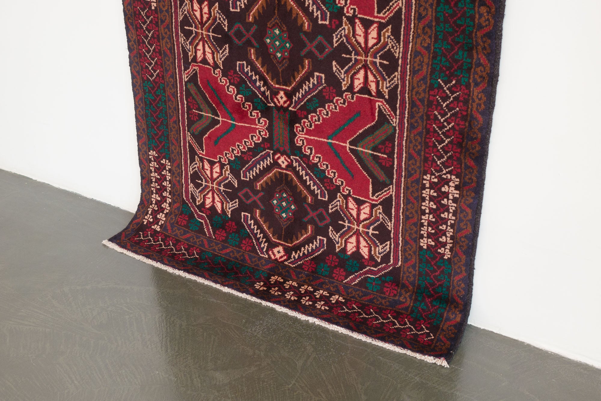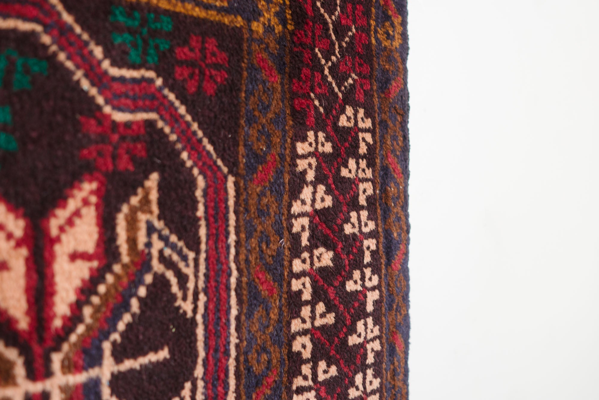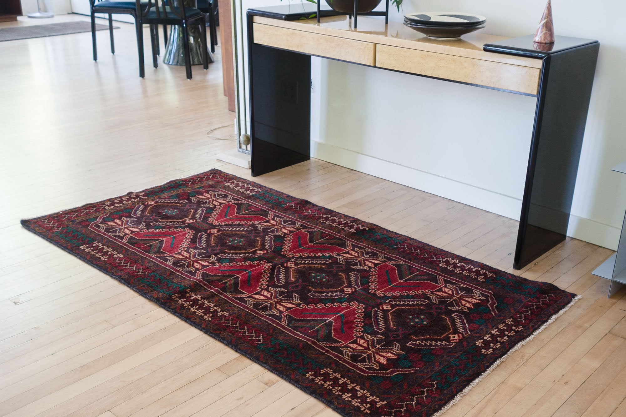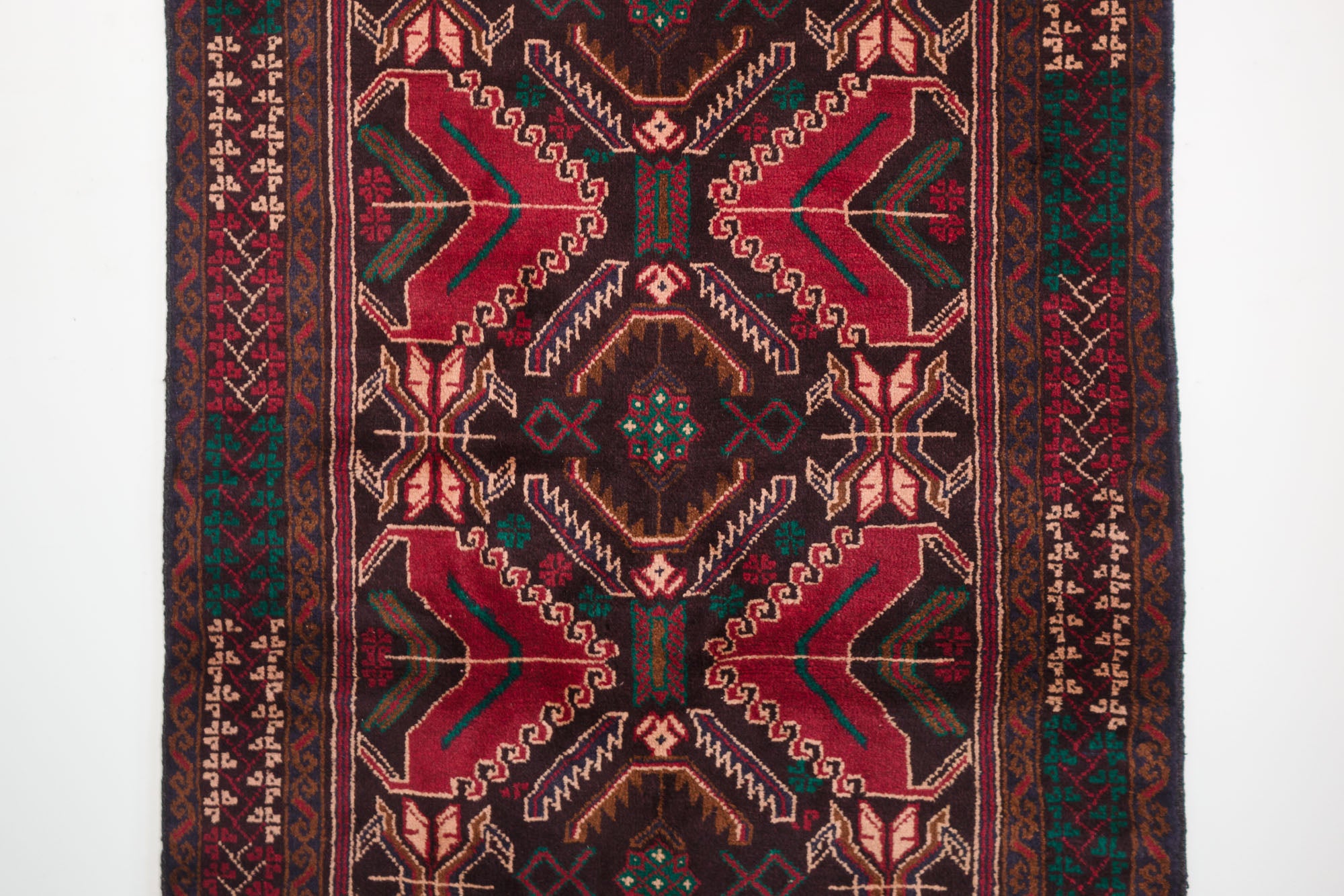 name: Jahanorigin: Afghanistanstyle: Teimani, geometric, rug, carpetmaterial: hand knotted woolcolor: reds, yellow, browns, green, cream, grayage: vintage (1940-1969)condition: good, age related wear - see picturesappraised value: $884