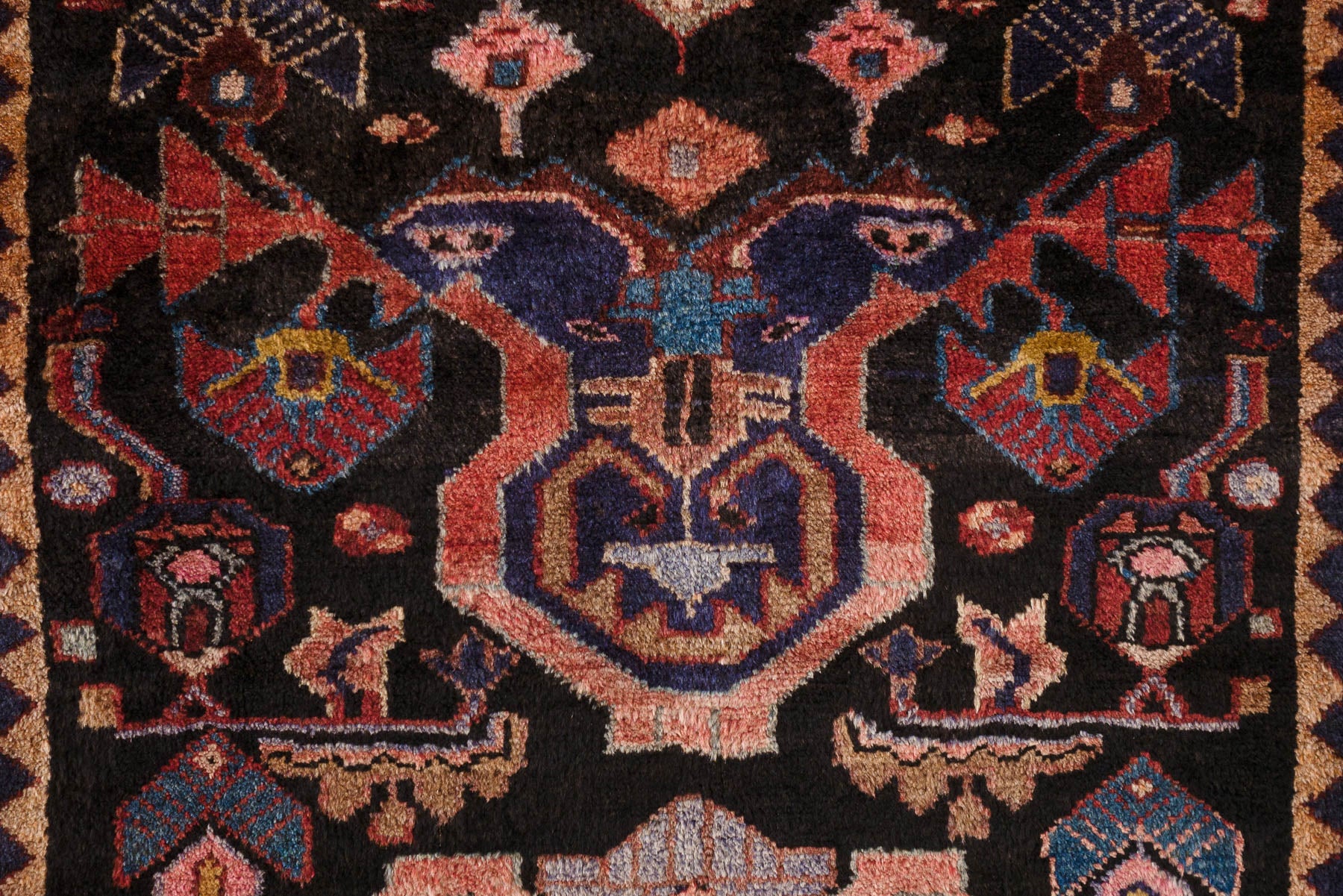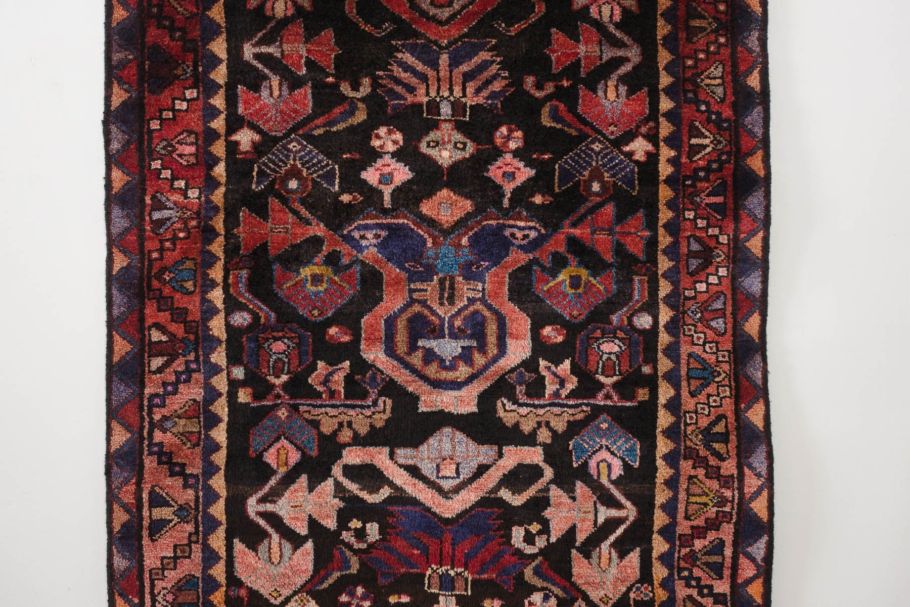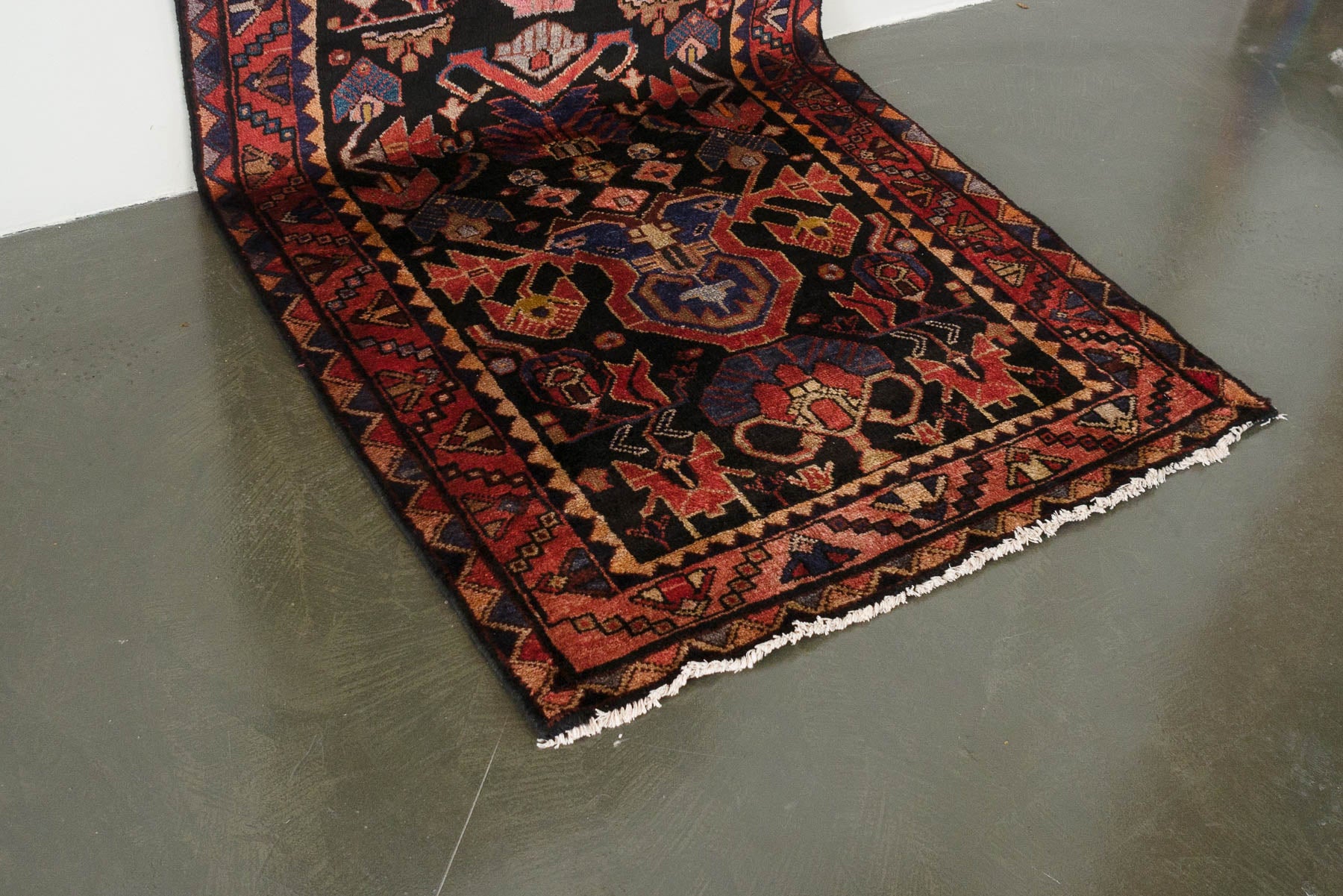name: Razistyle: hand knotted, Persian, Nahavand, rug, carpet material: woolcolors: red, pink, light blue, navy, browns, black age: vintage condition: good, age related wear - see pictures42" x 118" (closest standard rug size is 3.5x10)Free domestic shipping on all rugs.Contact us for an international shipping quote.