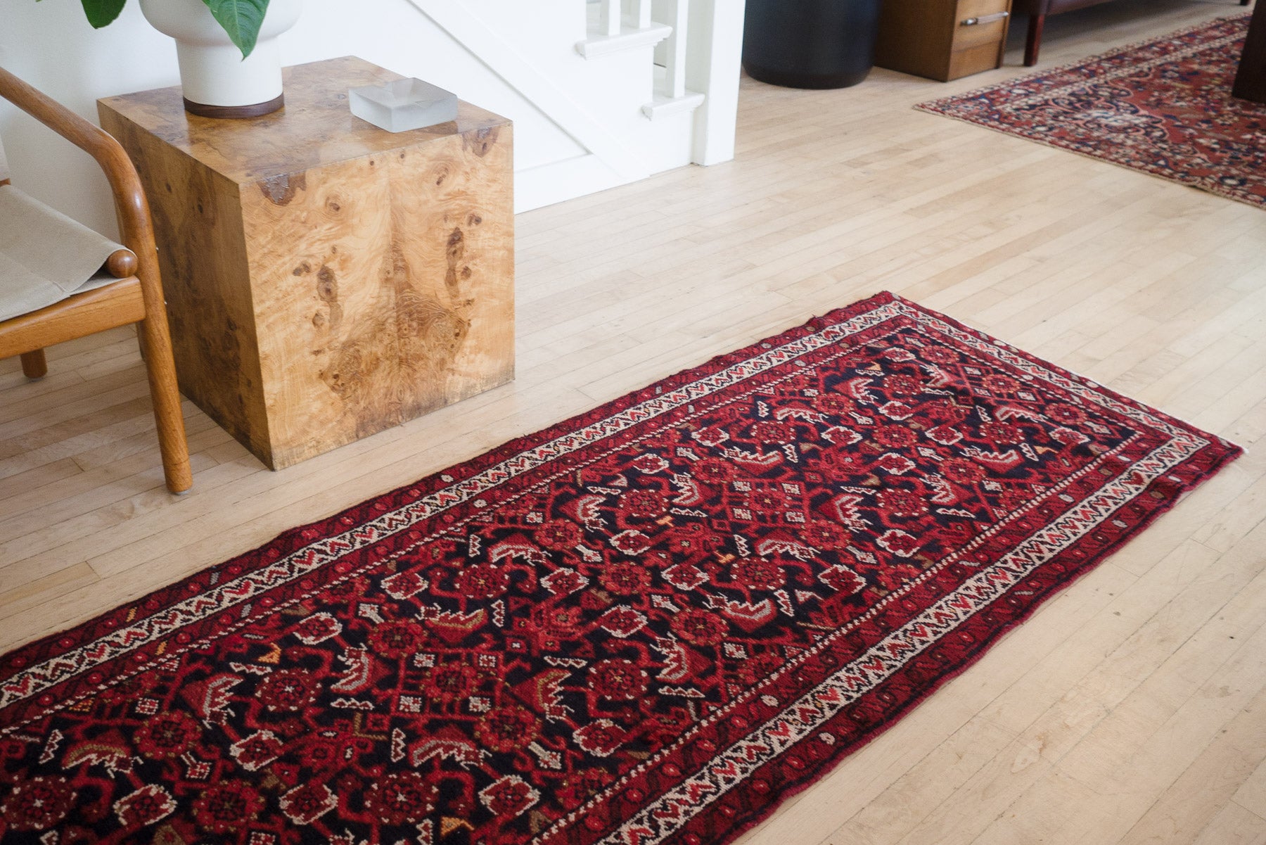 name: Saedorigin: Iran (Persian)style: rug, carpet material: hand knotted woolcolors: reds, camel, pink, black, cream age: vintage condition: good, age related wear - see pictures32" x 160" (closest standard rug size is 2.5x13.5)Free domestic shipping on all rugs.Contact us for an international shipping quote.