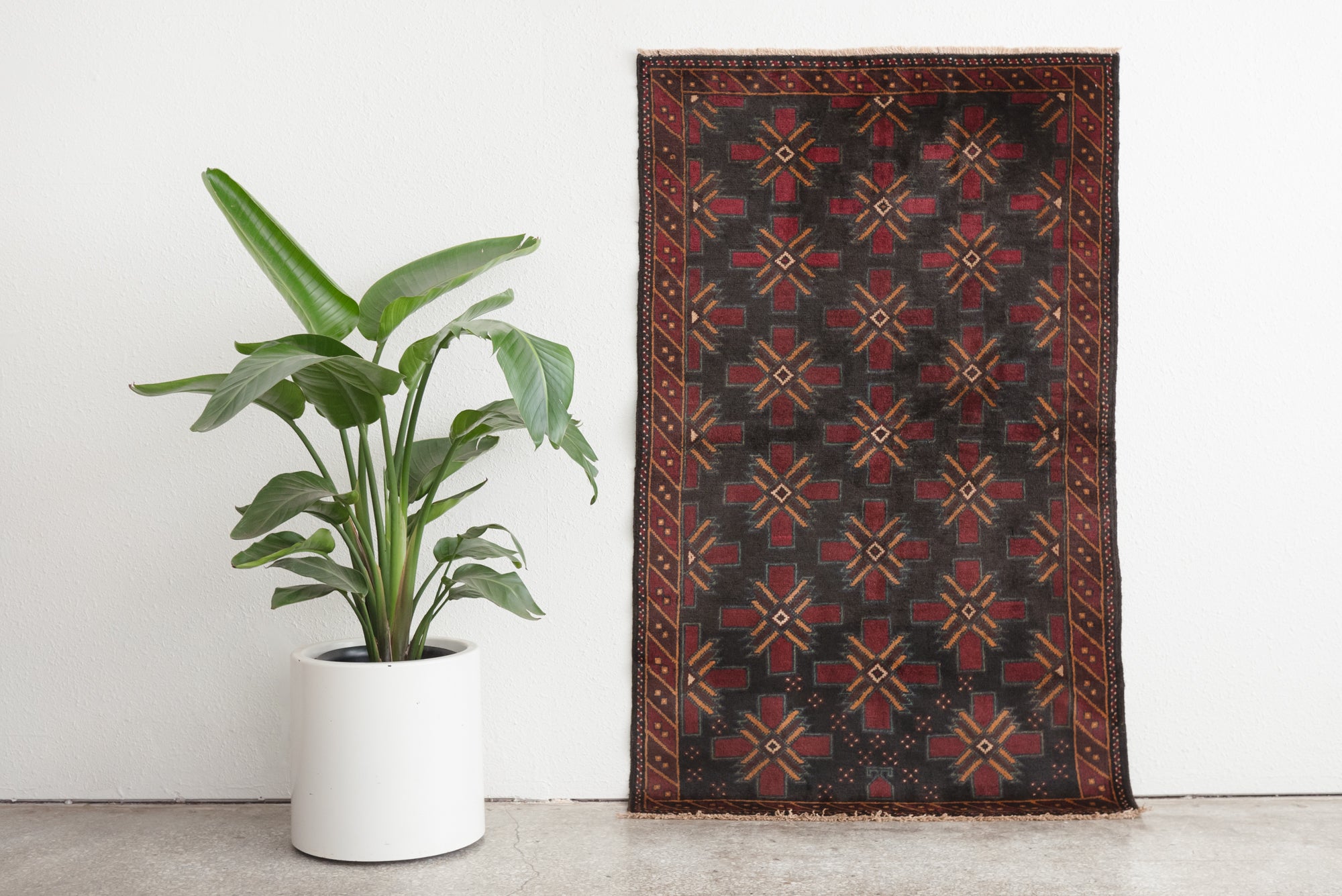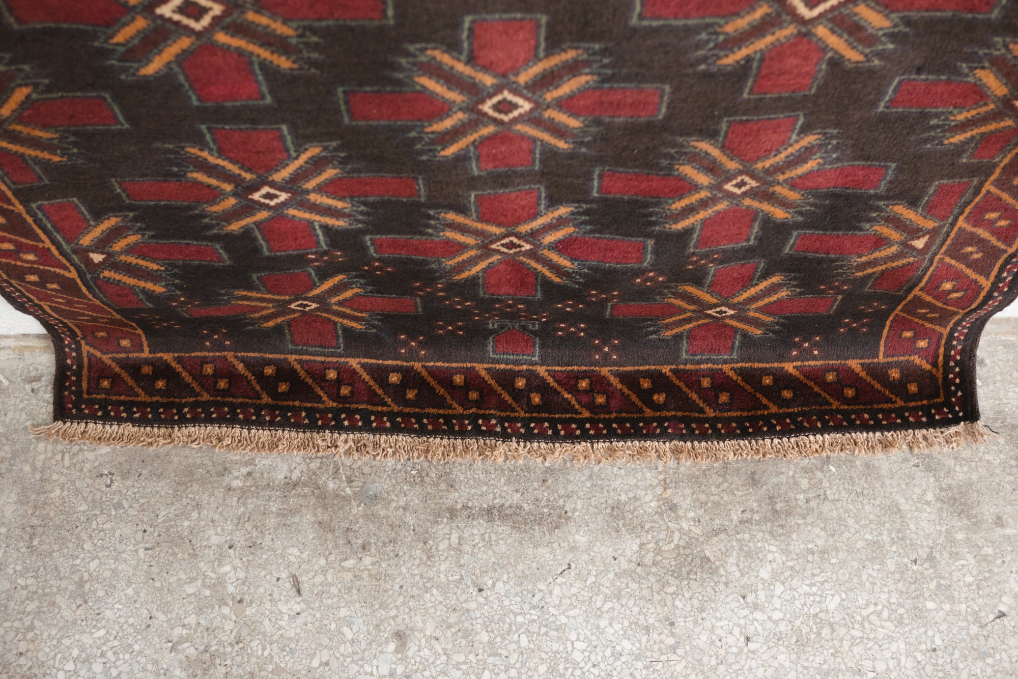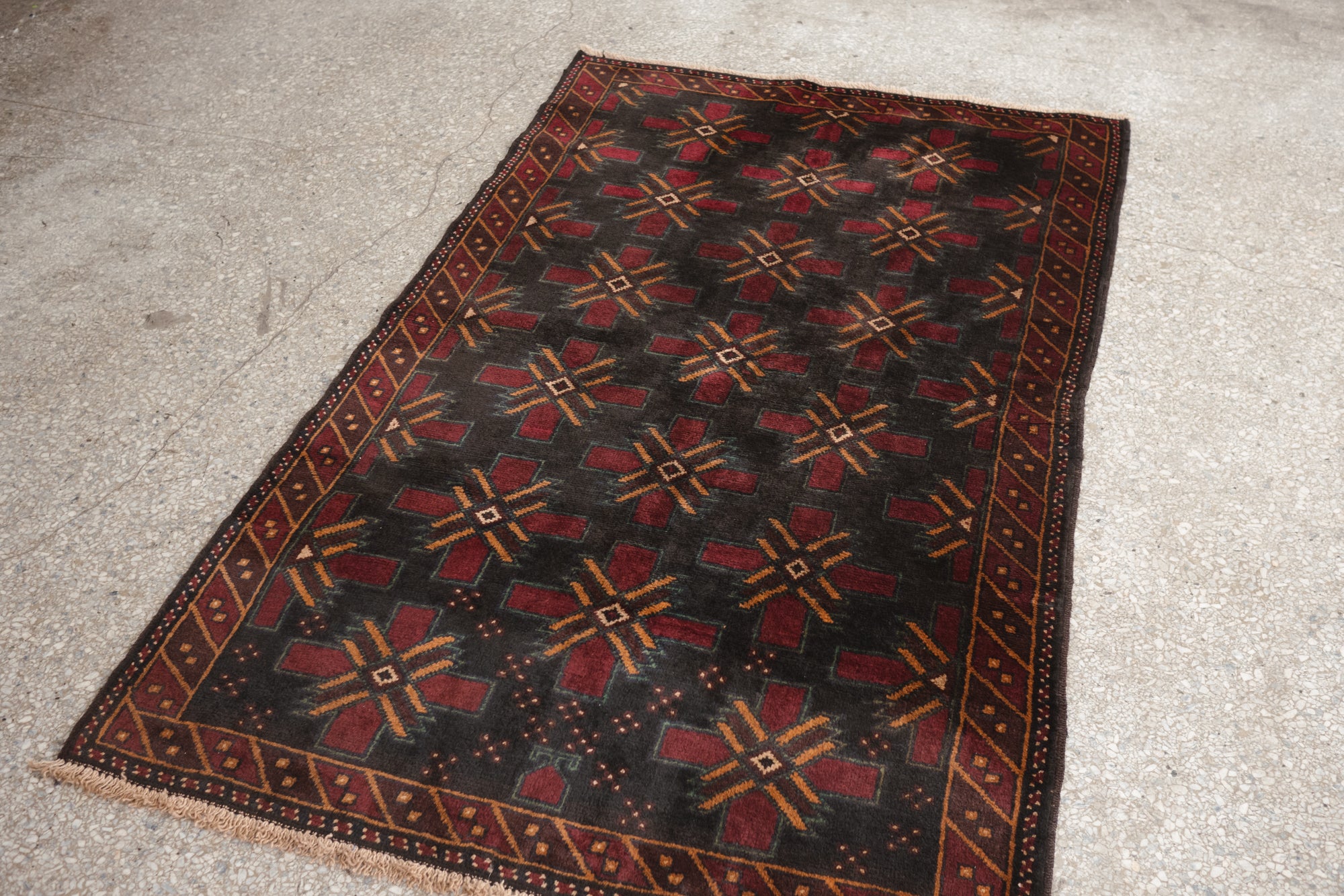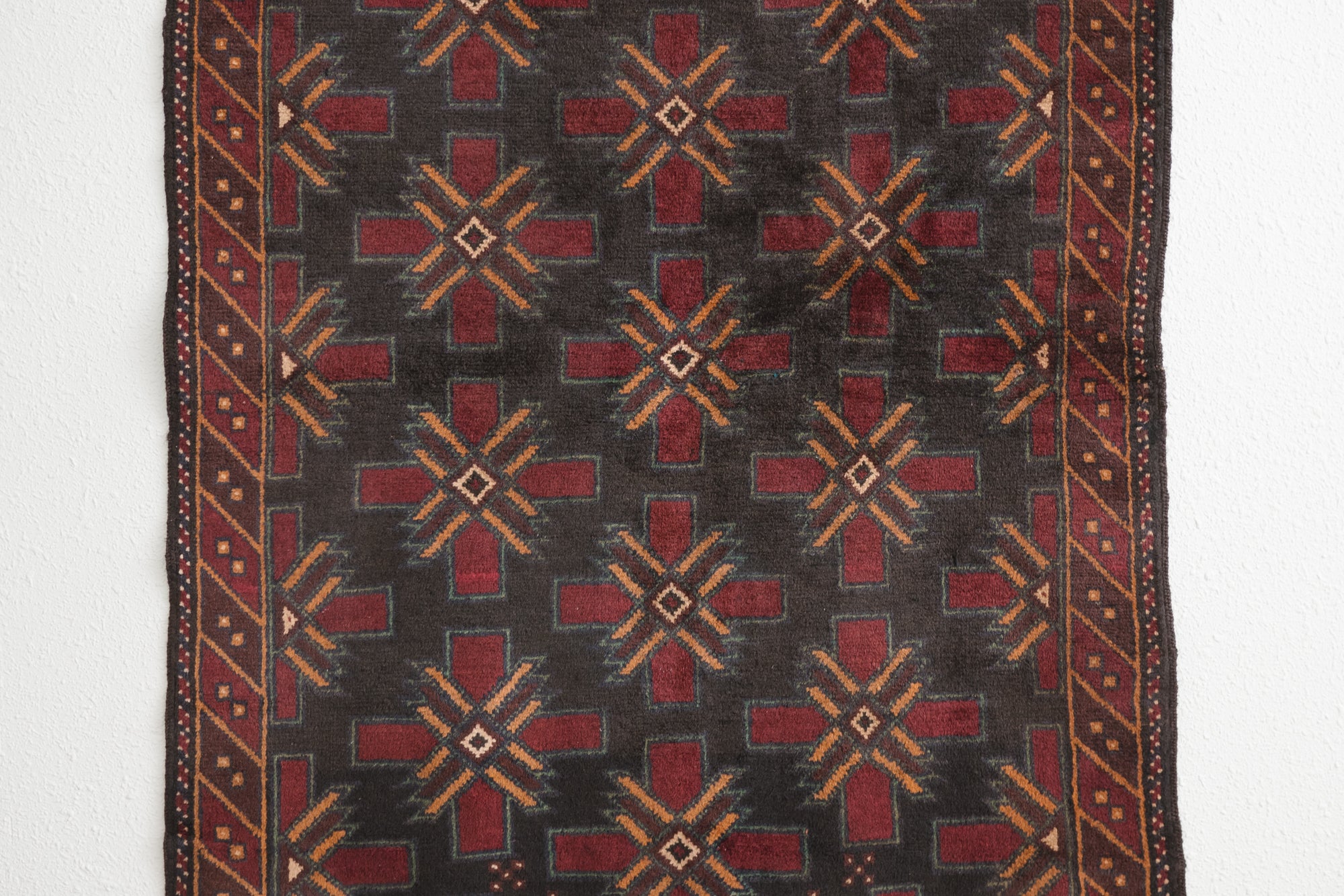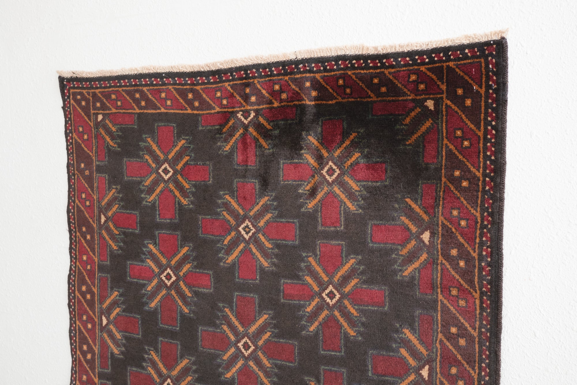 name: Lakhtastyle: hand knotted, Afghan, Bahor, rug, carpetmaterial: woolcolors: red, orange, brown, cream, black, green, blueage: vintage condition: good, age related wear - see pictures