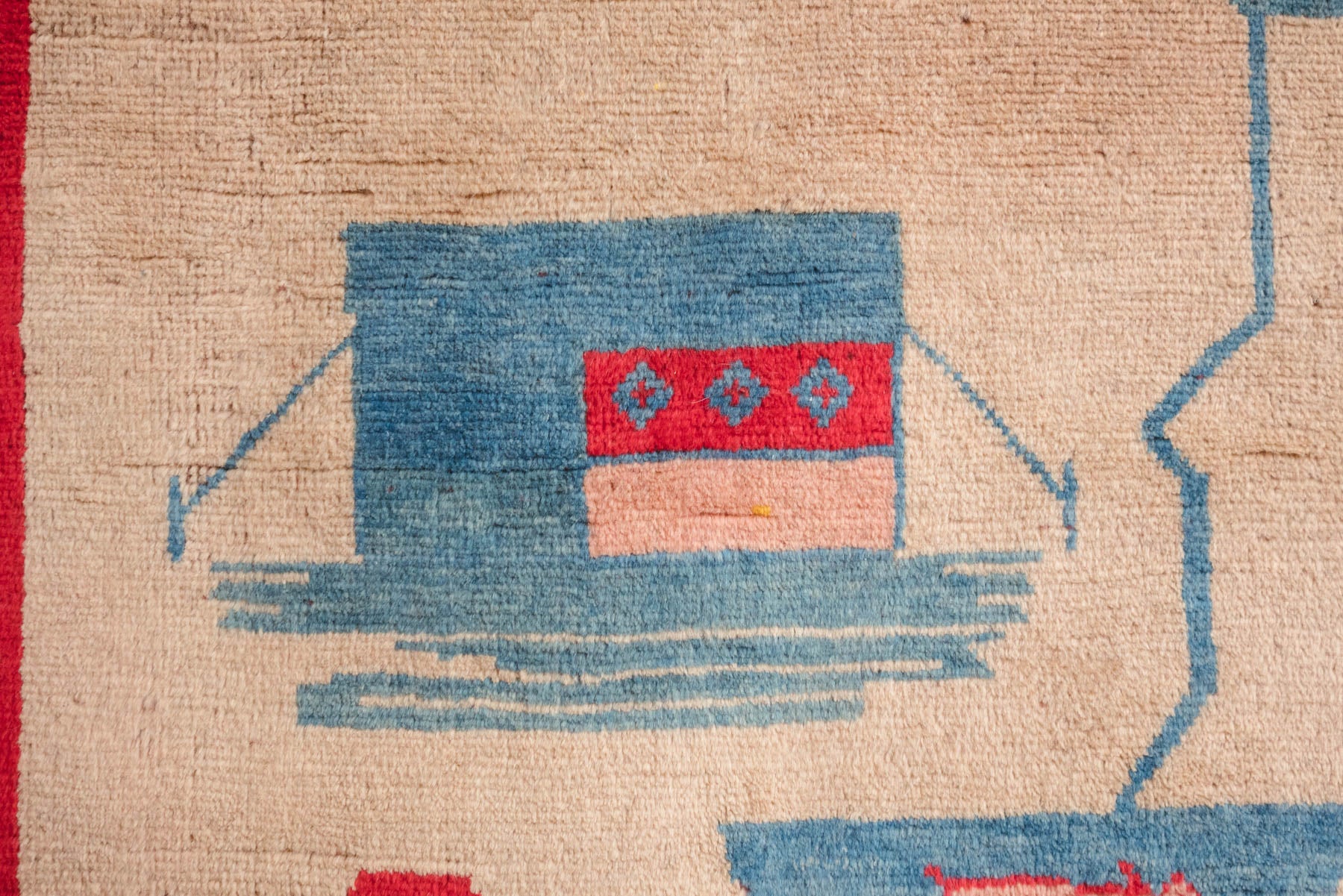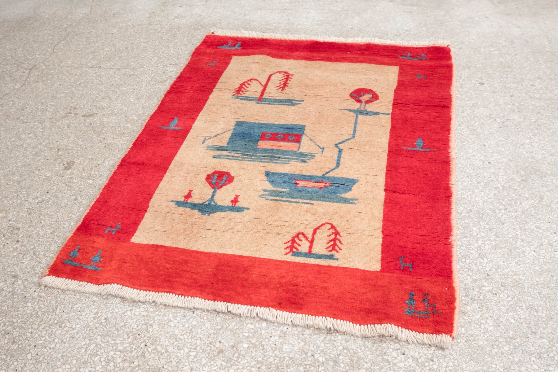 name: Enayatstyle: hand knotted, Persian, Gabbeh, story, rug, carpet material: woolcolors: red, blue, cream, tan, pinkage: vintage condition: good, age related wear - see pictures