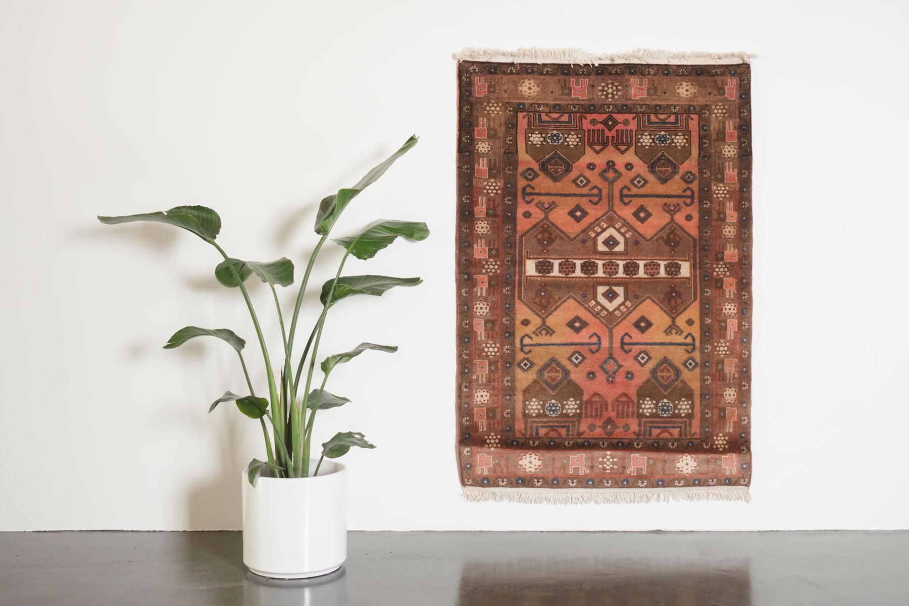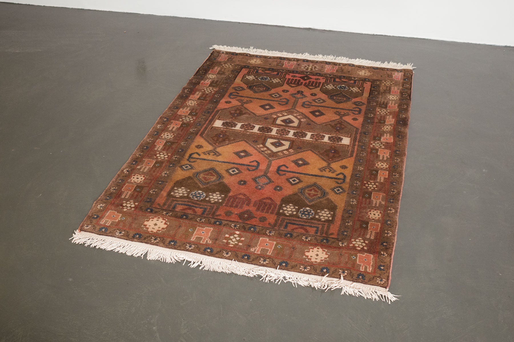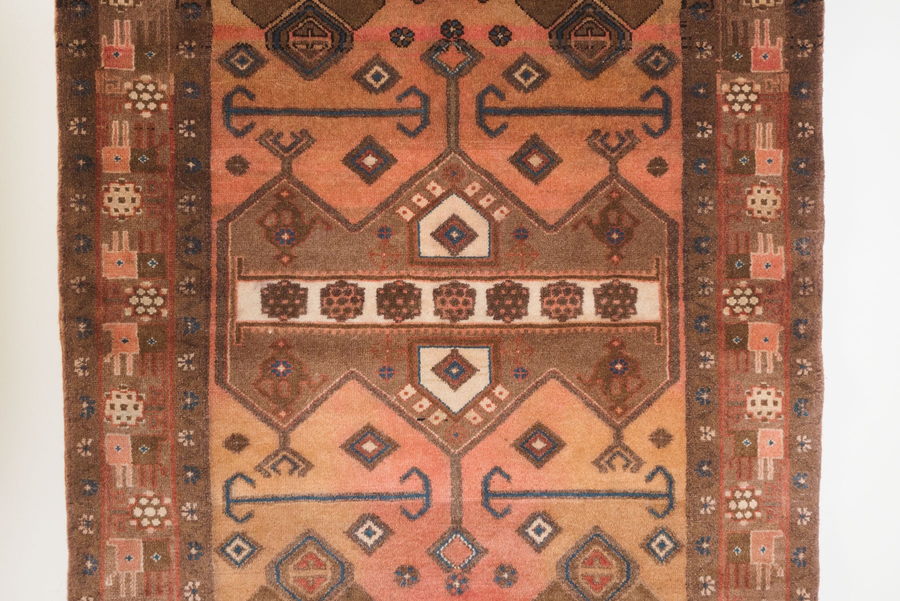 name: Jalehorigin: Iran (Persian)style: rug, carpet material: hand knotted woolcolors: pink, blue, orange, camel, brown, creamage: vintage condition: good, age related wear - see pictures