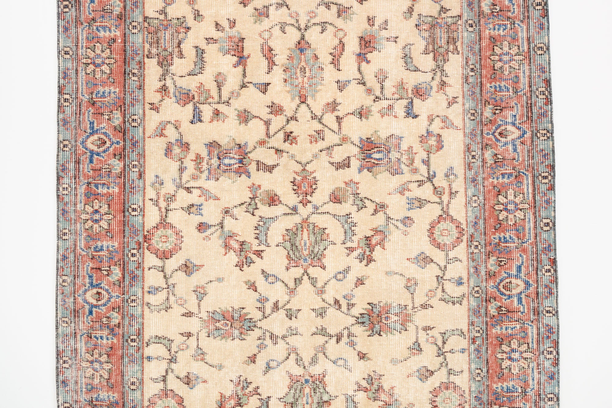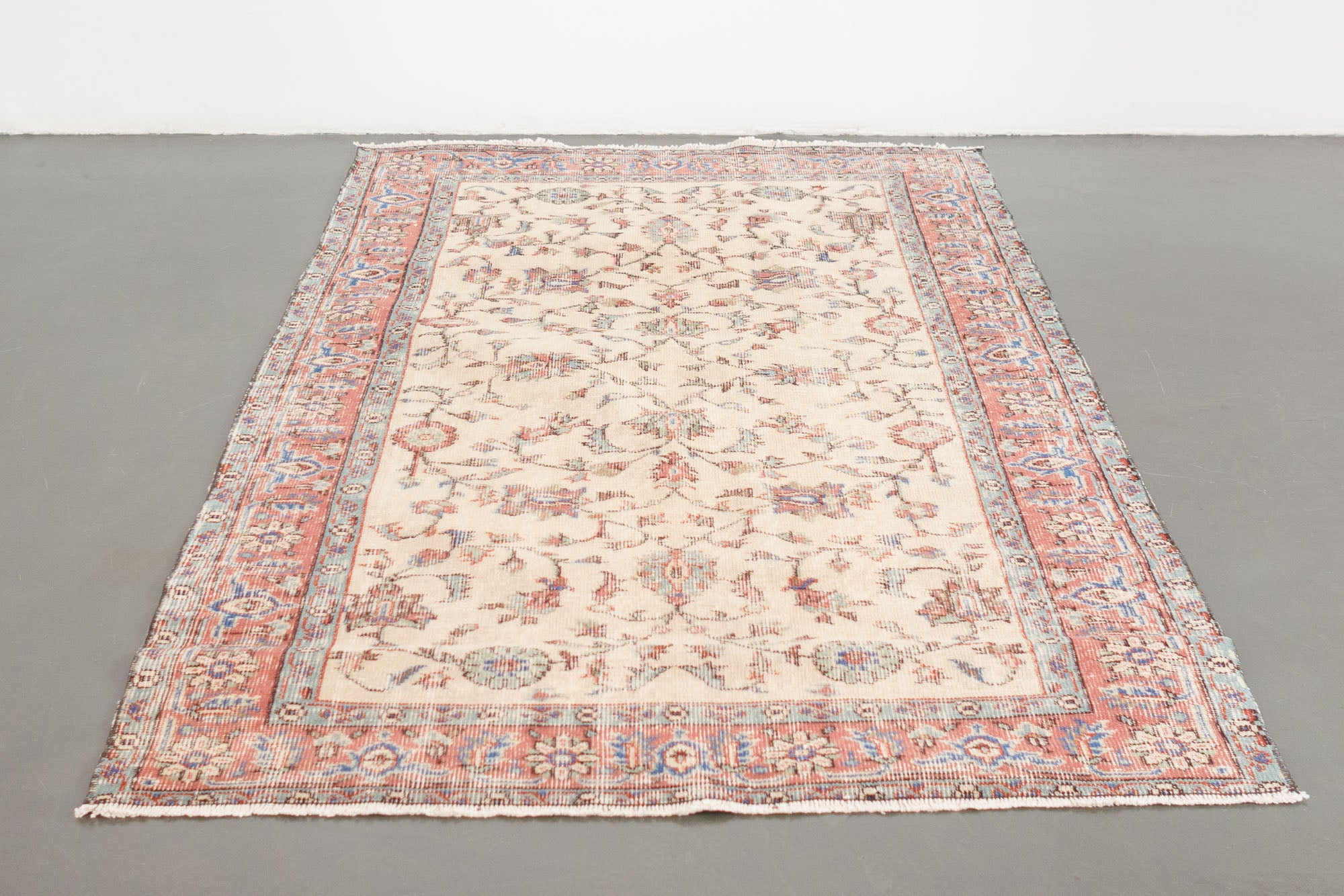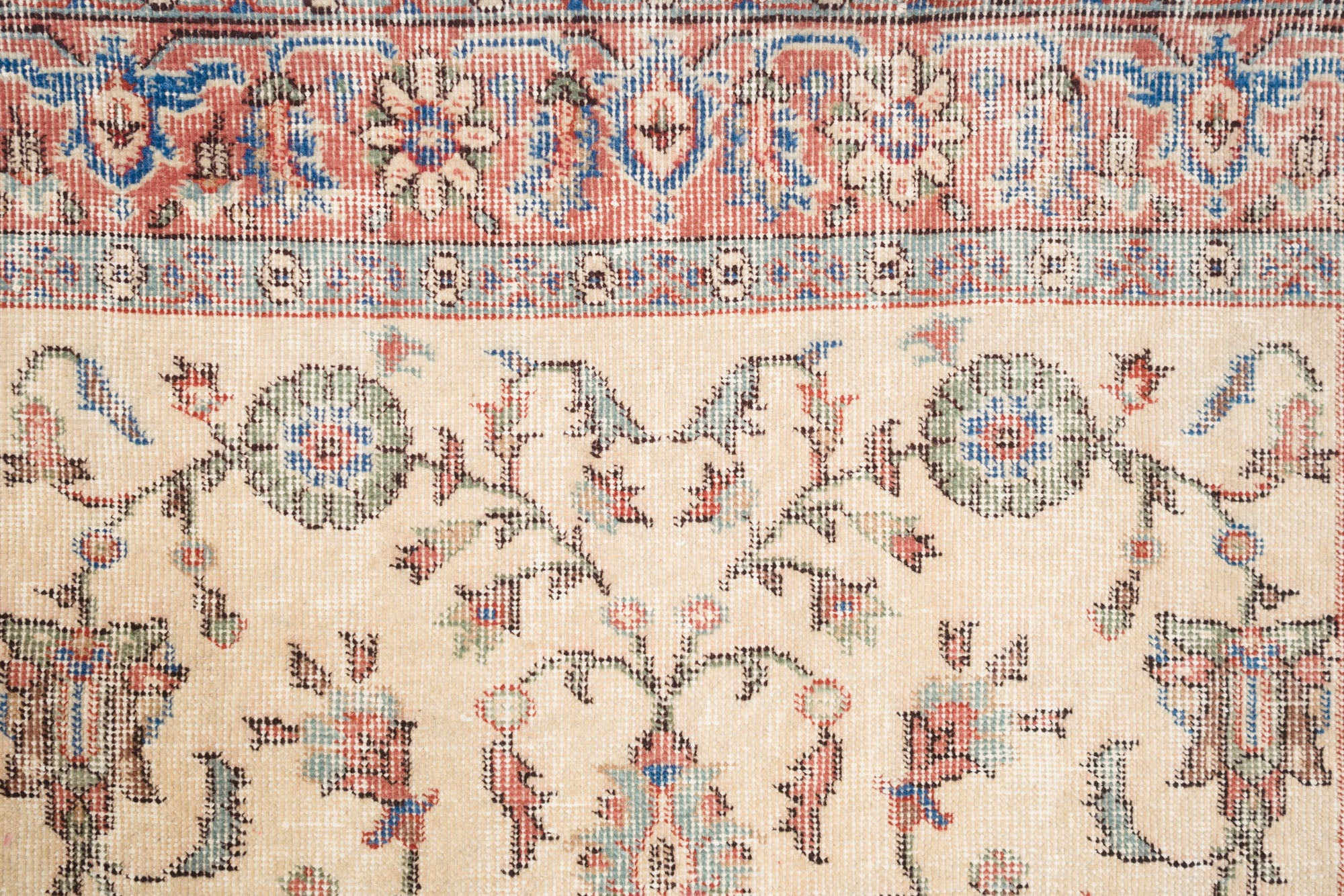 name: Bilgiorigin: Turkeystyle: melis, rug, carpetmaterial: hand knotted woolcolors: cream, pink, green, blue, brownage: vintage, 1940-1970condition: good, age related wear - see picturesappraised value: $1080sku: t-383