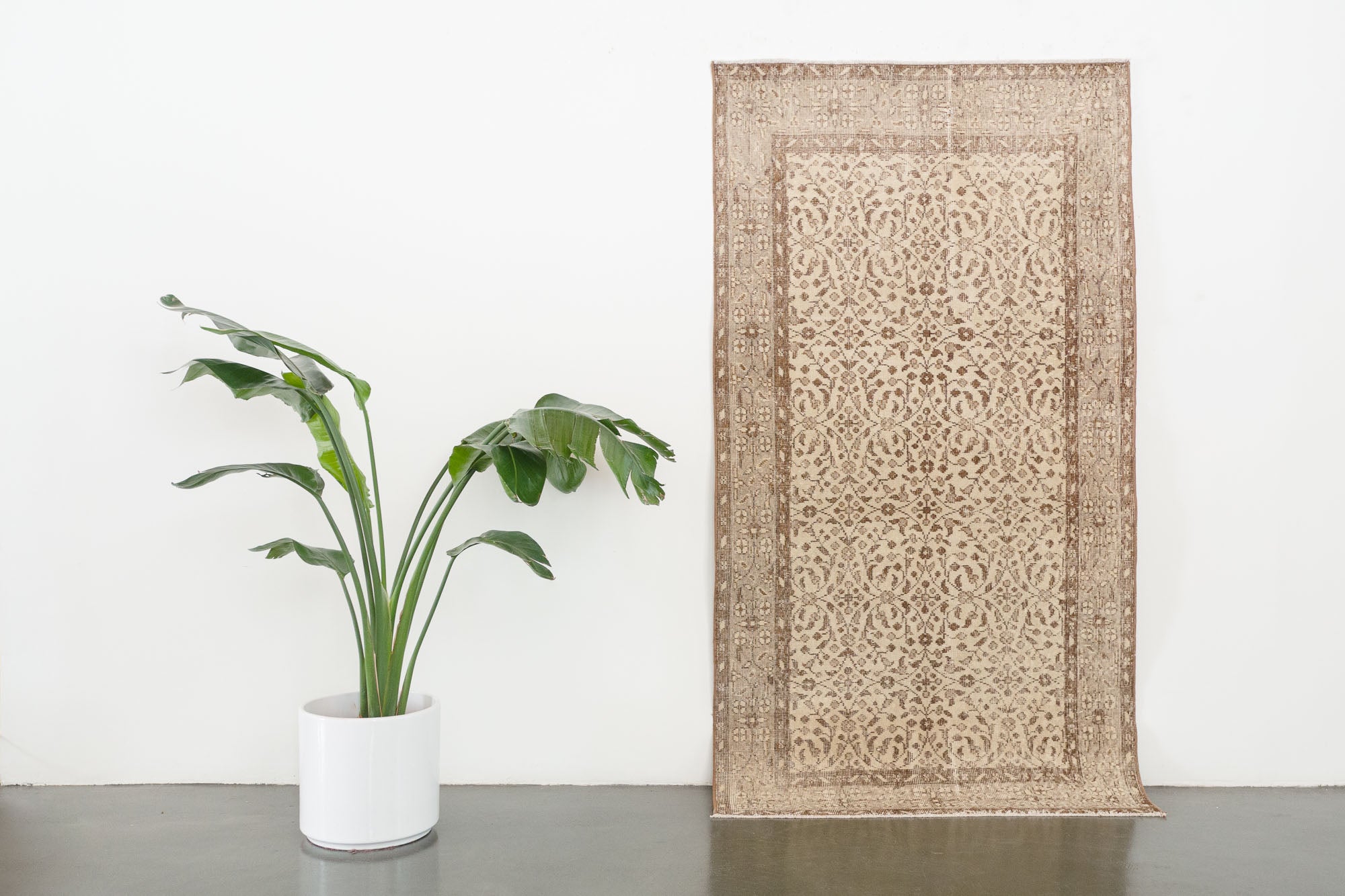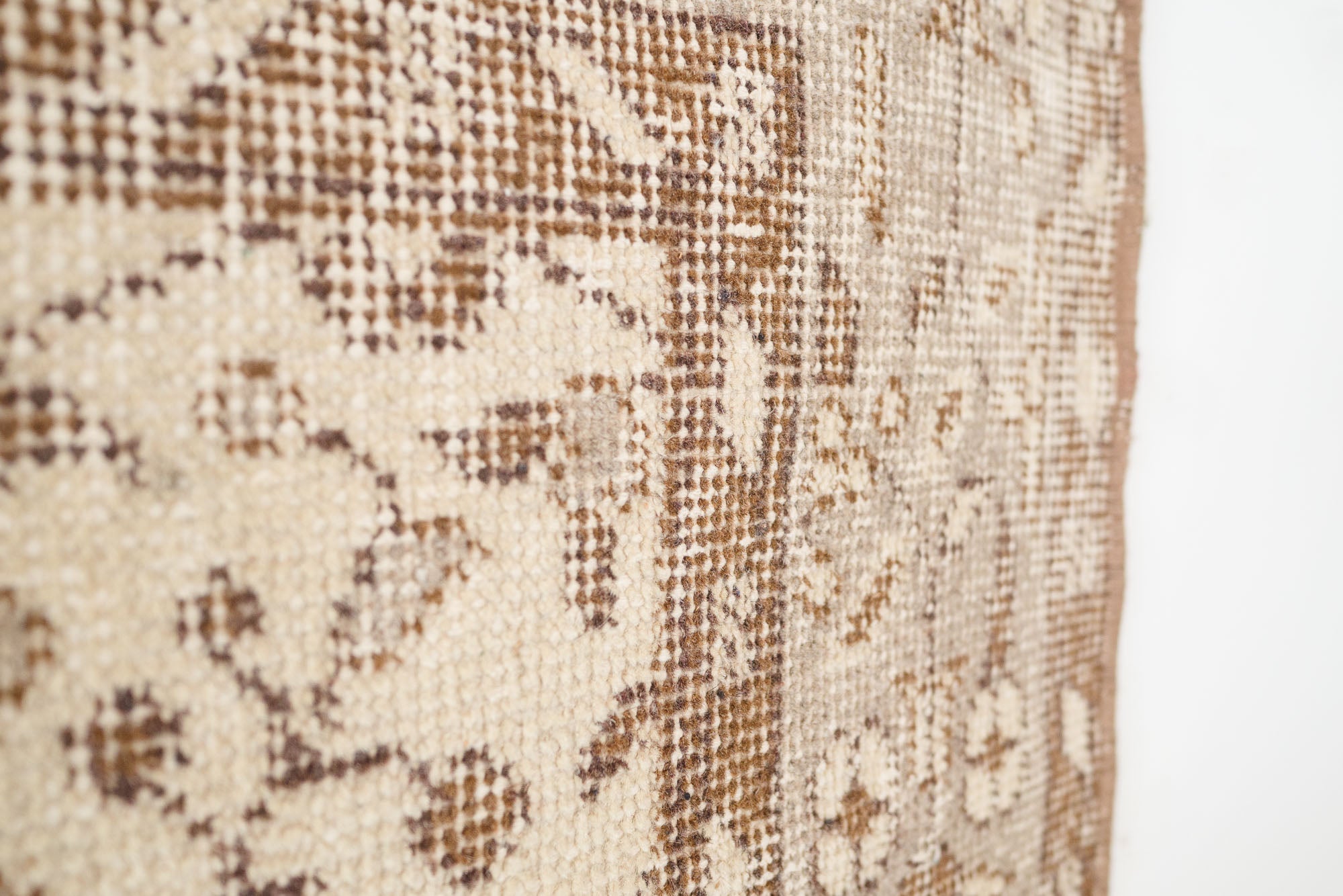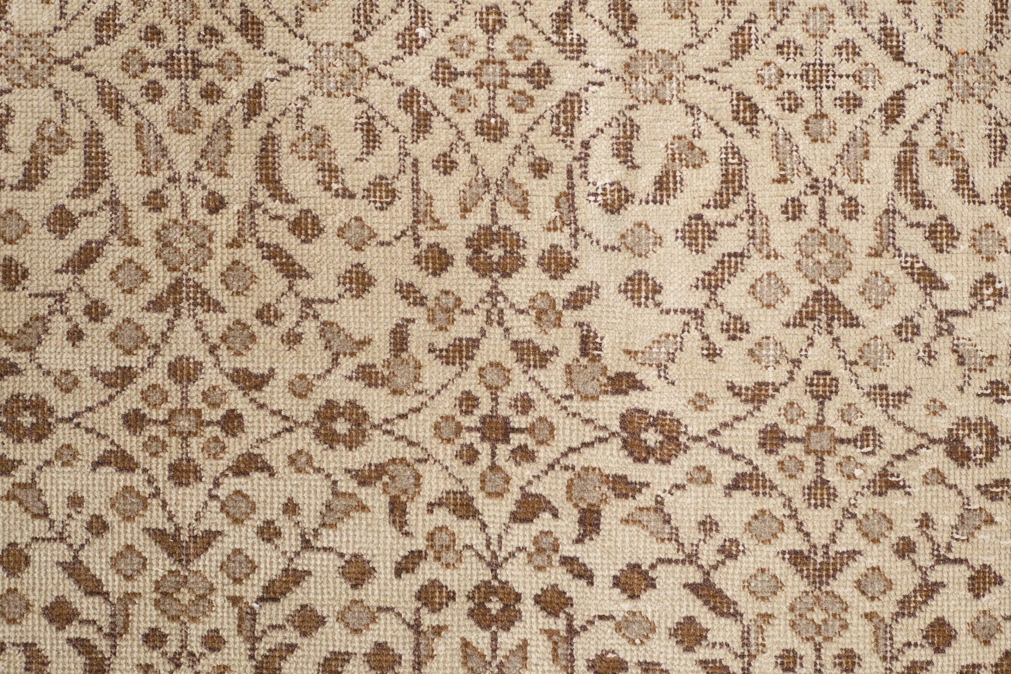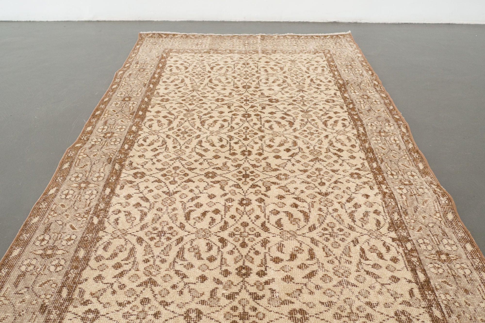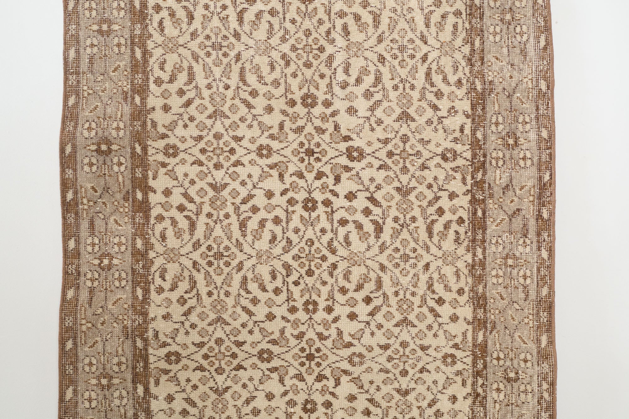 name: Dilmacorigin: Turkeystyle: keisari, rug, carpetmaterial: hand knotted woolcolors: cream, tan, brown, grayage: vintage, 1940-1970condition: good, age related wear - see picturesappraised value: $876sku: t-406