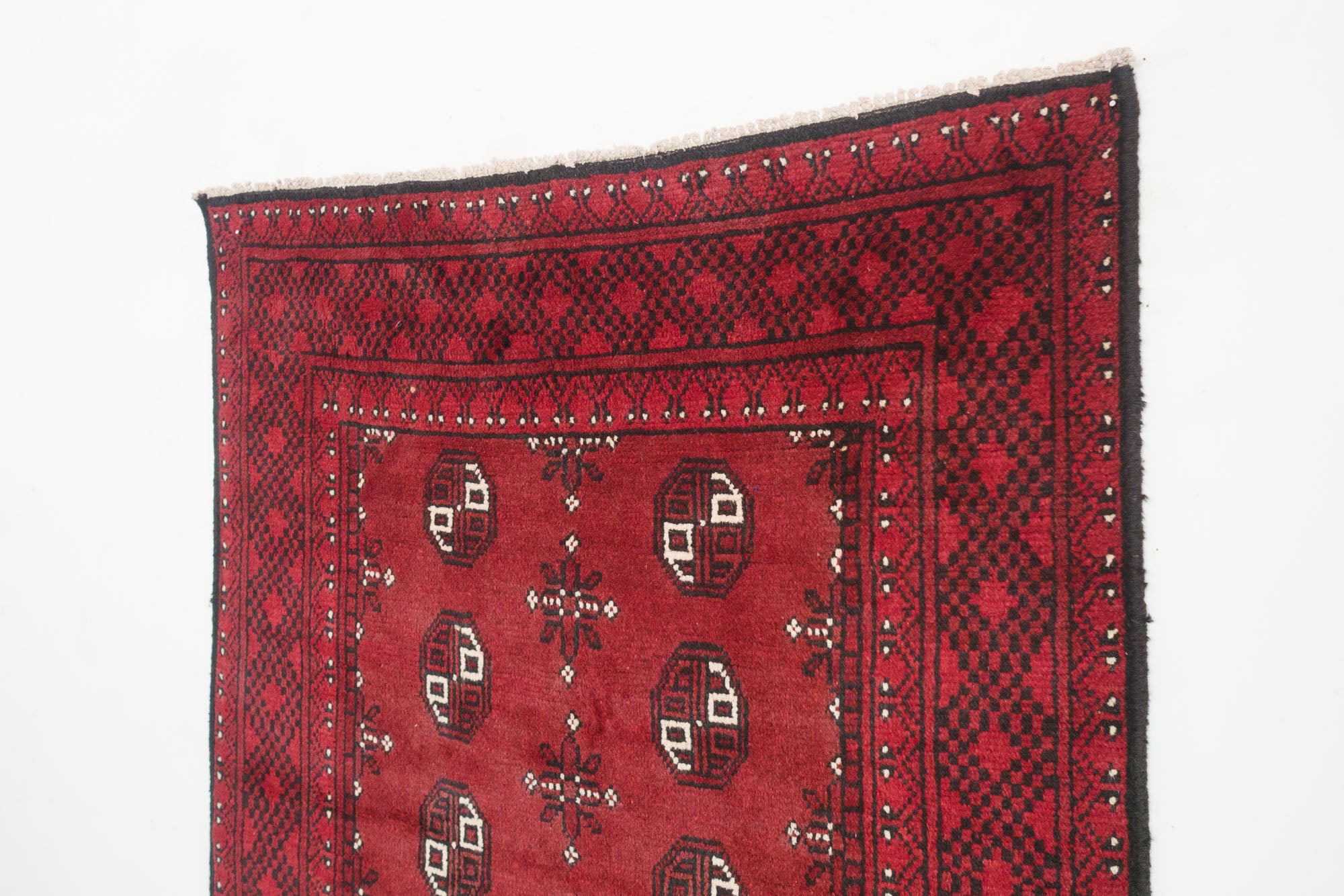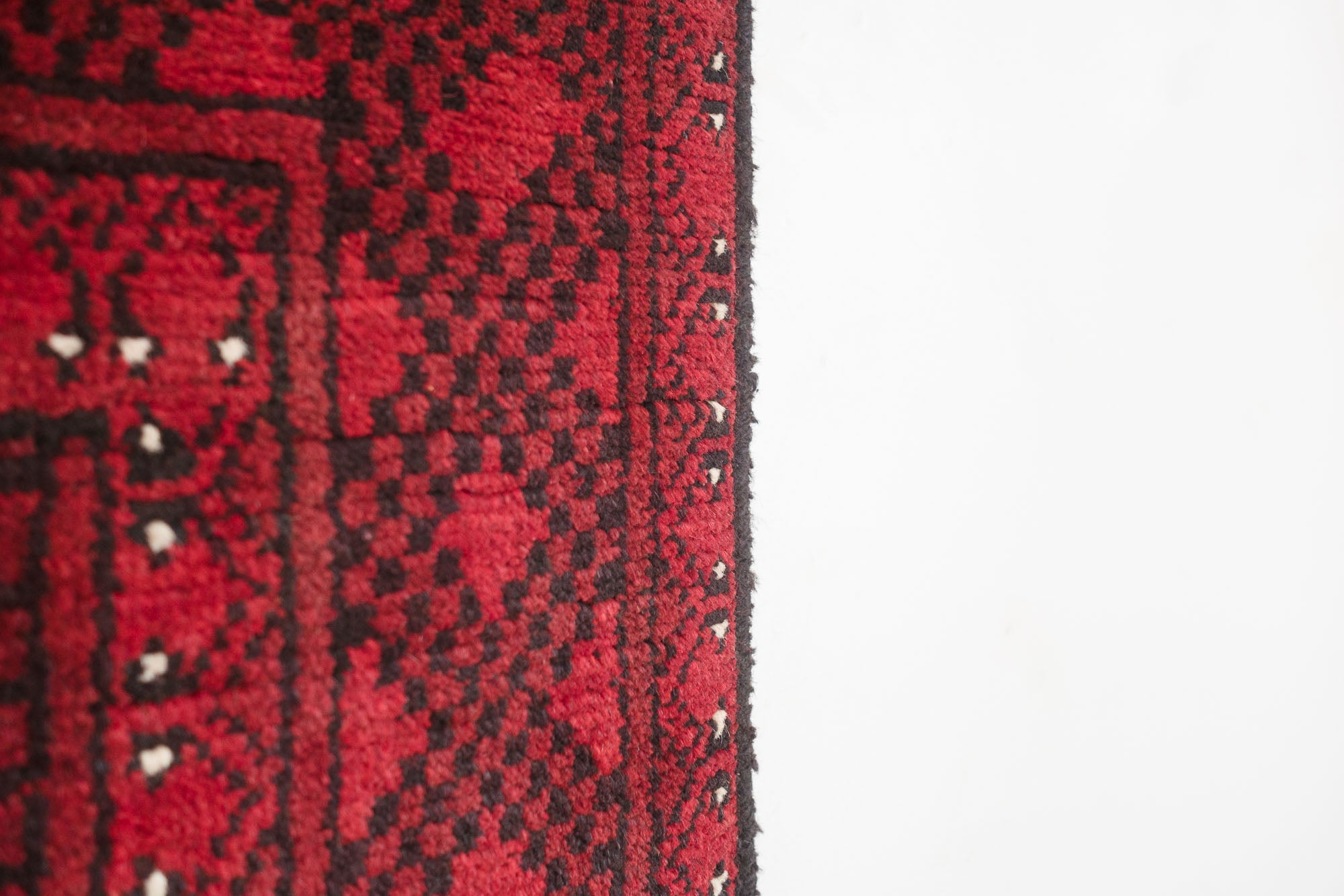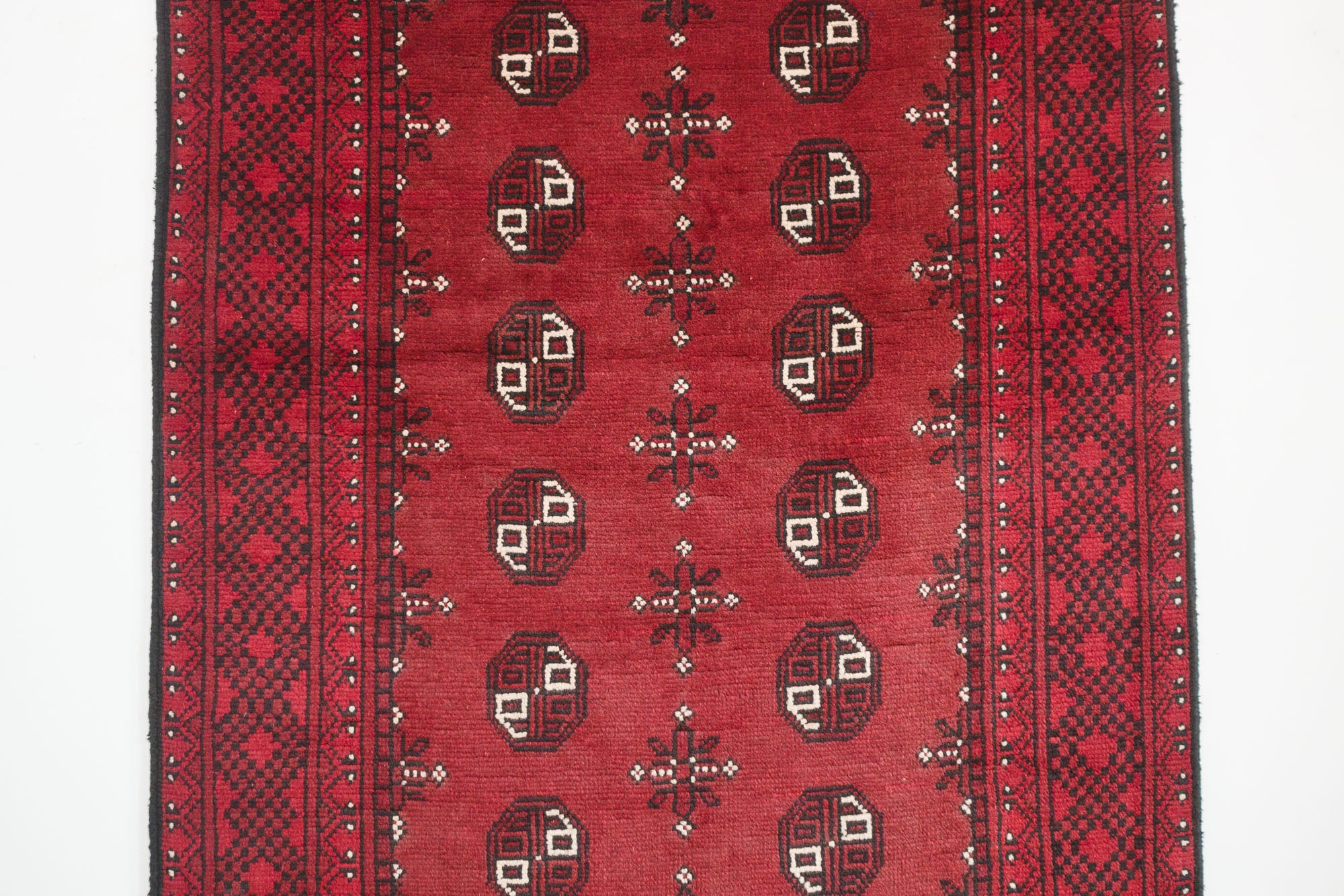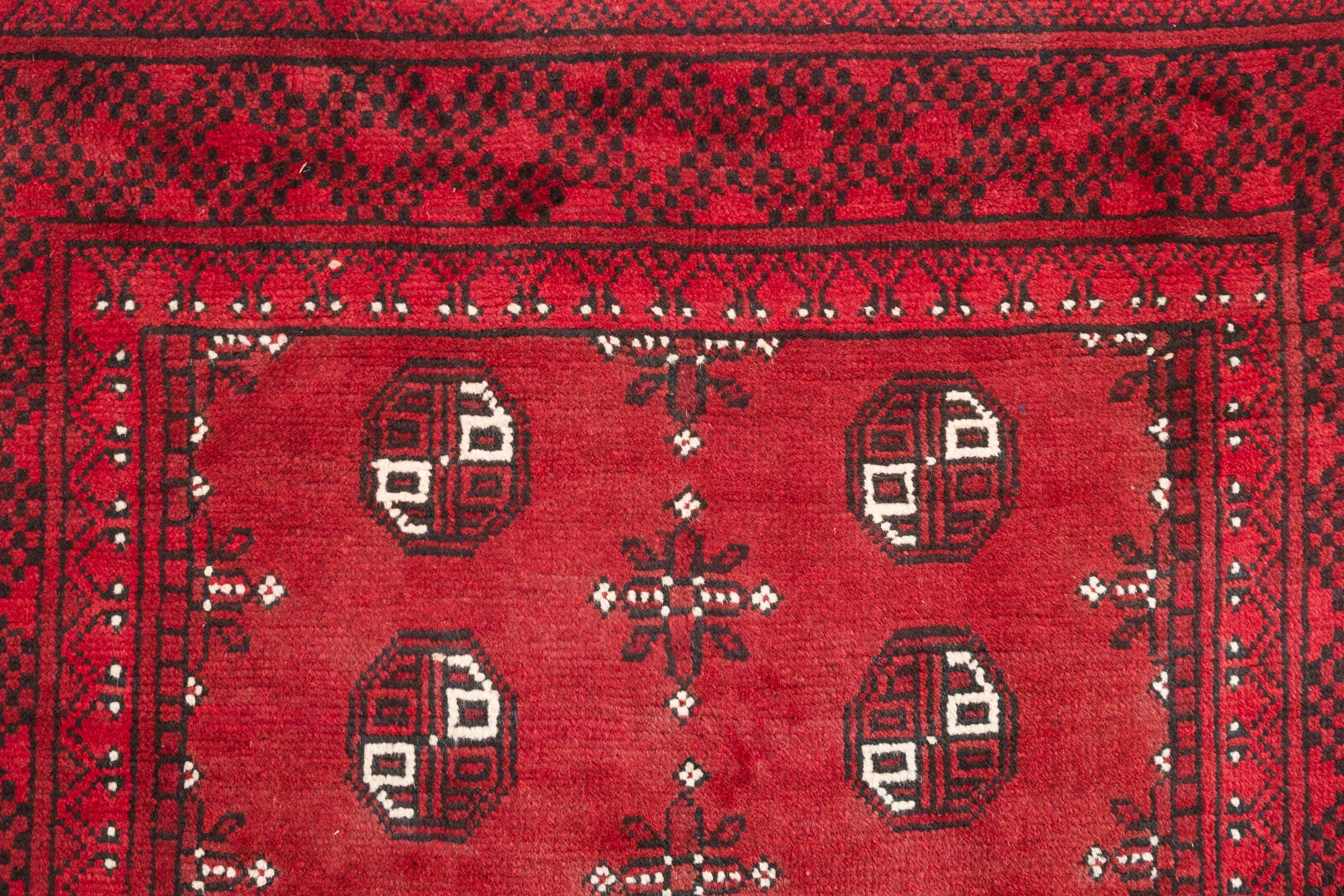 name: Noshafarinorigin: Afghanistanstyle: rug, carpetmaterial: hand knotted woolcolors: red, black, creamage: vintage, 1940-1969condition: good, age related wear - see picturesappraised value: $792