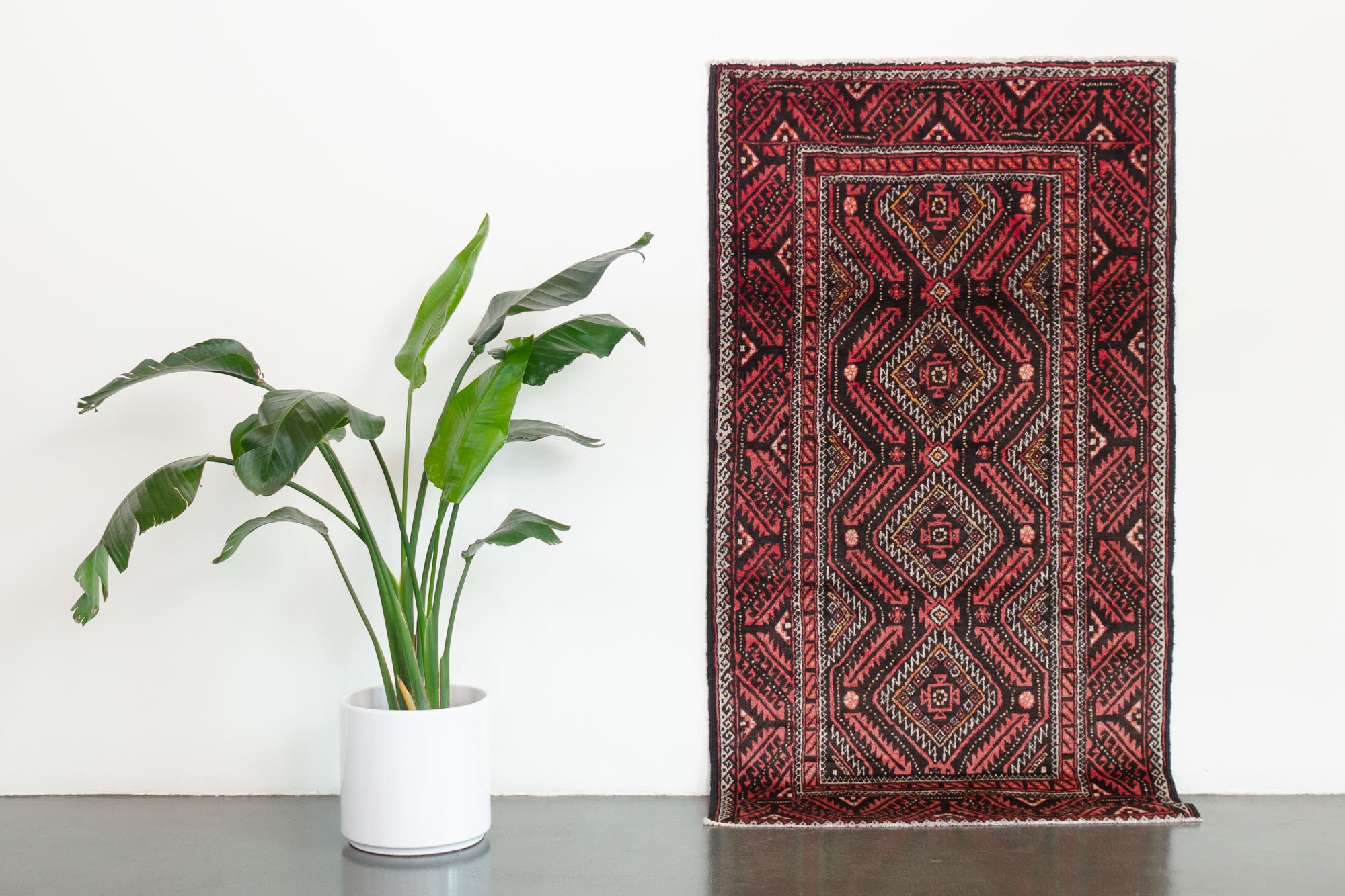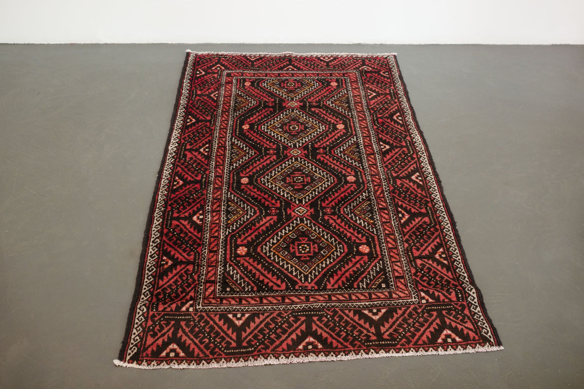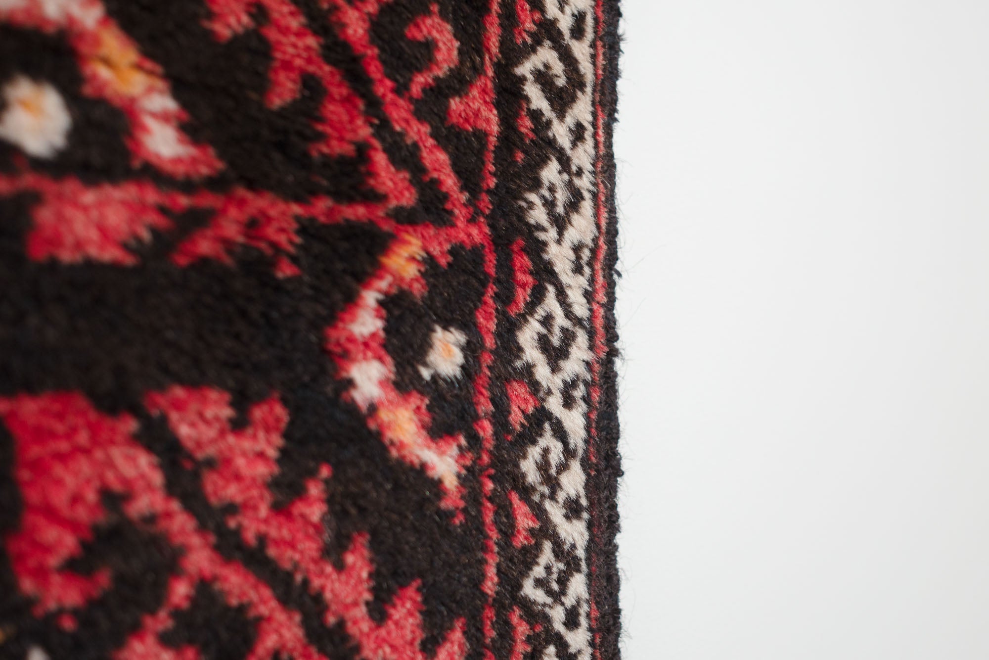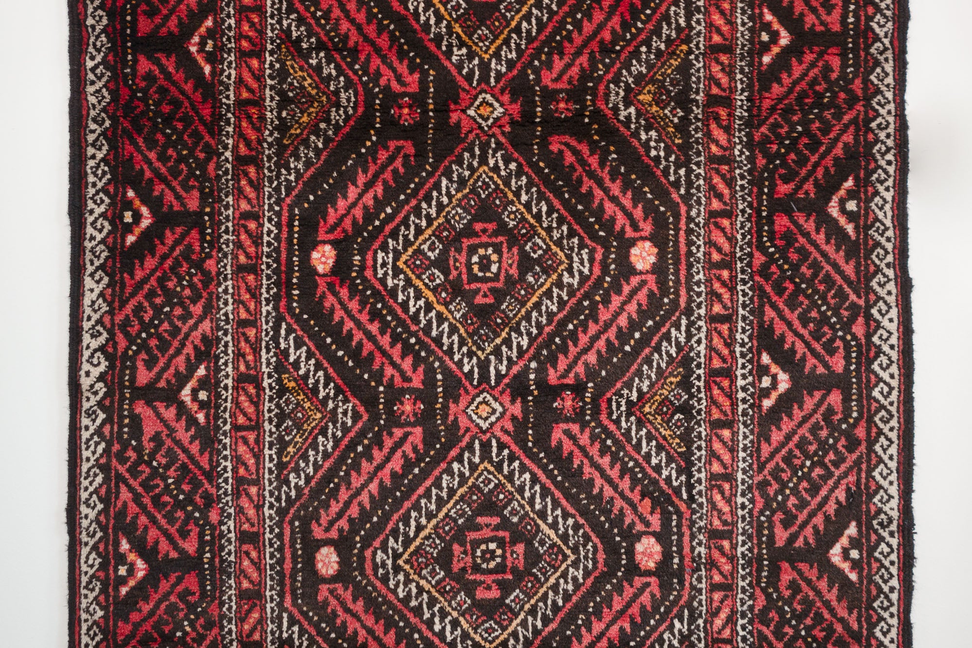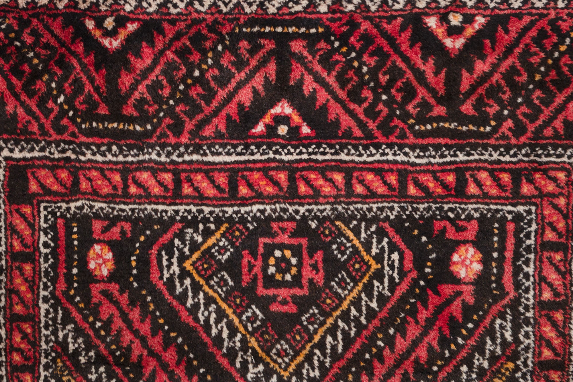 name: Taheriorigin: Iran (Persian)style: baluch, rug, carpetmaterial: hand knotted woolcolors: black, red, cream, yellowage: vintage, 1940-1970condition: good, age related wear - see picturesappraised value: $820sku: p-1107