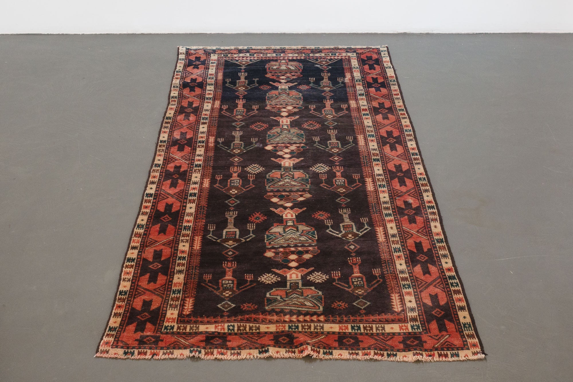 name: Payamorigin: Iran (Persian)style: rug, carpetmaterial: hand knotted woolcolors: black, brown, red, teal, creamage: vintage, 1940-1970condition: good, age related wear - see picturessku: p-021