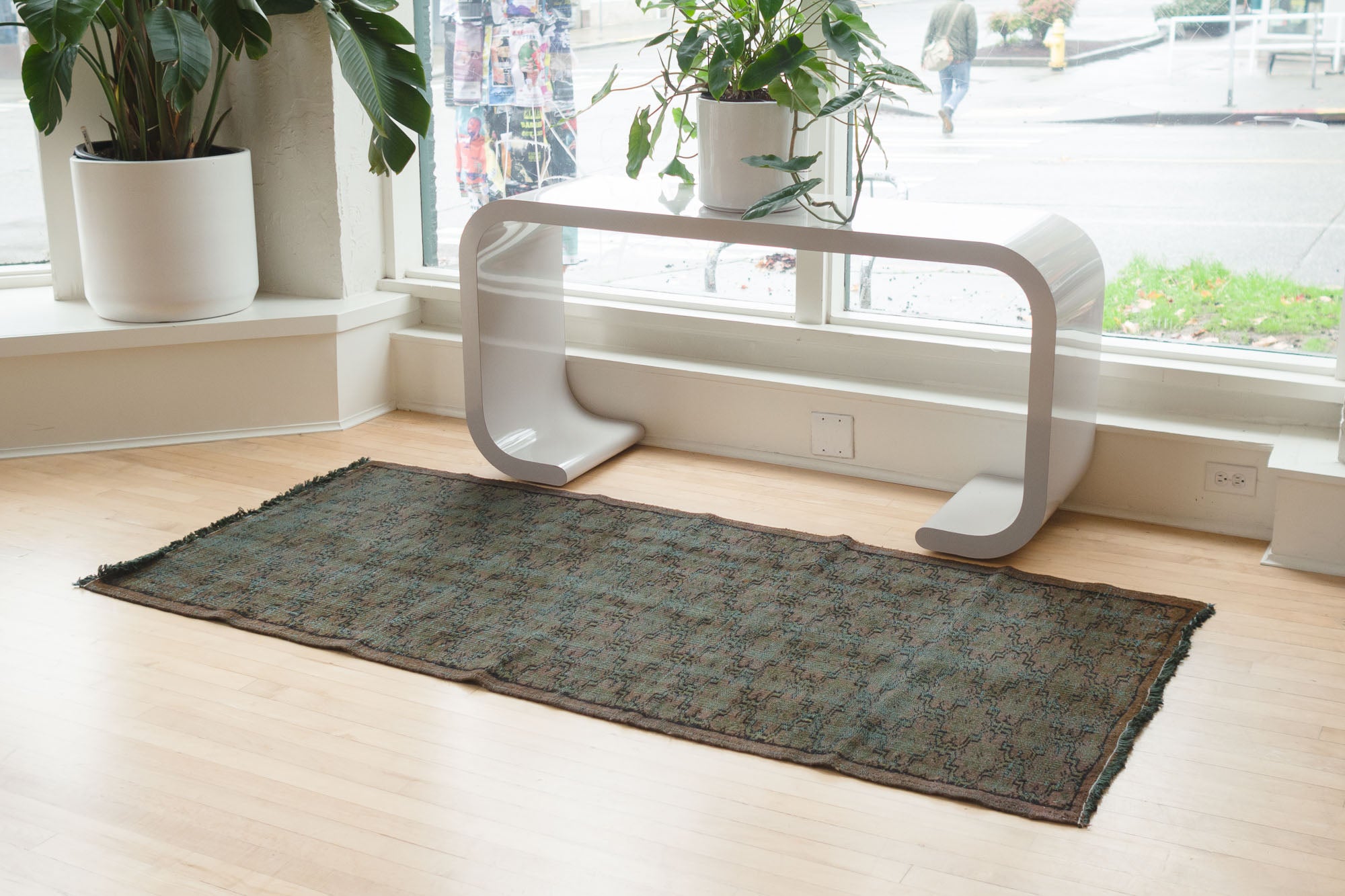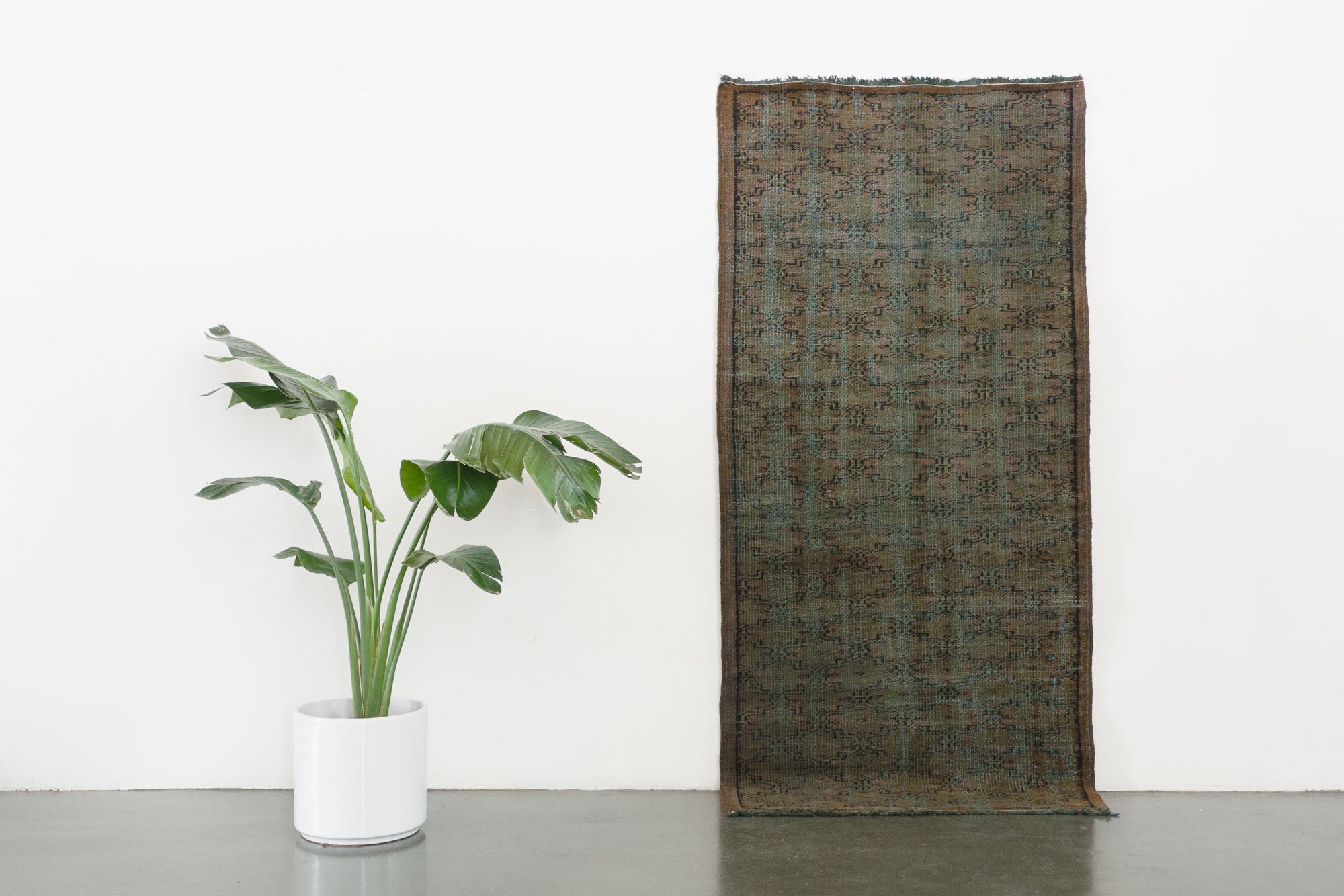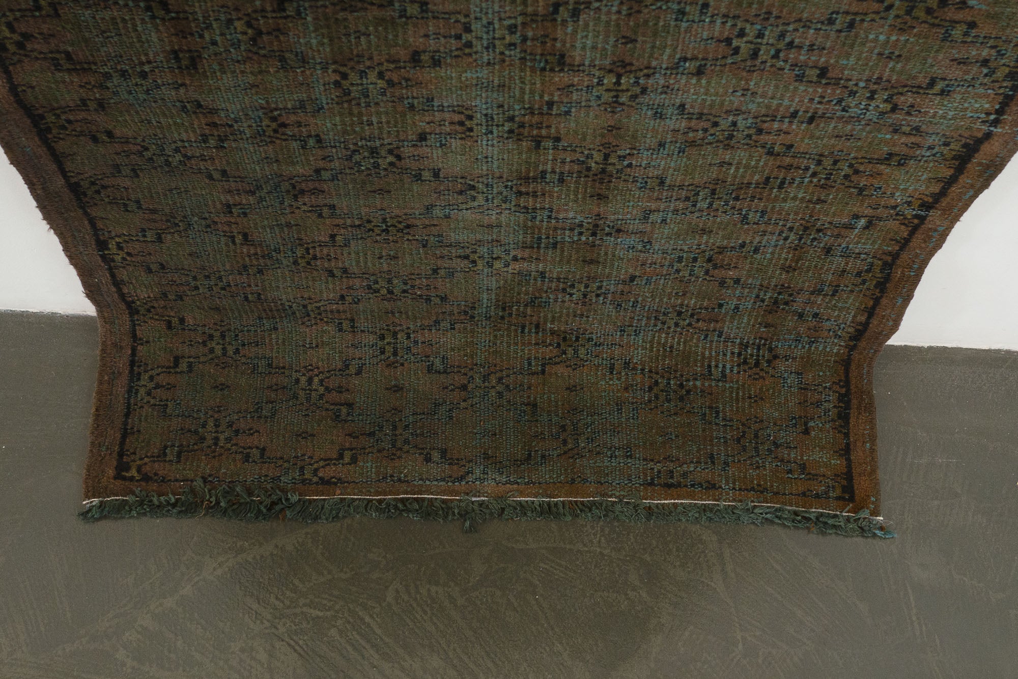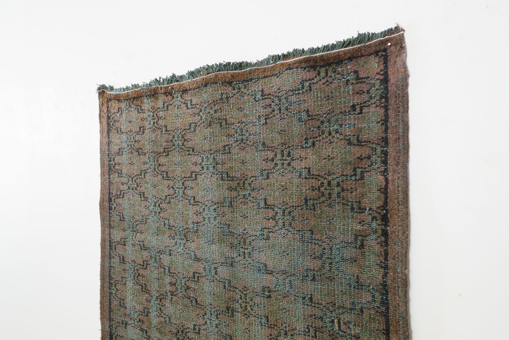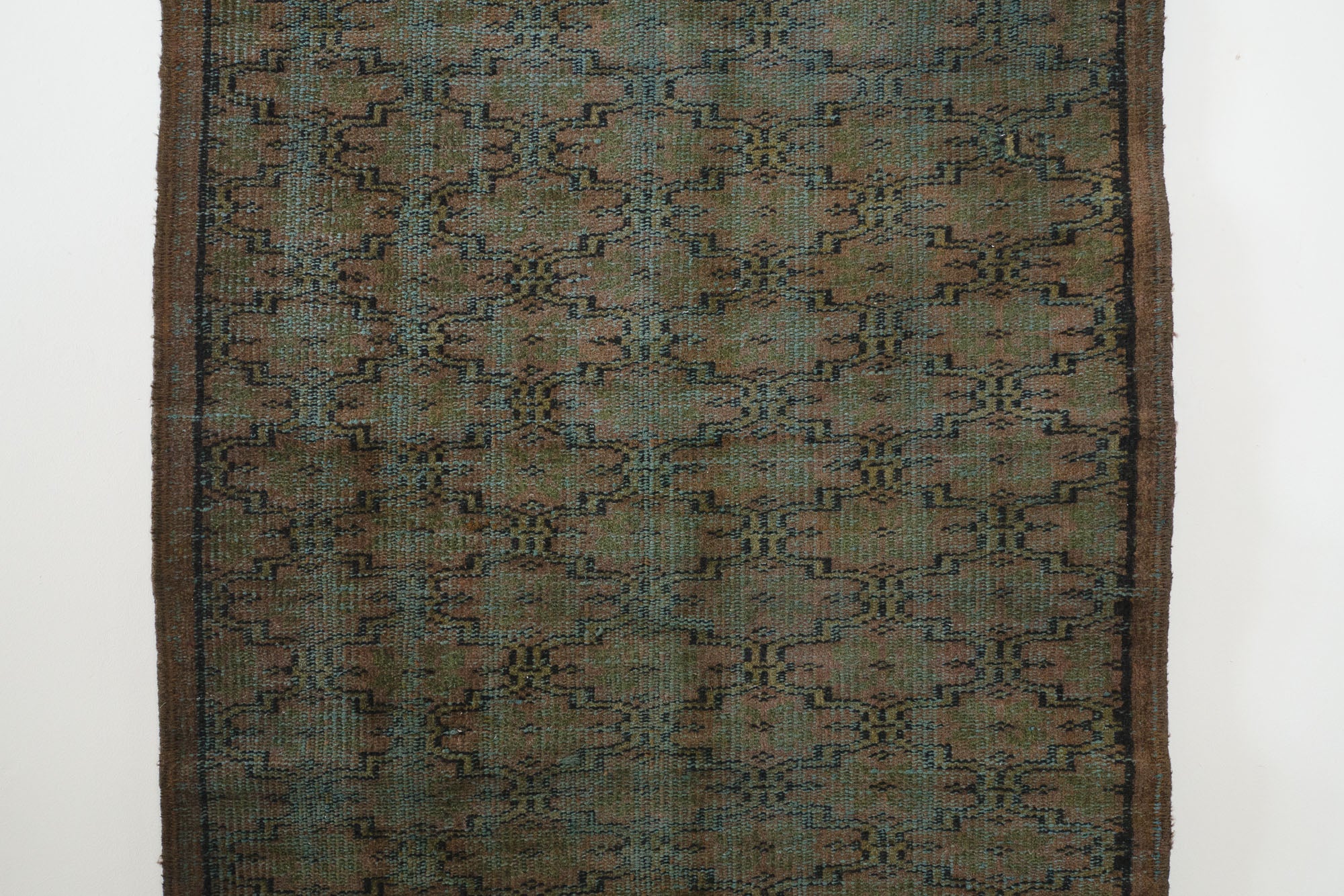 name: Sacanorigin: Turkeystyle: overdye, rug, carpetmaterial: hand woven woolcolors: black, brown, blue, gray, greenage: vintage, 1940-1970condition: good, age related wear - see picturesappraised value: $924sku: t-395