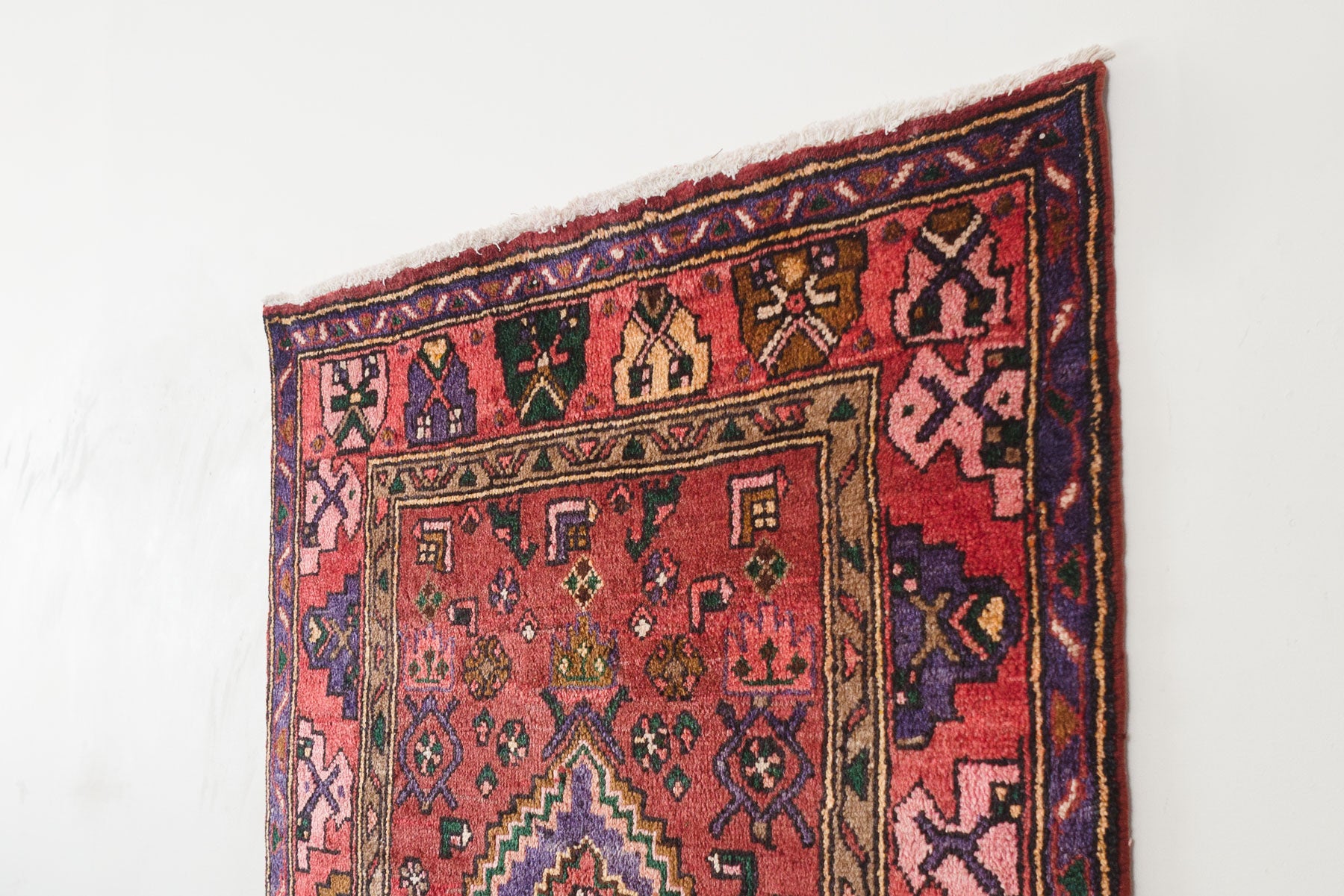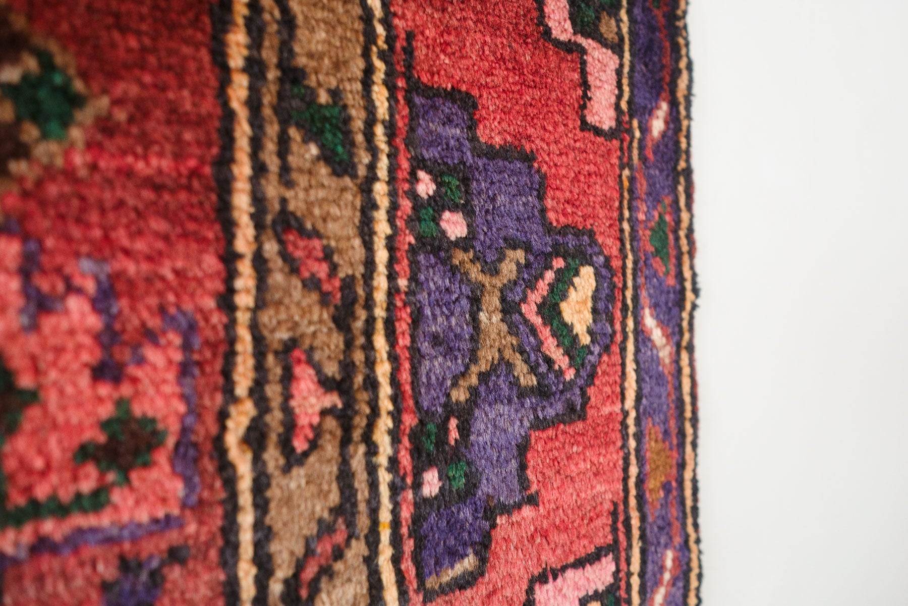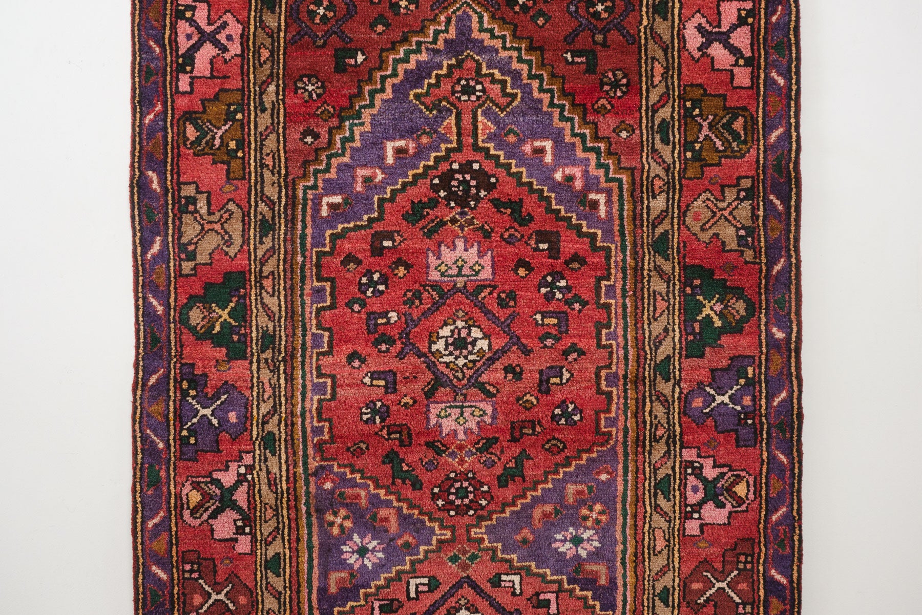 name: Raouforigin: Iran (Persian), Asadabadstyle: rug, runner, carpet material: hand knotted woolcolors: red, browns, green, violet, yellow, pinks, cream age: vintage condition: good, age related wear - see pictures42" x 113" (closest standard rug size is 3.5x9.5)Free domestic shipping on all rugs.Contact us for an international shipping quote.