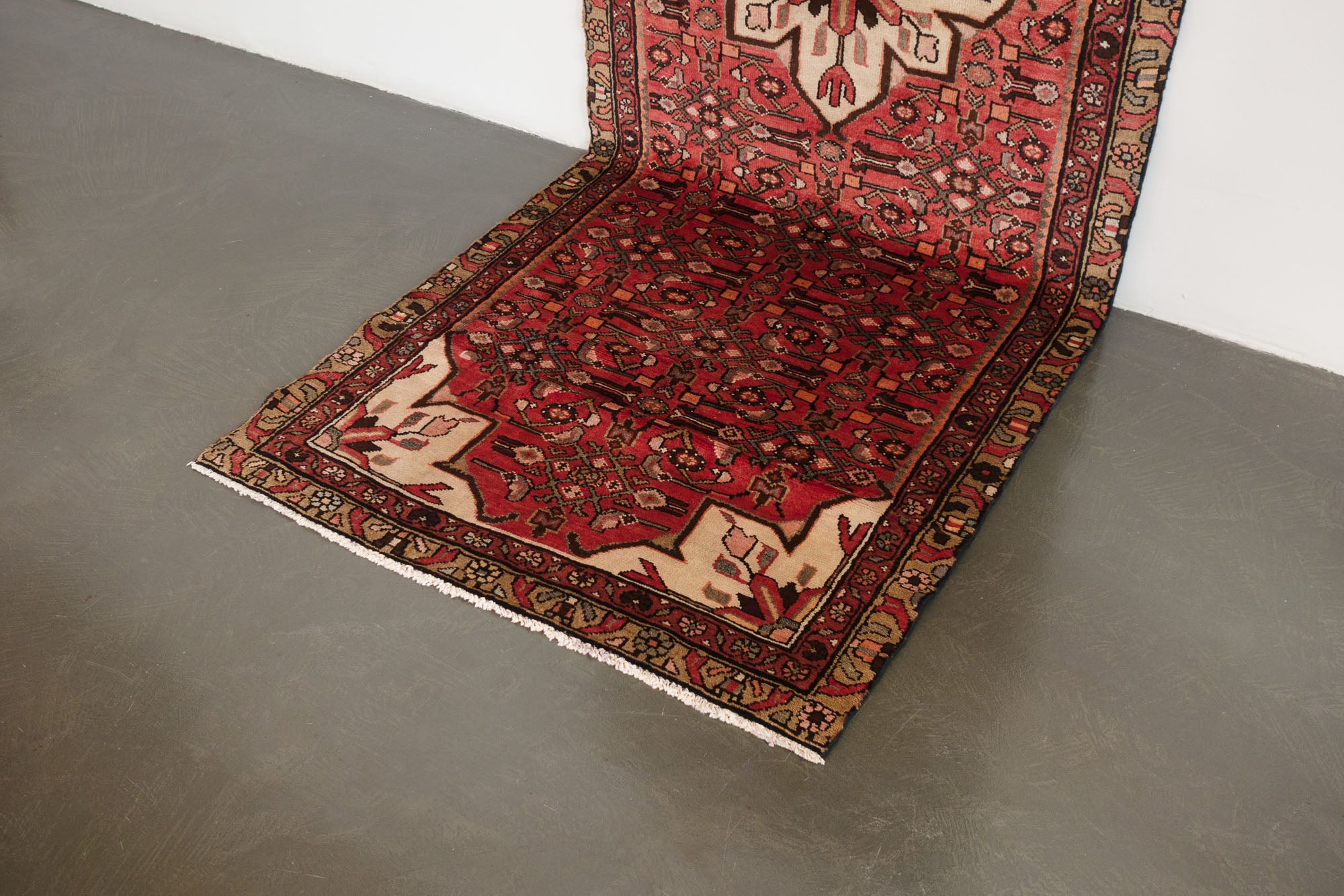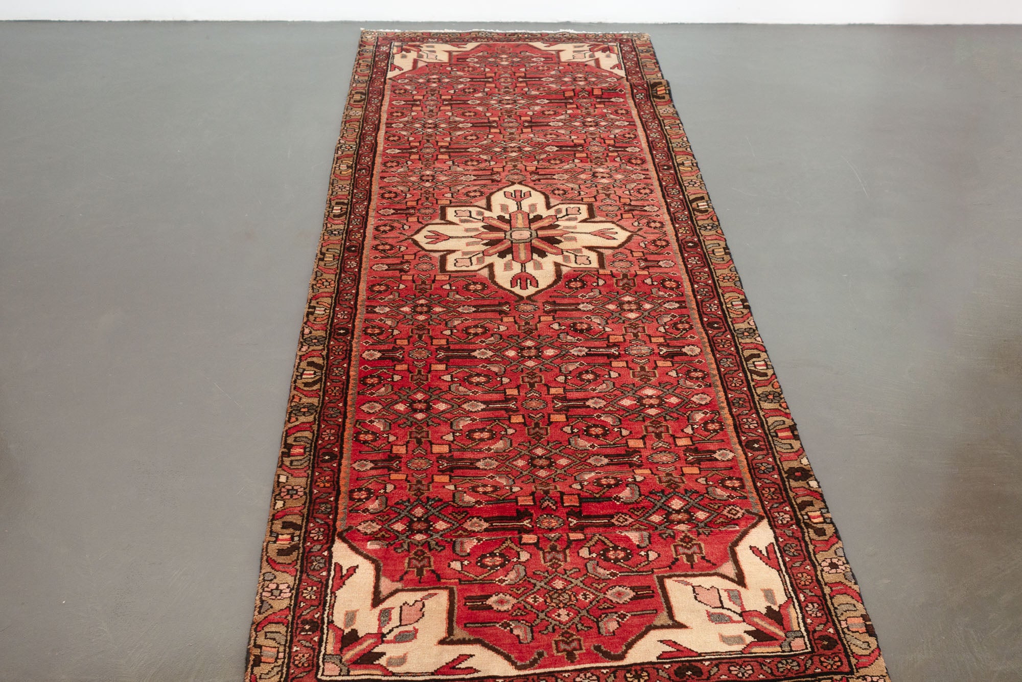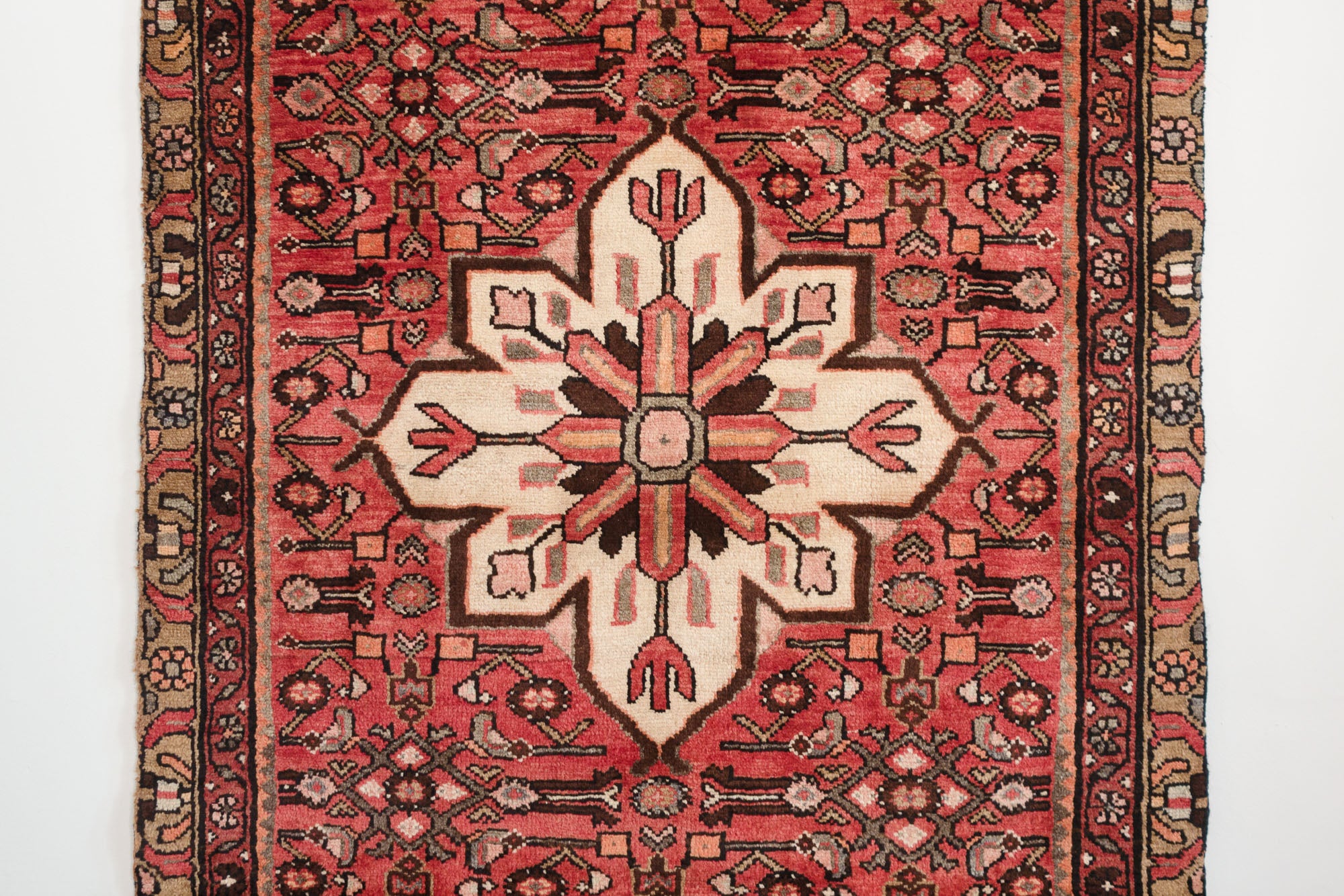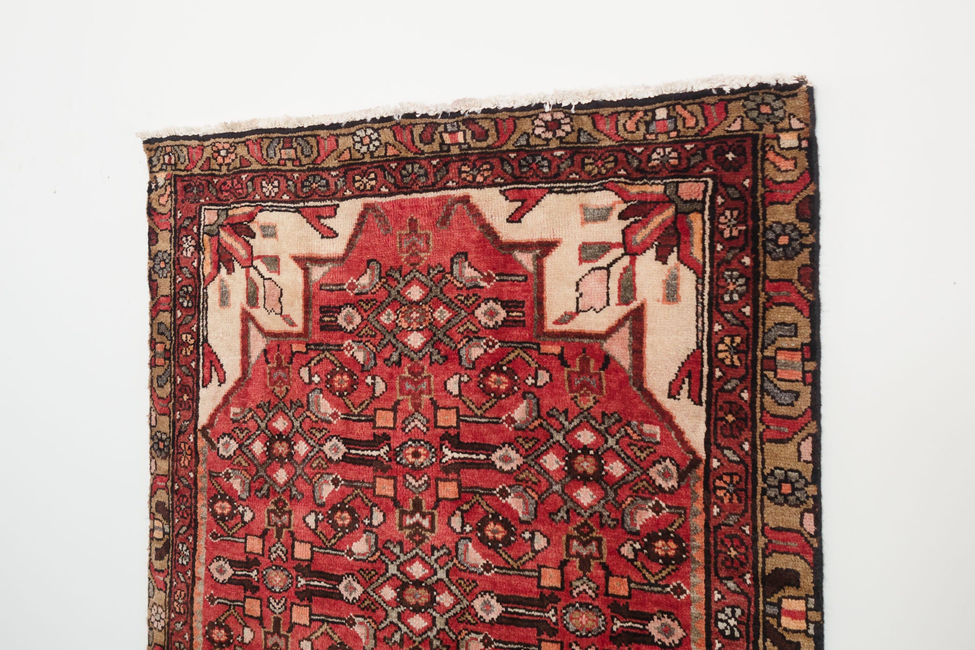 name: Borzouorigin: Iran (Persian)style: runner, rug, carpetmaterial: hand knotted woolcolors: red, cream, brown, black, gray, pinkage: vintage, 1940-1970condition: good, age related wear - see picturesappraised value: $1348