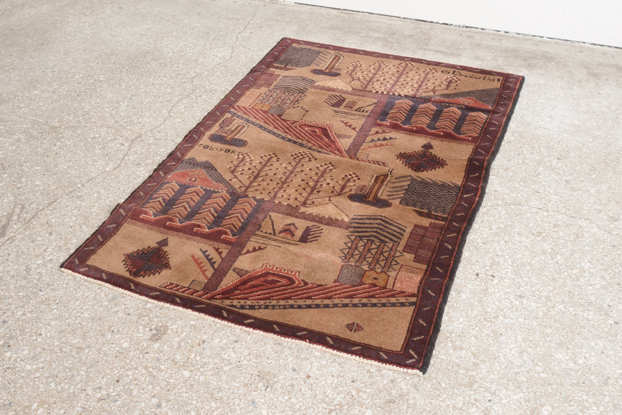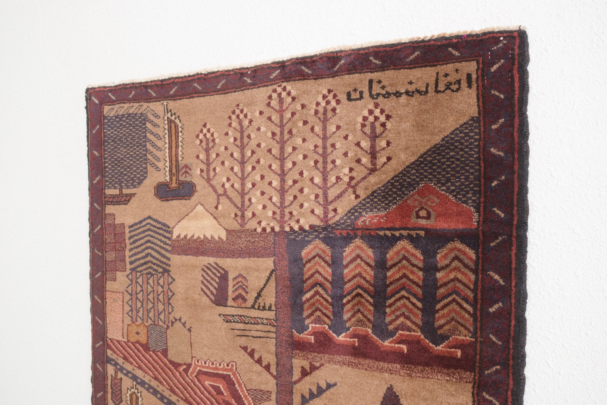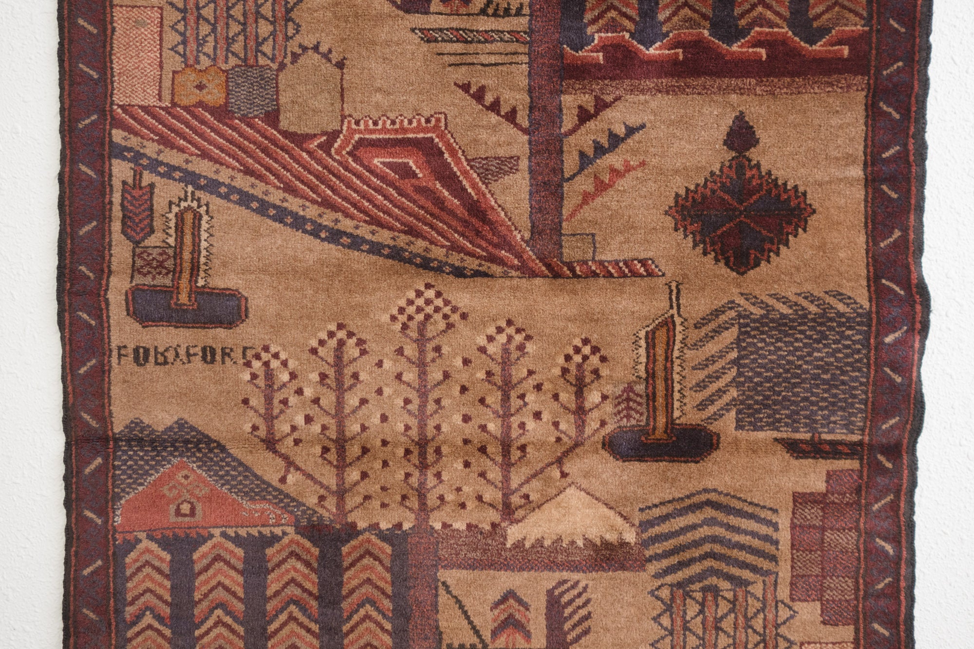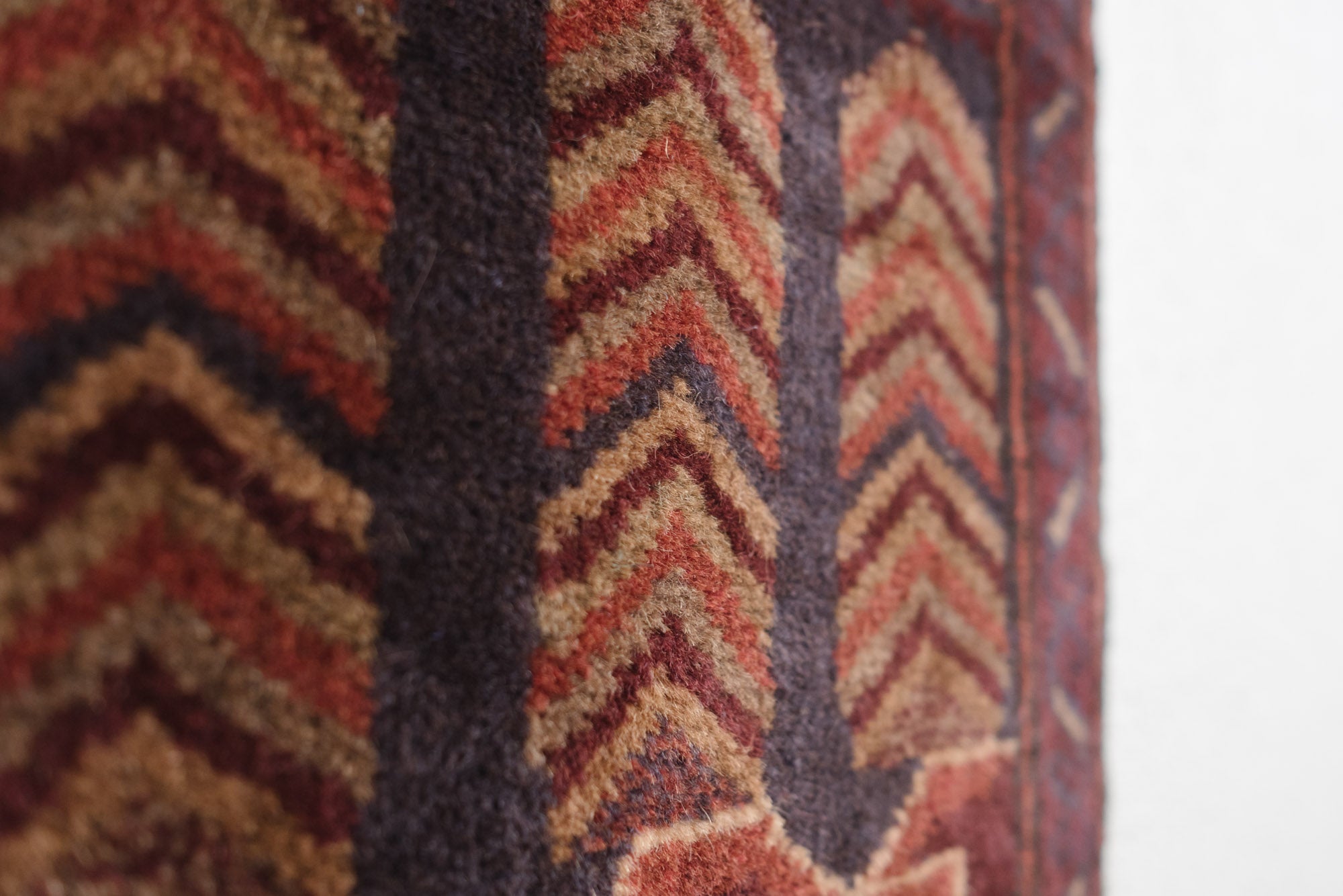 name: Babrakstyle: hand knotted, Afghan, story, rug, carpetmaterial: woolcolors: burgundy, rust, navy, camel, tan, blackage: vintage condition: good, age related wear - see pictures