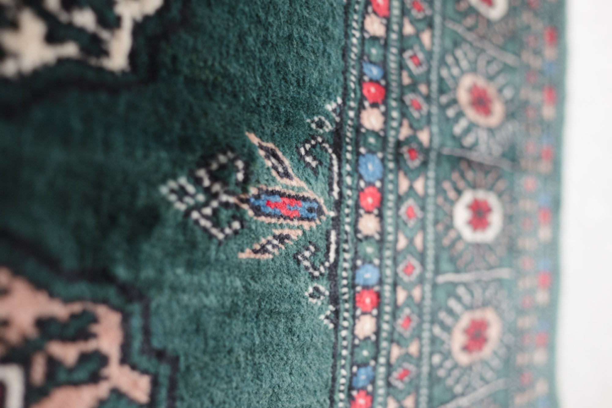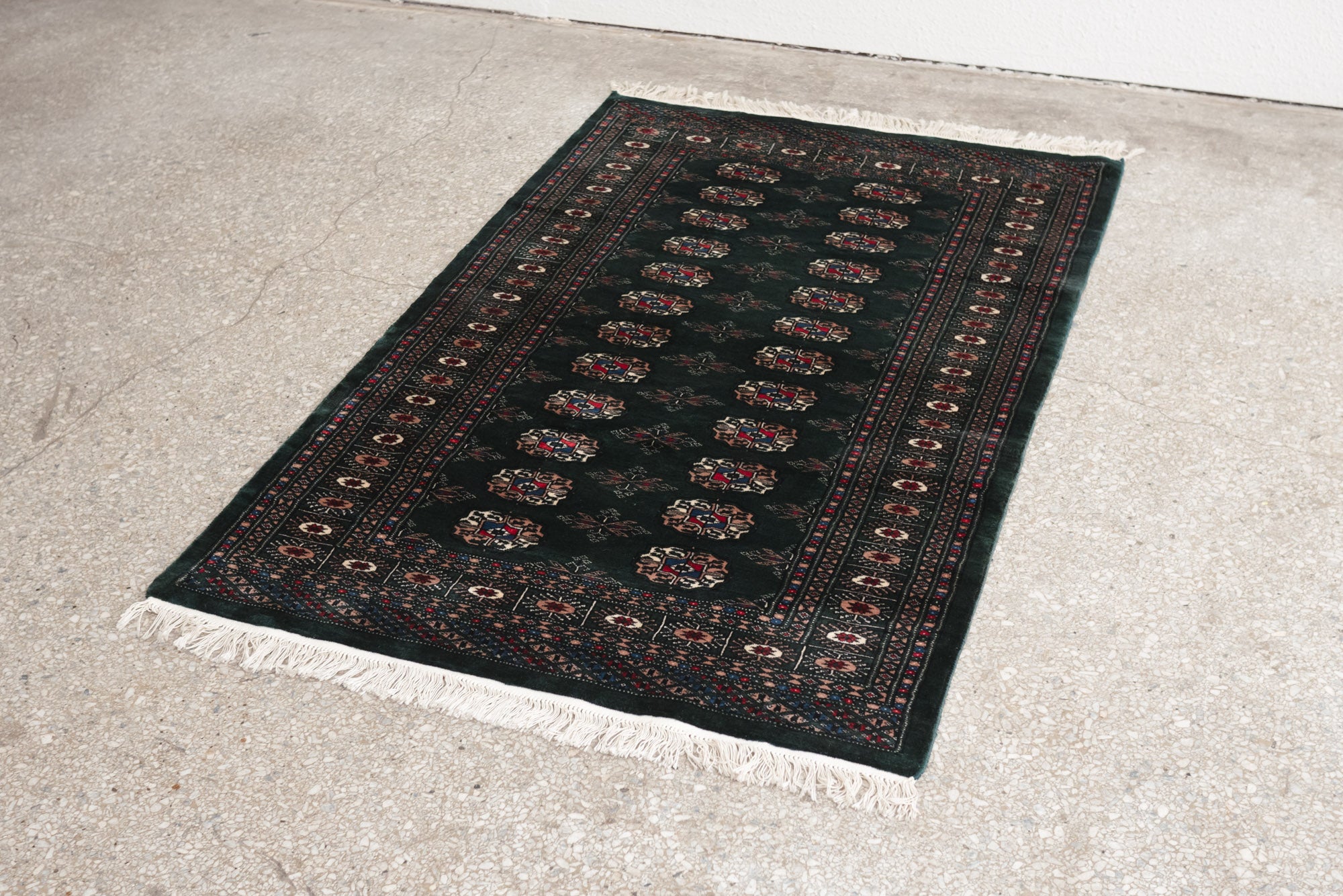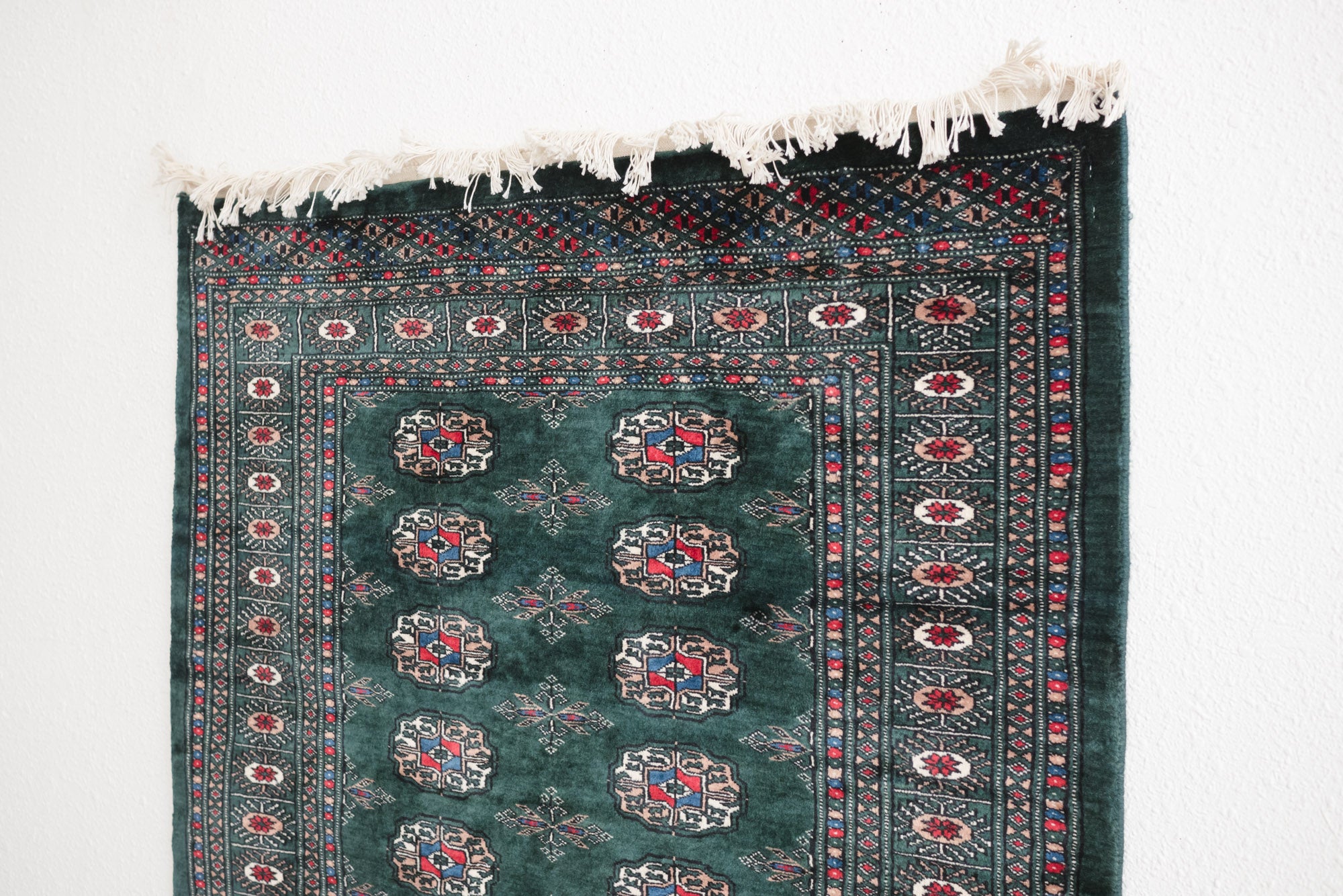 name: Korin style: hand knotted, Pakistani, Peshawar, Bokhara, rug, carpet material: wool colors: red, camel, cream, black, blue, dark green age: new condition: good, age related wear - see pictures