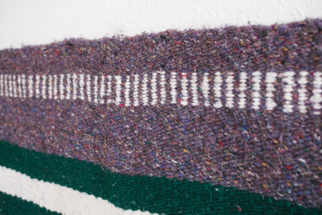 style: hand woven, striped, rug, saddle blanket