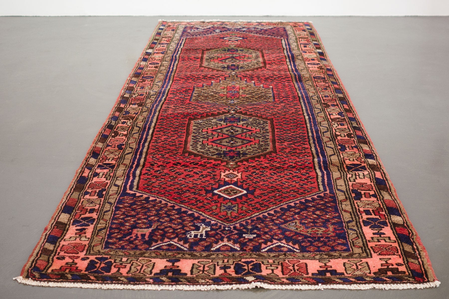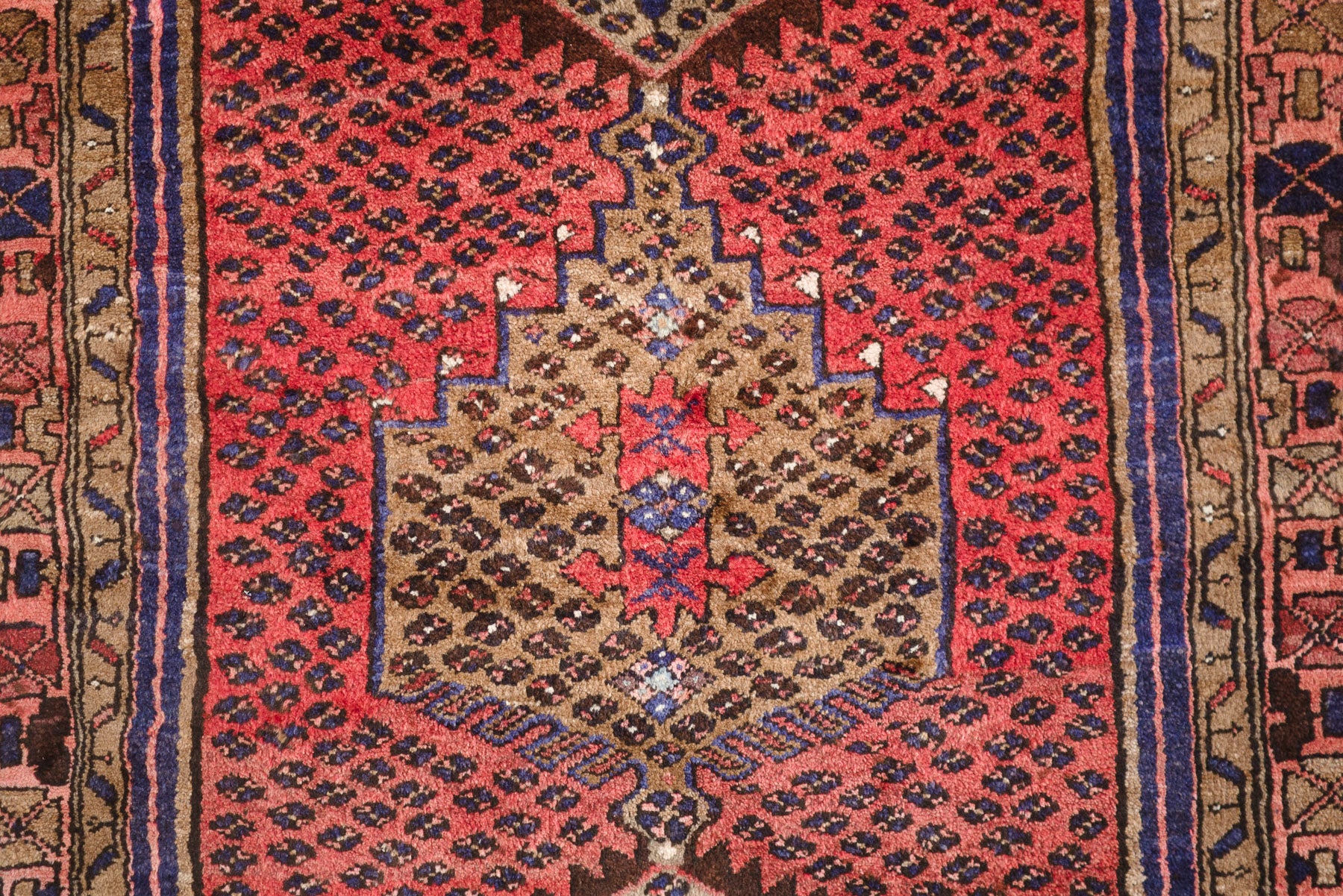 name: Tirbodorigin: Iran (Persian)style: runner, rug, carpetmaterial: hand knotted woolcolors: red, blues, navy, camel, pink, green, brown, cream age: vintage 1940-1970condition: good, age related wear - see picturesappraised value: $1,488