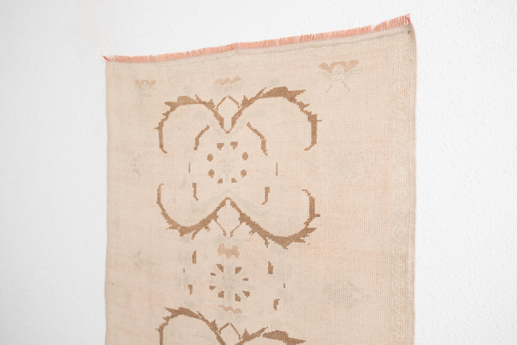 name: Emeteorigin: Turkeystyle: sunwashed, rug, carpetmaterial: hand knotted woolcolors: camel, brown, green, pinkage: vintage condition: good, age related wear - see pictures