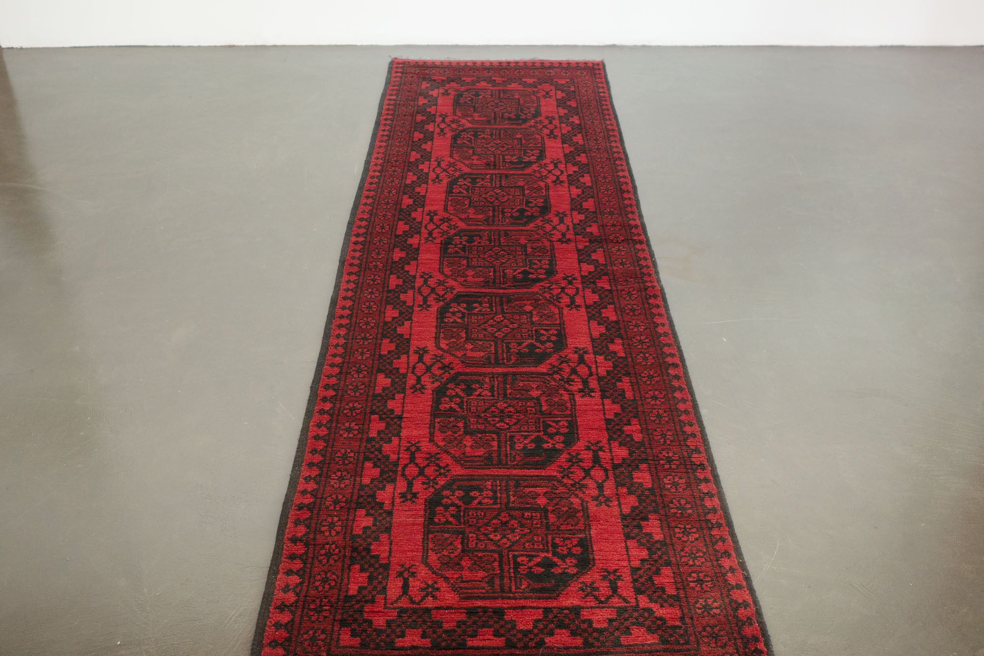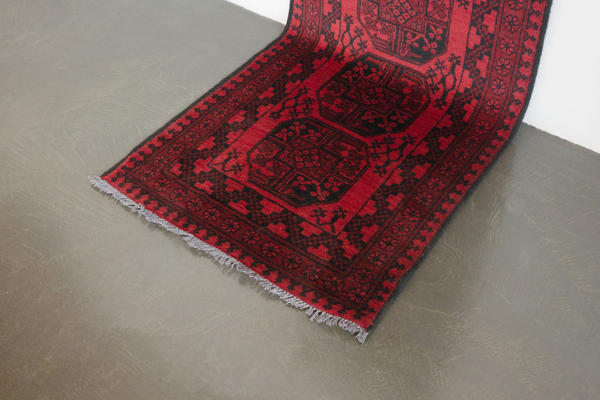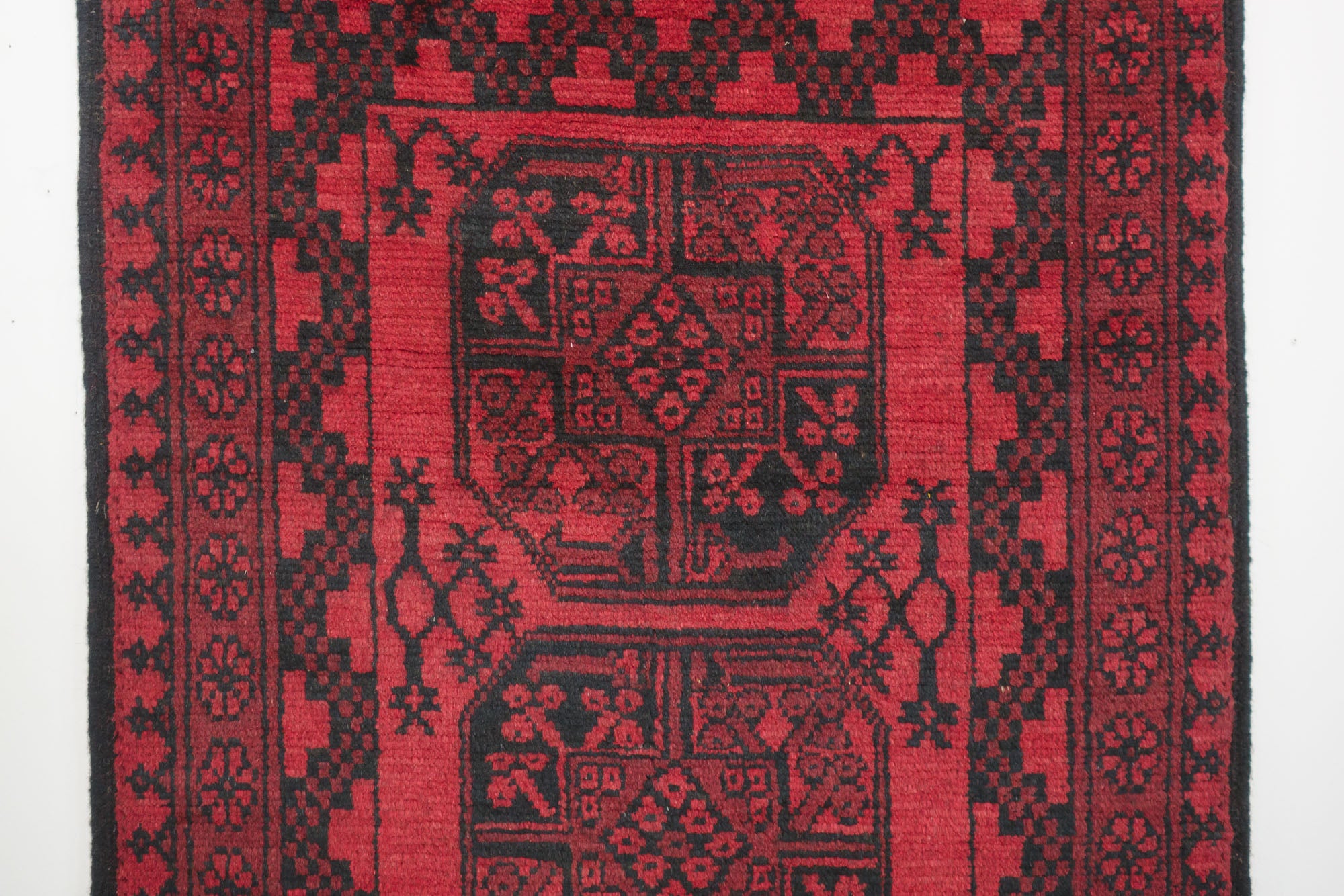 name: Abtinorigin: Afghanistanstyle: rug, carpetmaterial: hand knotted woolcolors: red, blackage: vintage, 1940-1970condition: good, age related wear - see picturesappraised value: $932
