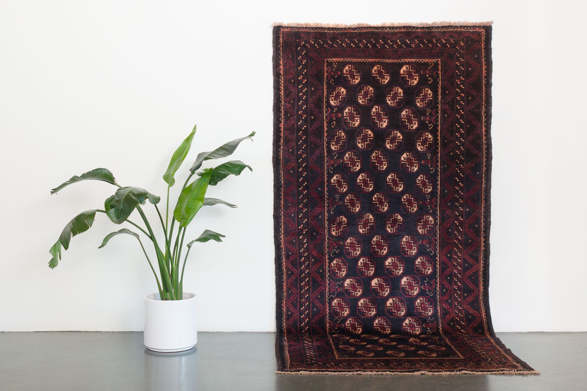 name: Naghiorigin: Iran (Persian)style: rug, carpetmaterial: hand knotted woolcolors: brown, tan, red, purple, pinkage: vintage, 1940-1970condition: good, age related wear - see picturesappraised value: $1256sku: p-1097