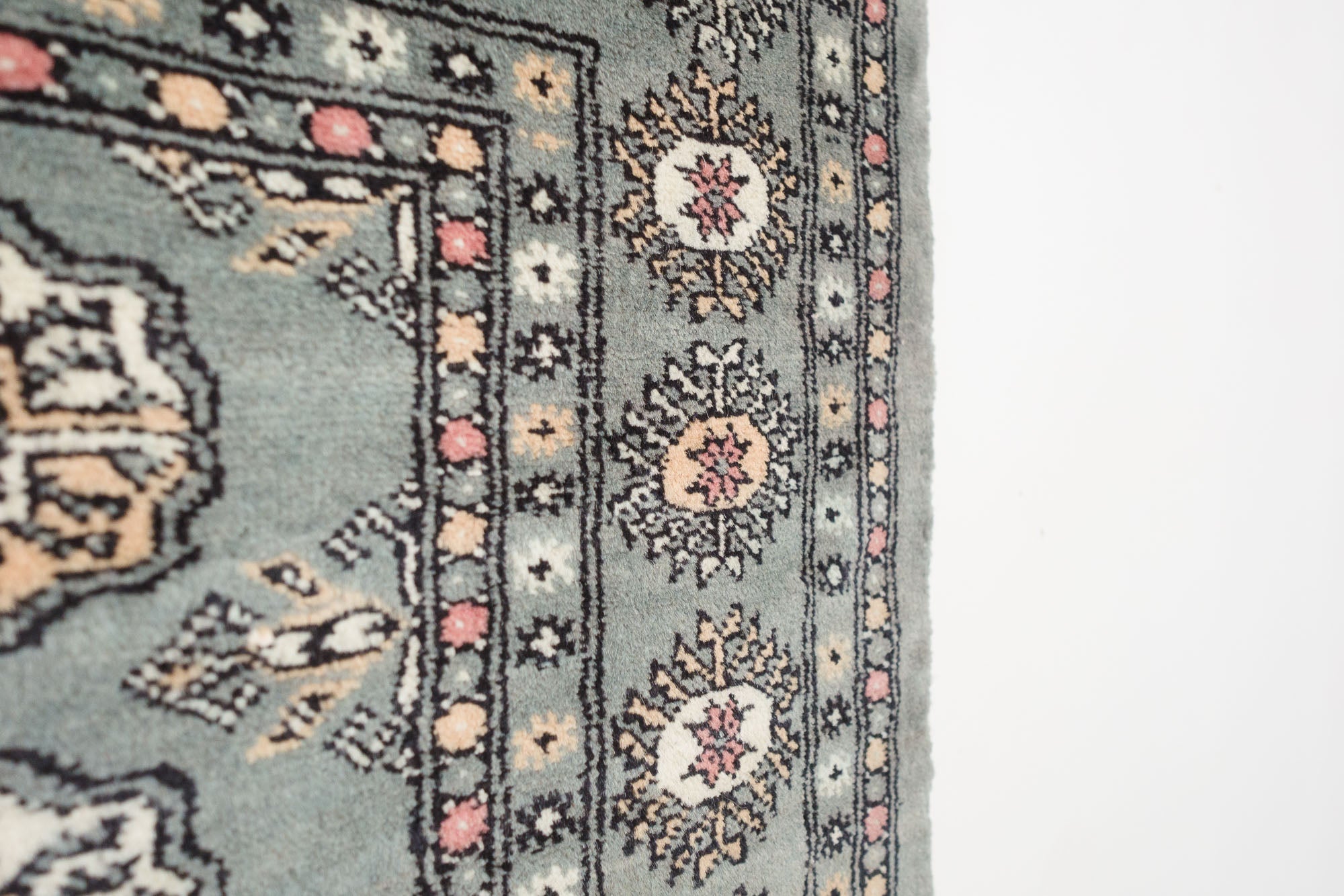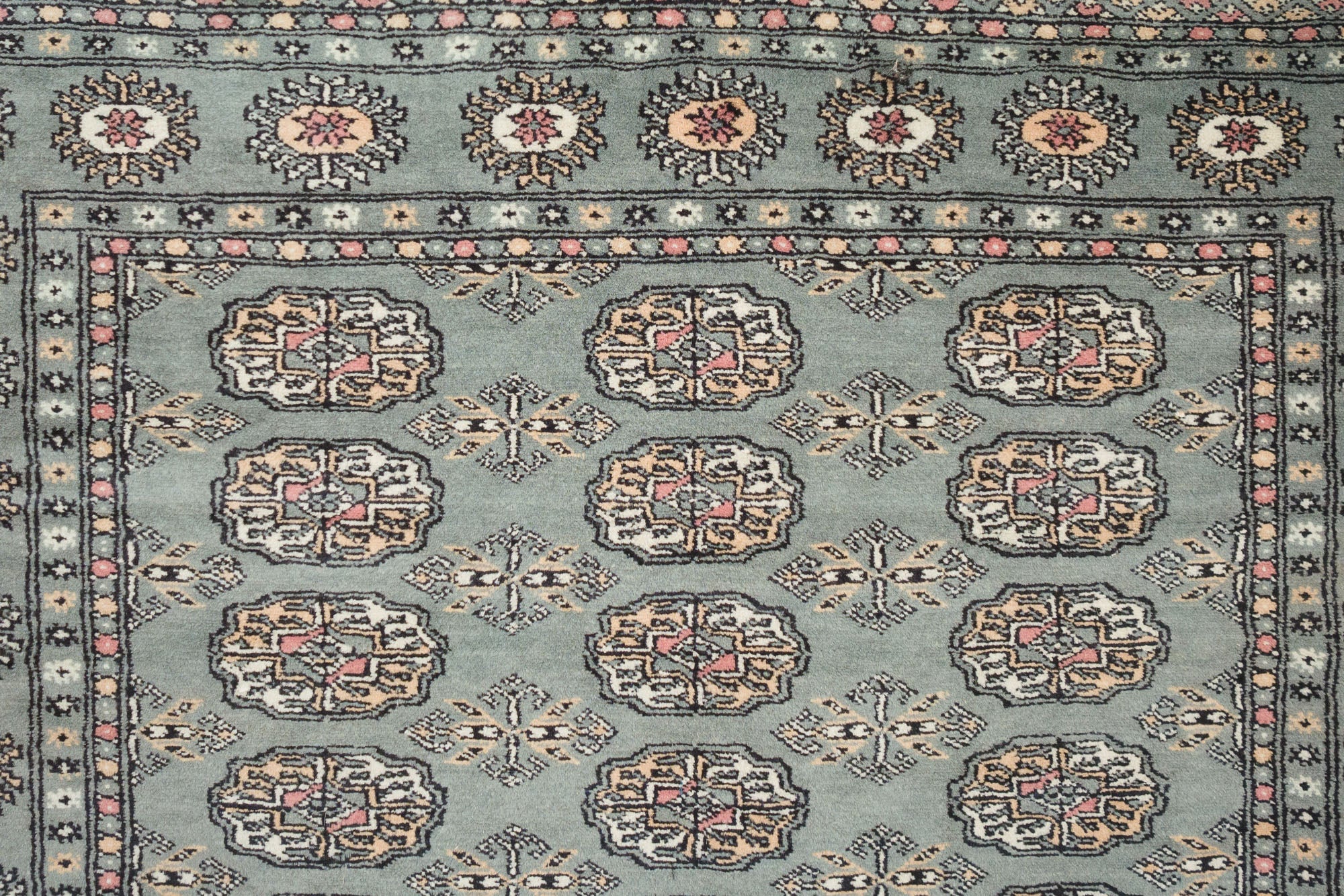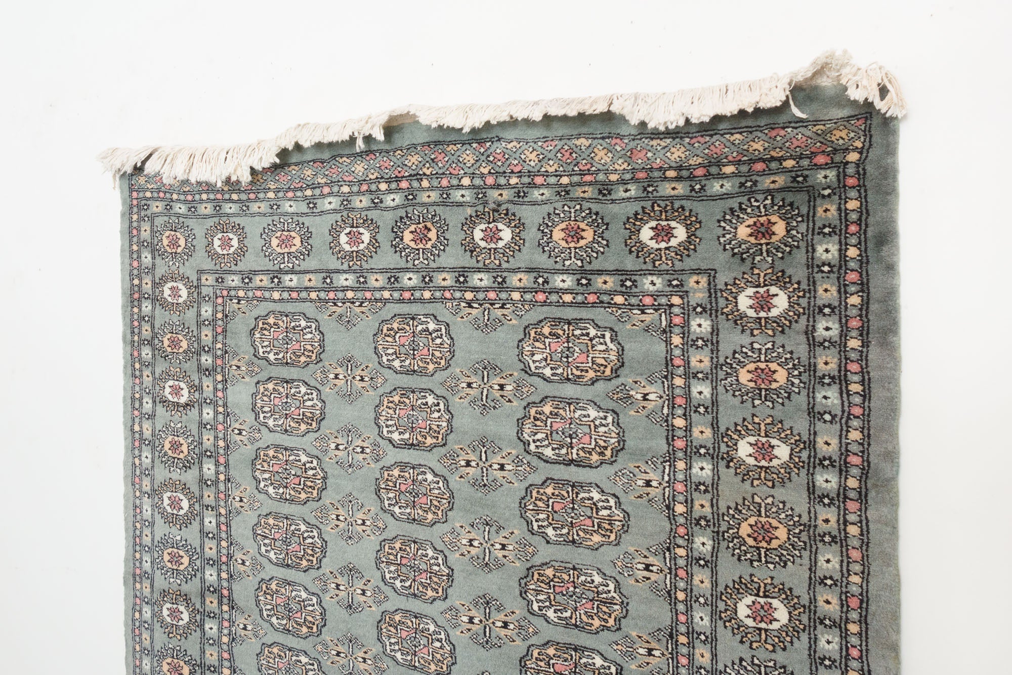 name: Jabeerorigin: Pakistanstyle: Peshawar Bokhara, rug, carpetmaterial: hand knotted woolcolors: green, pink, black, cream, tanage: vintagecondition: good, age related wear - see picturesappraised value: $1,000
