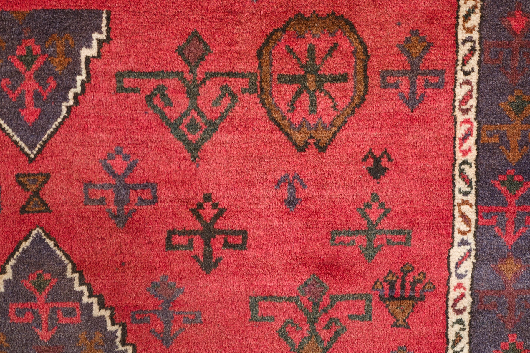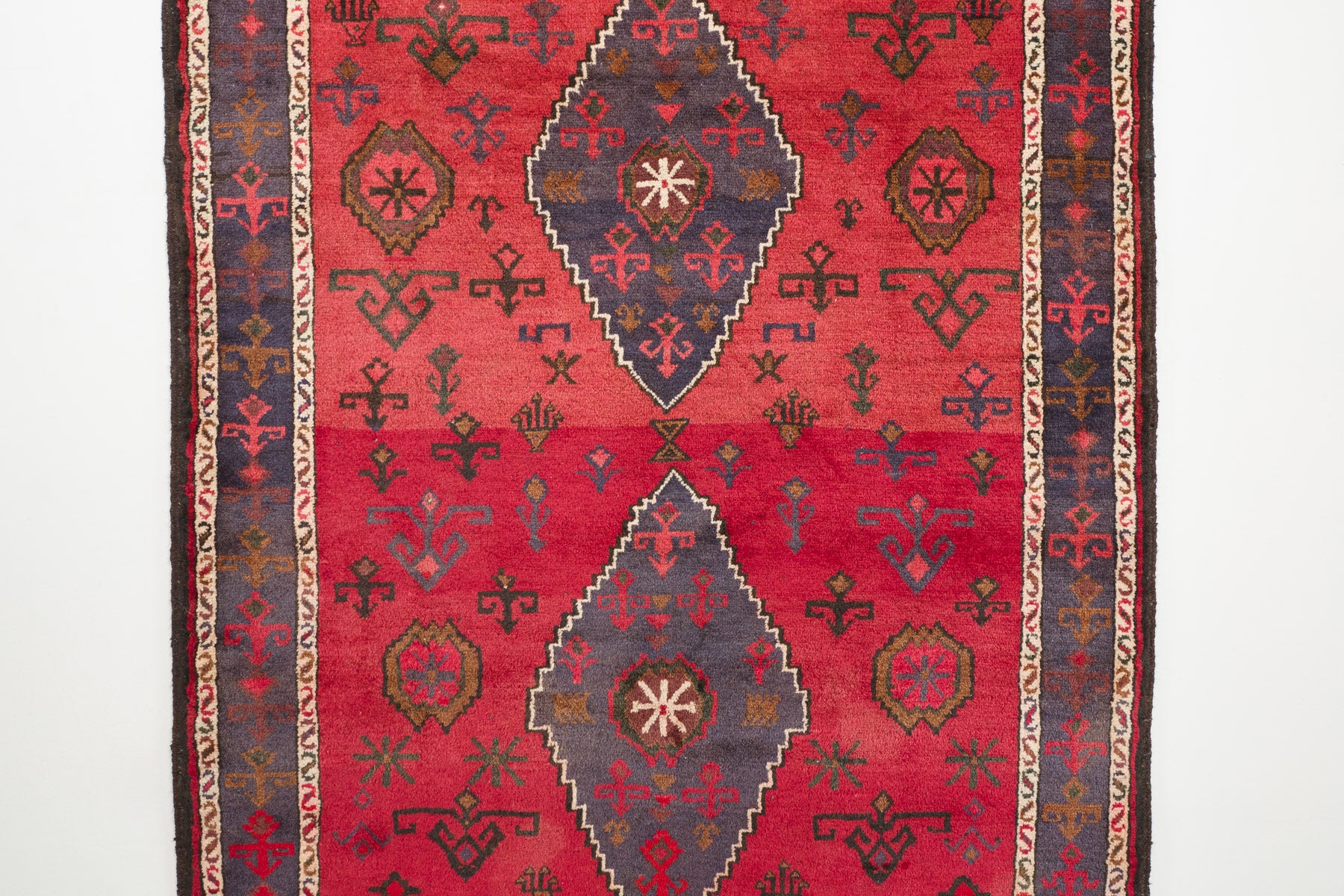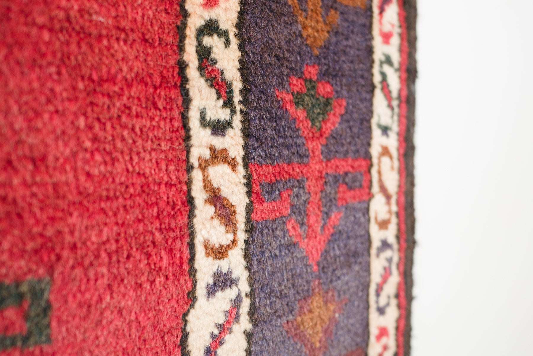 name: Barzinorigin: Iran (Persian)style: runner, rug, carpetmaterial: hand knotted woolcolors: red, navy, gray, cream, brown, purple, greenage: vintage, 1940-1970condition: good, age related wear - see picturesappraised value: $1,900sku: p-1000